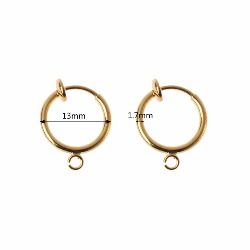 Feature: Clip-on Earring Converter with Easy Open Which are easy to wear, no need to pierce ears, Just open the half ball shaped and clip it on your ears You can DIY and turn any of your earrings into clip-on earrings, Good choice if you don'for t have a pierced ears but can still wear beautiful earrings. Item Type: Jewelry Finding Material: Color: Gold, Size: Diameter 13 mm/0.51", Thickness:1.7mm/0.07" Quantity: 10 Pcs, Note:1.Please allow 1-3cm error due to manual measurement. pls make sure you do not mind before you bid. 2.Due to the difference between different monitors, the picture may not reflect the actual color of the item. Thank you! Package includes(without retail package): 10 Pcs,x Earring Converters.