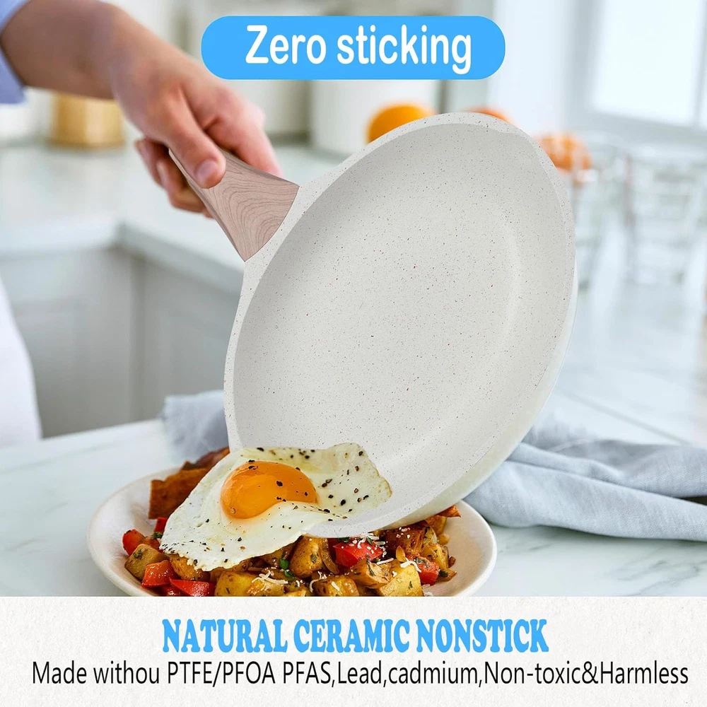 $ 47.09Ceramic Nonstick Induction Frying Pan Set with Lids - White Skillets