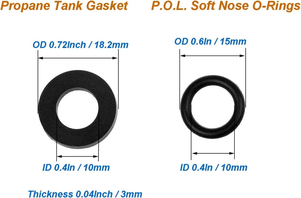 Store New Arrivals Add to Favorite View Feedback Contact 10Pcs Propane Tank Gasket and 10Pcs O-Rings for All Soft Nose P.O.L. Fittings, Soft Rubber Leakage-Proof Sealing, Fit for Propane Gas Adapters, Connectors, Valves, Regulators, Accessories and More Description Manufacturer A.I.FORCE Material Rubber Brand A.I.FORCE Item Diameter 0.72 Inches Nominal Inside Diameter 0.39 Inches Item Weight 0.352 ounces Number of Pieces 10 Nominal Outside Diameter 0.72 Inches Size Gaskets and O-rings [WHAT YOU GET] – You will get 10 pieces of Propane Tank Gasket and 10 pieces of O-Rings for All Soft Nose P.O.L. Fittings. [MONEY-SAVING PROPANE ACCESSORIES] - Propane leakage preventing washers can avoid thread sealing leakage. If the seal ring worn, aged or compressed, there would cause a dangerous gas leak. Just change to new washers, there would be no more gas leak. Save much money on buying new gears and we can have a safe cooking or grill with our old equipment. [Propane tank Gaskets] – The Propane tank Gaskets can prevent leakage on propane tank connectors, valves, Regulators, adapters, fittings. Outer Diameter 0.716inch(18.2mm), inner diameter 0.394inch(10mm), and Thickness 0.12inch(3.0mm). Ensure replacement O-rings are in same size with your stock gasket. [SOFT NOSE O-RING] - Replacement Part for Soft Nose O-Ring on Propane P.O.L. Fittings. Suitable for propane adapters, pipe connectors, elbow sealing material, cold and hot water pressure. Approximate size OD 0.587 inch or 14.9mm, ID 0.4 Inch or 10.1 mm, Thickness 0.1 inch 2.5 mm. [DURABLE AND STURDY] – Made of high-quality Soft Rubber, all the seal rings are durable and sturdy for long time usage. A.I.FORCE 10Pcs Propane Tank Gasket and 10Pcs O-Rings for All Soft Nose P.O.L. Fittings can avoid thread sealing leakage, which will save much money on buying new gears and we can have a safe cooking or grill with our old equipment. Specifications: Item 1: 10Pcs Propane Tank Gasket Material: Rubber Outer Diameter: 0.716inch(18.2mm) Inner diameter 0.394inch(10mm) Thickness 0.12inch(3.0mm). Item 2: 10Pcs O-Rings for All Soft Nose P.O.L. Fittings Material: Rubber Outer Diameter: 0.587 inch or 14.9mm Inner diameter: 0.4 Inch or 10.1 mm Thickness 0.1 inch 2.5 mm. Note: Please check the size of your stock O-rings before purchase. Package Included: 10Pcs x Propane Tank Gasket 10Pcs x O-Rings for All Soft Nose P.O.L. Fittings ABOUT US We offer the best prices around on high quality products. Our E-store includes media such as books, movies, music and games while offering electronics, toys, sporting apparel, clothing, tools, general home, garden items and more. SHIPPING We are always working hard to ensure your package arrives as soon as possible. Please understand that some factors like weather, high postal traffic, and the performance of shipping companies are outside of our control. We offer free shipping to the lower 48 states and ship within 2 business days of payment, usually sooner. We do not accept P.O. Boxes. Please provide a physical address. RETURNS We offer a 30-Day Return Policy on items which you are not completely satisfied with. You have the option for a full-refund or an exchange of the item. No returns are available on items shipped outside of the USA. PAYMENT We accept PayPal. CONTACT US This page content is yet to come Please ad us to your favorite seller and visit again later Thank You CUSTOMER SATISFACTION We try our very best to make sure every customer is completely satisfied. If there's a problem, message us! We're happy to help.