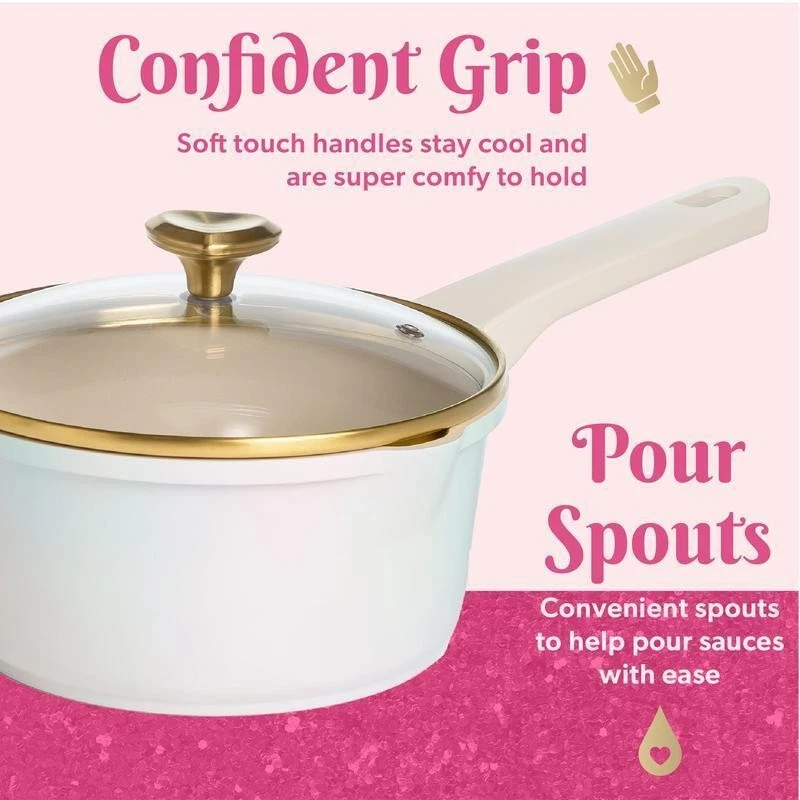 You may also like 12-Piece Pots Pans Cookware Set Nonstick Toxin-Free Ceramic Dishwasher Safe NEW 117.56 USD 123.75 USD Free shipping 5% off 20 Pcs Cookware Set Fry Pan Griddle Cooker Dishwasher Safe Nonstick Easy Care US 118.56 USD 124.8 USD Free shipping 5% off 12-Piece Non-Stick Cookware Set Induction Safe Ergonomic Handles Protectors New 153.14 USD 161.2 USD Free shipping 5% off Nonstick Granite Cookware Set 12PC Aluminum Pots Pans Kitchen Essentials New 116.62 USD 122.76 USD Free shipping 5% off Lightweight 7 Piece Non-Stick Aluminum Cookware Set Green Sage Dishwasher Safe 26.42 USD 27.81 USD Free shipping 5% off 12 Piece Non-Stick Cookware Set Ceramic Fry Pans Stock Pot Induction Safe New 69.87 USD 73.55 USD Free shipping 5% off 24 Piece Nonstick Aluminum Cookware Set Kitchen Essentials Includes Utensils New 153.19 USD 161.25 USD Free shipping 5% off Nonstick Aluminum Cookware Set 22 Pieces Easy Clean Dishwasher Safe Durable New 106.84 USD 112.46 USD Free shipping 5% off 16 Piece Pink Ceramic Non-Stick Cookware Set Healthy Cooking Induction Ready New 82.98 USD 87.35 USD Free shipping 5% off Lightweight 7 Piece Non-Stick Cookware Set Dishwasher Safe Easy Clean Aluminum 26.42 USD 27.81 USD Free shipping 5% off Stainless Steel Durable Stock Pot Lid Tempered Glass Oven Safe Dishwasher Safe 39.93 USD 42.03 USD Free shipping 5% off Stainless Steel Cookware Set 14 Pc Induction Compatible Dishwasher Safe Kitchen 112.75 USD 118.68 USD Free shipping 5% off Turn heads in the kitchen with Paris Hilton's 10-piece Clean Ceramic Nonstick Cookware set—a total must-have for any kitchen! The set includes an 8" fry pan, a 10" fry pan, a 2-quart saucepan with a glass lid, and a 4. 3-qt Dutch oven with a glass lid. Plus, it comes with two 13. 5" and two 17. 5" pan protectors to keep your pots and pans shiny and scratch-free. Oh, and the lids? They feature shiny gold heart knobs for that extra touch of glam. Cook with confidence with the dual-layer Clean Ceramic nonstick coating that's made without PFAS, PFOA, PFOS & PTFE. Say goodbye to sticky situations as food effortlessly slides out of the pan without the need for extra oils. Made with premium cast aluminum construction, this cookware set ensures even heat distribution, guaranteeing cooking results that are so beyond. The soft-touch, stay-cool handles offer a confident grip while you whip up your culinary masterpieces. The convenient pour spouts are great for pouring sauces and soups with ease. And the best part? Clean-up is a breeze! No more scrubbing required because this cookware is dishwasher safe. 10-PIECE CLEAN CERAMIC NONSTICK COOKWARE SET: Includes an 8"" fry pan, a 10"" fry pan, a 2-quart saucepan with a glass lid, a 4. 3-qt Dutch oven with a glass lid, and two 13. 5"" and two 17. 5"" pan protectors to keep your pots and pans shiny and scratch-free. SO CUTE: The tempered glass lids feature shiny gold heart knobs. Loves it! HEALTHY COOKING: The dual layer Clean ceramic nonstick coating is made without PFAS, PFOA, PFOS & PTFE, so you can cook with confidence. THAT'S SMOOTH: The smooth, ceramic non-stick coating allows food to slide right out of the pan without adding extra oils, empowering a healthy choice like a #bossbabe. SLIV AND SIZZLE: The durable premium cast aluminum construction ensures fast and even heat distribution, giving you cooking results that are so beyond. COOK IN STYLE: Soft touch, stay-cool comfort handles offer a confident grip while you fry up culinary masterpieces. SERVE LIKE A PRO: The convenient pour spouts help to pour sauces and soups with ease. DISHWASHER SAFE: No need for scrubbing because this cookware is dishwasher safe. #BeAnIcon: Post your photos with #BeAnIcon for a chance to be shared on Paris' social media! You may also like 14pc Shower Curtain Set W/ Hooks Liner Embossed Dot Design Machine Washable New 26.46 USD 27.85 USD Free shipping 5% off Multipurpose Fabric Refresh Spray Odor Eliminator Sofas Pillows Gym Bags 23.6 oz 8.01 USD 8.43 USD Free shipping 5% off 12ft Propane Hose Regulator Assembly Soft Nose P.O.L Low Pressure Grill Fire Pit 49.1 USD 51.68 USD Free shipping 5% off Indoor Runner Rug Stain Resistant Non Slip Machine Washable High Traffic 20x60 29.17 USD 30.7 USD Free shipping 5% off 15W Wireless Fast Charging Dual Alarm Clock Radio Bluetooth USB LED Display 45.34 USD Free shipping 16x20 Front Loading Wall Picture Frame Photos Posters Art Gallery Decor New 11.29 USD 11.88 USD Free shipping 5% off Candy Bath Fizzers 3.5oz Cotton Candy Scent Natural Fizzing Surprise Handmade US 8.0 USD 8.42 USD Free shipping 5% off Dry Cat Food Adult Cats 7 Plus Chicken Brown Rice 5lb Healthy Nutrition New 24.82 USD 26.13 USD Free shipping 5% off 7 Inch Black Table Torch Lantern Clean Burn Fuel Outdoor Lighting Repellent New 24.42 USD 25.71 USD Free shipping 5% off Cool Mist Ultrasonic Humidifier Medium Rooms 24 Hour Run Time No Filter Required 30.78 USD 32.4 USD Free shipping 5% off Candy Deep Fry Thermometer Analog Adjustable Clip 1.75 Inch Dial 50F to 550F New 25.7 USD 27.05 USD Free shipping 5% off Reusable Cleaning Gloves Heat Protection Moisture Wicking Grip 3 Pairs New 17.42 USD 18.34 USD Free shipping 5% off