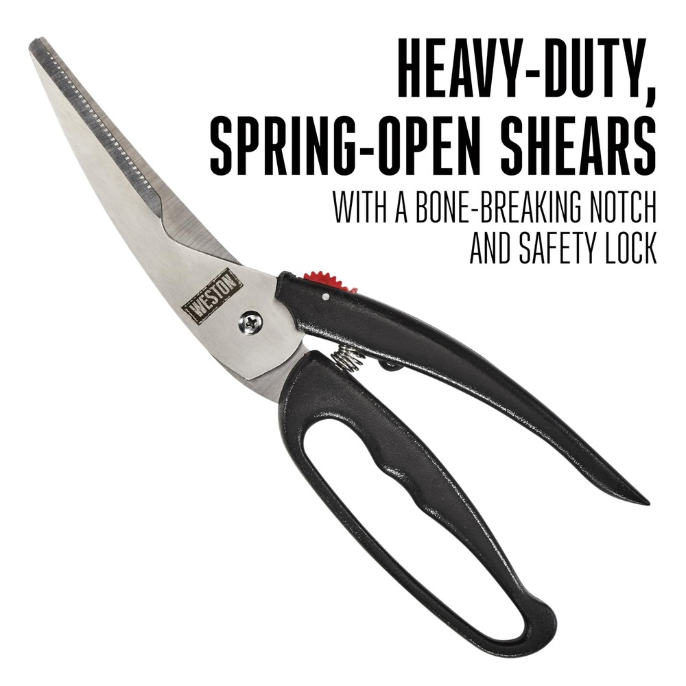 The ® 10 Piece Game Processing Knife Set has everything you need to process game in the field or at home: butcher knife, cleaver, boning/fillet knife, skinning knife, butcher saw with 2 blades, sharpening steel, game shears, and storage case. 83-7001-W, 10 piece processing knife set has durable stainless steel blades and riveted handles. This set includes: 8-inch butcher knife, 6.5-Inch cleaver, 5.75-Inch boning and Fillet knife, 4.25-Inch skinning knife, adjustable 12.25-Inch butcher saw, 2 steel butcher saw blades, game shears with spring open and safety lock, steel for sharpening knives and plastic storage case. Complete 10 piece set. The set comes with everything you need to process game: 8" butcher knife, 6" cleaver, 5.3" boning/fillet knife, 4.2" skinning knife, adjustable 12.25" butcher saw with 2 blades, sharpening steel, game shears, and storage case. Includes 3 knives & cleaver designed for durability. The game processing kit's cleaver and knives are made of rust-resistant, 420 stainless steel with full tang blades for increased balance/leverage. Ergonomic handles for stability & control. The knives and cleaver in the hunting knife set have ergonomic handles for more stability and control when processing fish, poultry, rabbits, deer and other game. The handles are riveted for extra strength. heavy duty game shears. The heavy-duty, spring-open game shears have a bone-breaking notch and a safety lock. They're great for processing small game and poultry. Portable and hard-sided storage case. The durable, hard-sided case with built-in handle holds all the pieces of the outdoor knife set so you can easily carry the set into the field, on your boat, or anywhere you need to process game or fish.