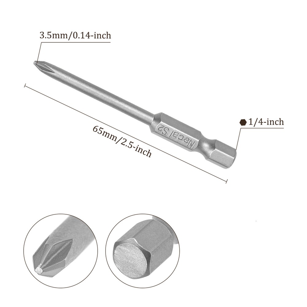 Document APPLICATION- Fit for electric screwdriver, manual screwdriver, power drill and other pneumatic or power tools with 1/4" hex holder. Widely used in cars, trucks, engines, motorcycles, computers, cable boxes and other applications.ABOUT THIS PRODUCT- Made of S2 alloy steel, which is a commonly used material in hardware with high hardness.- Sandblasting surface, corrosion resistance and durability.- Magnetic tip, can suck the screws easily when used it.- Exquisite workmanship, each edge can be accurately locked screws, no damage to the screw, and the screwdriver head.SPECIFICATIONBit Type: PH1Tip Diameter: 3.5mm / 0.14“Shank: 1/4“ Hex ShankLength: 65mm / 2.5”Material: S2 Alloy SteelFinish: SandblastingPackage: 10 packs of Cross Head Screwdriver BitTAKE NOTICE OF- Do not turn the screws with mismatched size to avoid damage to both the screw and the drill. 10pcs Phillips Screwdriver Bit - [2.5" x H1/4 x 3.5mm x PH1] Magnetic Power Tool APPLICATION - Fit for electric screwdriver, manual screwdriver, power drill and other pneumatic or power tools with 1/4" hex holder. Widely used in cars, trucks, engines, motorcycles, computers, cable boxes and other applications. ABOUT THIS PRODUCT - Made of S2 alloy steel, which is a commonly used material in hardware with high hardness. - Sandblasting surface, corrosion resistance and durability. - Magnetic tip, can suck the screws easily when used it. - Exquisite workmanship, each edge can be accurately locked screws, no damage to the screw, and the screwdriver head. SPECIFICATION Bit Type: PH1 Tip Diameter: 3.5mm / 0.14“ Shank: 1/4“ Hex Shank Length: 65mm / 2.5” Material: S2 Alloy Steel Finish: Sandblasting Package: 10 packs of Cross Head Screwdriver Bit TAKE NOTICE OF - Do not turn the screws with mismatched size to avoid damage to both the screw and the drill. Hot Item Payment 1.We accept eBay payment . 2.Payment must be received within 7 business days of auction closing. Shipping 1.We ship to your eBay or Paypal address. Please make sure your eBay and Paypal address is correct before you pay. 2.Items will be shipped within 1-3 business day when we received payment. 3.Delivery time depends on destination and other factors. Description Policy 10pcs Phillips Screwdriver Bit - [2.5" x H1/4 x 3.5mm x PH1] Magnetic Power Tool APPLICATION - Fit for electric screwdriver, manual screwdriver, power drill and other pneumatic or power tools with 1/4" hex holder. Widely used in cars, trucks, engines, motorcycles, computers, cable boxes and other applications. ABOUT THIS PRODUCT - Made of S2 alloy steel, which is a commonly used material in hardware with high hardness. - Sandblasting surface, corrosion resistance and durability. - Magnetic tip, can suck the screws easily when used it. - Exquisite workmanship, each edge can be accurately locked screws, no damage to the screw, and the screwdriver head. SPECIFICATION Bit Type: PH1 Tip Diameter: 3.5mm / 0.14“ Shank: 1/4“ Hex Shank Length: 65mm / 2.5” Material: S2 Alloy Steel Finish: Sandblasting Package: 10 packs of Cross Head Screwdriver Bit TAKE NOTICE OF - Do not turn the screws with mismatched size to avoid damage to both the screw and the drill. Hot Item Payment 1.We accept eBay payment . 2.Payment must be received within 7 business days of auction closing. Shipping 1.We ship to your eBay or Paypal address. Please make sure your eBay and Paypal address is correct before you pay. 2.Items will be shipped within 1-3 business day when we received payment. 3.Delivery time depends on destination and other factors.