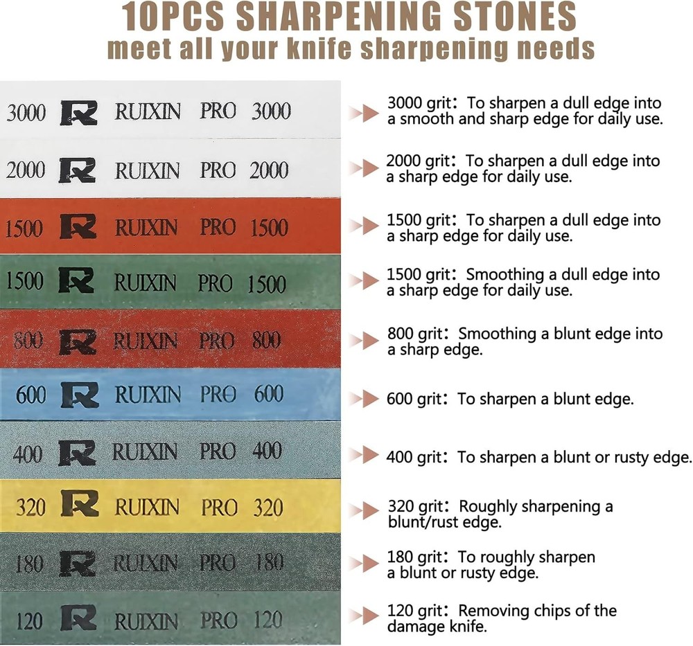 10-Piece Whetstone Knife Sharpening Kit - Professional Edge Sharpener with Clamp ‹ › ‹ › ‹ › ‹ › ‹ › ‹ › ‹ › ‹ › ‹ › 10-Piece Whetstone Knife Sharpening Kit Professional Edge Sharpener with Clamp Features: G-Clamp with Maximum Tightness: Our RX-0 Metal Fixed-angle Edge Sharpener features a robust G-Clamp that securely holds the sharpener onto tables, stoves, or other surfaces, providing stability during use. 360° Rotation Flip Design: This innovative feature allows you to easily flip the blade for sharpening both sides with a precise deviation of +/- 2°, adjusting quickly and safely with an easy-to-screw mechanism. Unparalleled Safety: Designed with utmost consideration for safety, the handle is positioned above the blade, ensuring your hands remain safely away while sharpening. 10 Premium Quality Whetstones: The kit includes 10 carefully selected whetstone grits ranging from 120# to 3000#. Whether repairing old knives or polishing new ones, these stones are hard enough to handle S30V steel. Multipurpose Use: Ideal for sharpening a variety of knives including peeling, kitchen, hunting, chef, and barbecue knives, along with scissors, chisels, and razors. Achieve a razor-sharp edge in mere seconds! Why Choose Our 10-Piece Whetstone Knife Sharpening Kit? Experience the luxury of professional-grade knife sharpening with our 10-Piece Whetstone Knife Sharpening Kit. The durable aluminum alloy construction ensures longevity, while the innovative clamp design guarantees maximum stability as you restore your blades to their original glory. With a range of whetstones suited for all sharpening needs, you can elevate your culinary experiences or tackle any cutting task confidently. Enjoy precision, safety, and quality by choosing our kit, backed with a worry-free replacement guarantee for any damaged stones. Order yours today for perfecting your knives with ease and elegance. Shipping Free & Fast Shipping - We offer free shipping to most of the USA with a normal delivery time of 3-10 businessdays. However, due to various situations, additional delivery time (up to 3 weeks) may be required for some items. Alternative Carriers - We may use alternative carriers (e.g. USPS, FedEx, UPS, etc.) to ensure your package arrives safely and on time. Due to the use of multiple carriers, we are unable to provide a tracking number automatically. Handling Time - Orders are processed and shipped within 1-5 business days of receiving cleared payment. Shipping Restrictions - Shipping to Alaska, Hawaii, Puerto Rico, Guam, and other US territories may incur shipping charges or delivery restrictions. Please contact us before ordering, or your order can be refunded/cancelled. State Restrictions - There may be restrictions based on your state of purchase. For example, certain items may not be shipped to California due to state regulations. Contact for Tracking Updates - If you require tracking updates or have any concerns about the delivery of your order, please feel free to contact us, and we will be happy to assist you. Return Please see our ebay return policy. We do not accept return on most products. This is to avoid customers mis-using ebay returns. All sales are final. Please be sure to check the return policy listed at the top of the listing. In rare cases, we may accept returns, if the buyer pays both ways shipping and 20% restocking fee. If you are un-sure of return policy of a particular item, please ask before buying. Payment We accept all major credit cards, PayPal, and Apple Pay for your convenience. Your payment information is secure and encrypted to ensure a safe and seamless transaction. Please complete your payment within 3 days of purchase to avoid any delays in shipping. Feedback Your feedback is extremely important to us. We strive to provide the best products and customer service possible. If you are satisfied with your purchase, please take a moment to leave us a positive review. If you have any concerns or issues with your order, please contact us before leaving negative feedback. We are committed to resolving any problems and ensuring your satisfaction. Contact Us If you have any questions or concerns, please feel free to reach out to our customer support team. You can contact us through the eBay messaging system. We are available Monday to Friday, 9:00 am to 5:00 pm EST, and we will do our best to respond to your inquiry within 24 hours. Buy it now and enjoy a pleasant shopping experience! UPC: Not Set Model: Not Set Unit Quantity: 1 Material: Aluminum,Whetstones Features: With Handles,With Knife Sharpener,360° Rotation,Fixed-Angle Design,G-Clamp,Safety Design Brand: Unbranded Type: Sharpening System Color: Silver MPN: Not Set Country/Region of Manufacture: Not Set Making Method: Not Set Unit Type: Unit