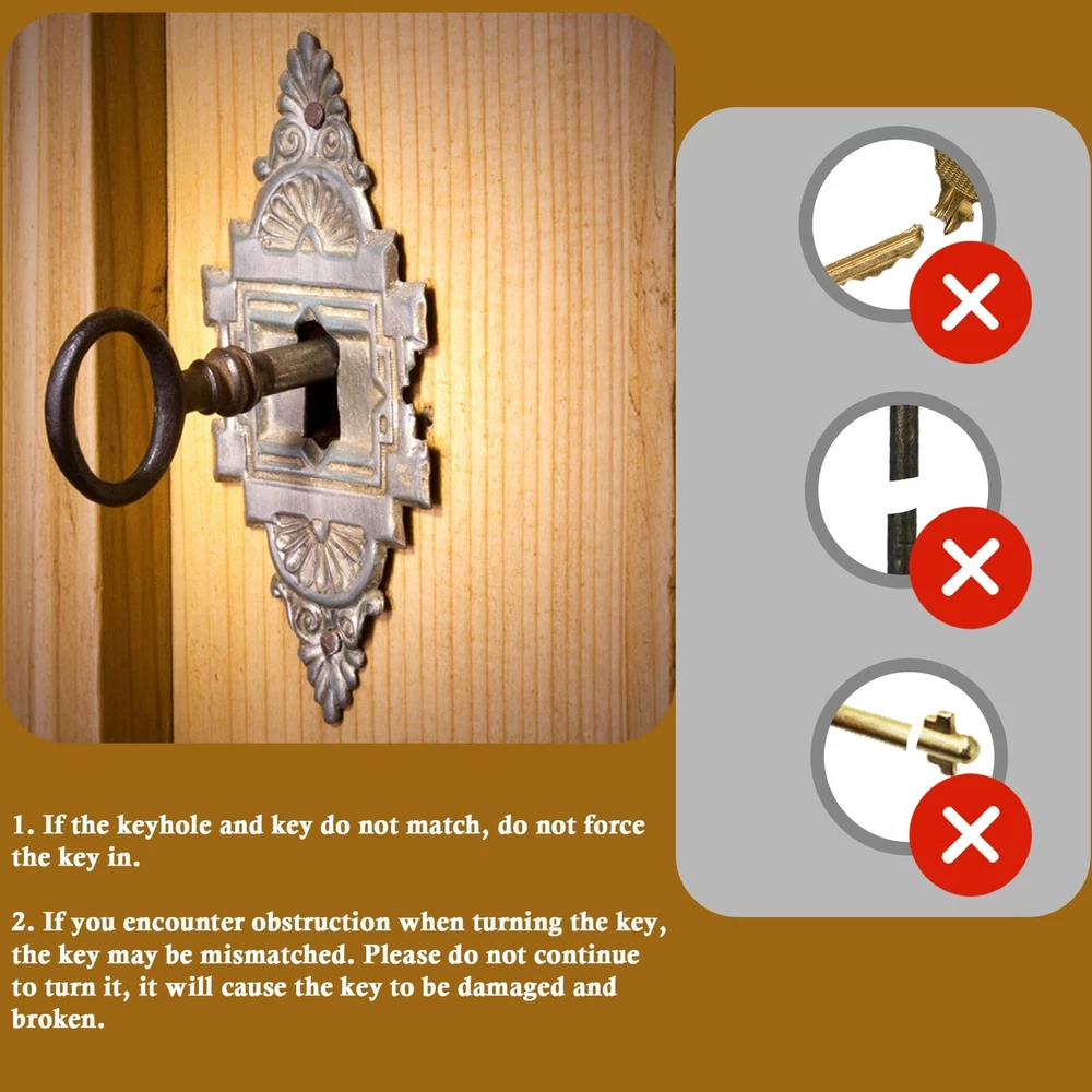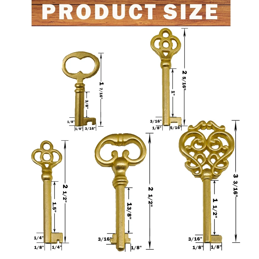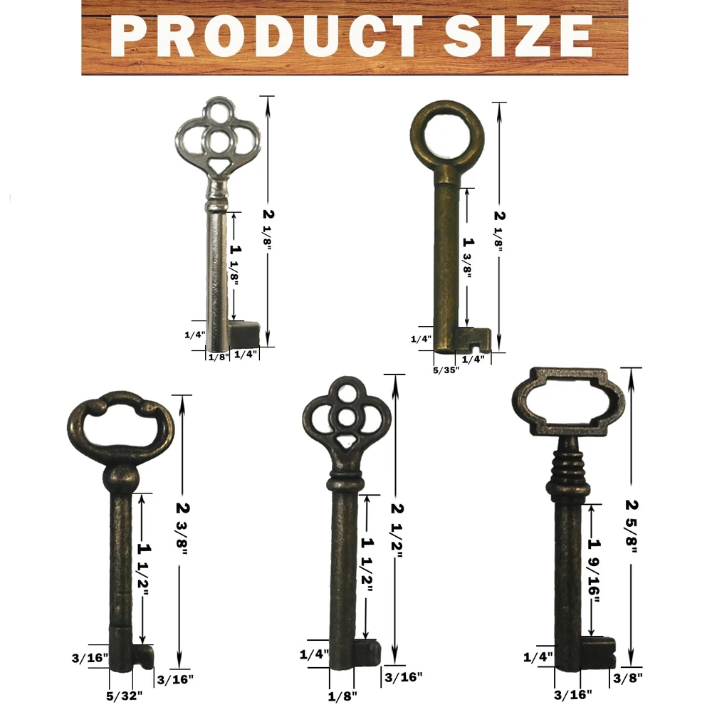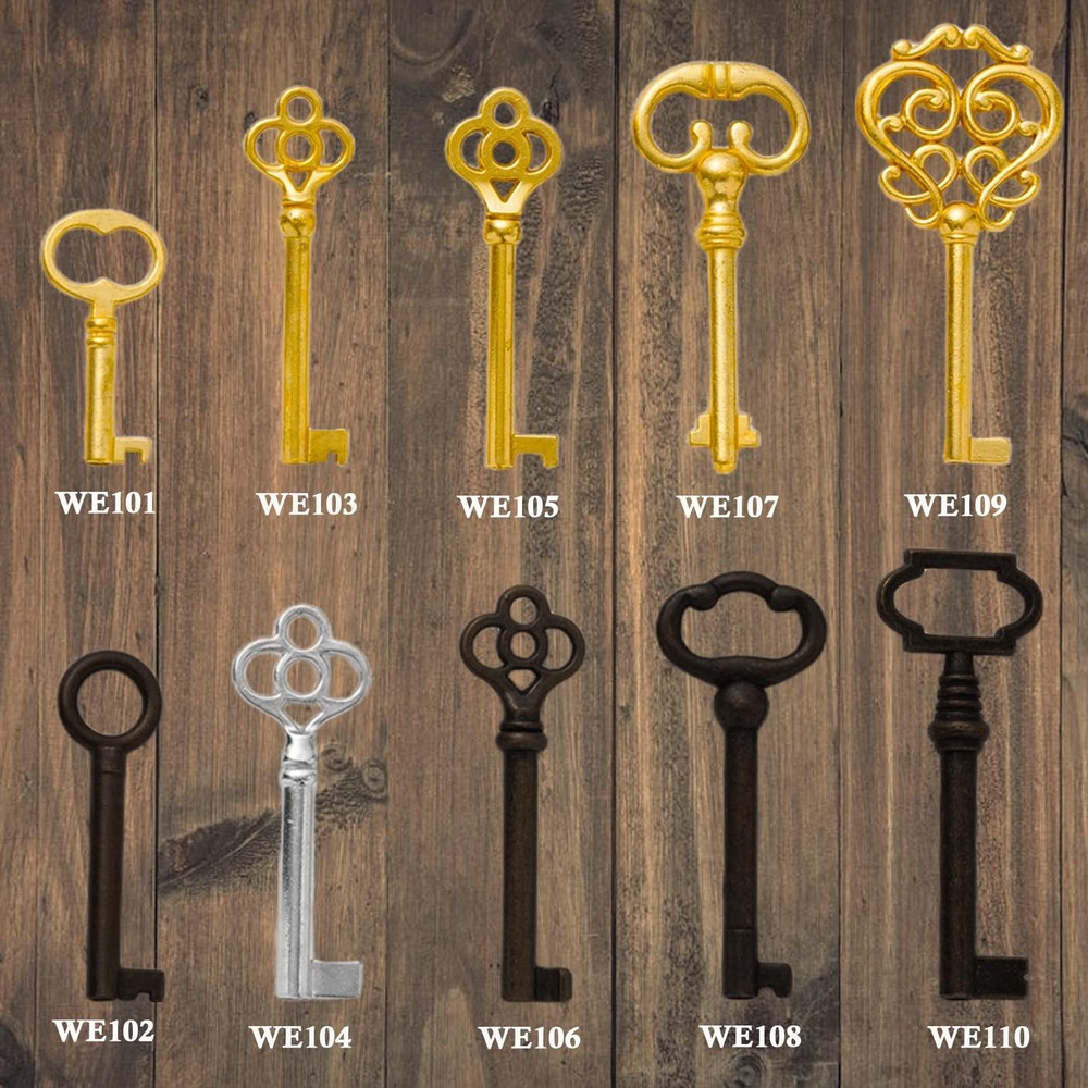 Transform your access to vintage treasures with this versatile 10-piece skeleton key set. Perfect for antique furniture enthusiasts and collectors, this kit features a carefully curated selection of both brass-toned and bronze-toned skeleton keys designed to work with various old-style locks. Each key in the set showcases classic craftsmanship with ornate bow designs and different blade patterns, making them suitable for antique dressers, traditional Chinese cabinets, and vintage furniture pieces. The keys come conveniently organized on a sturdy key ring for easy storage and access. Whether you're restoring period furniture or maintaining heritage pieces, these replacement skeleton keys offer practical functionality while maintaining the authentic charm of yesteryear. The set includes various sizes and styles to accommodate different lock mechanisms commonly found in antique cabinetry and doors. 10Pcs Skeleton Keys: This skeleton key set contains the following keys: WE101 / WE102 / WE103 / WE104 / WE105 / WE106 / WE107 / WE108 / WE109 / WE110 which is most popular skeleton keys(manual measurement: Please allow slight errors) High Quality: The skeleton key is made of high grade zinc alloy material, smooth surface, anti-corrosion, anti-oxidation, sturdy and durable Application Scope: This skeleton key set fit dresser drawer, china cabinet, curio cabinet, cupboard, grandfather clock, armoire, secretary desk, roll top desks, dressers, cupboards, grandfather clocks, curio and other types of furniture Easy to Carry: Pack of 10 the most popular skeleton keys all on one ring, and 1 key can open many locks, so our 10 locks are perfectly suited to your needs Please check the key and size carefully before purchasing, if you encounter obstacles in unlocking the door, please don't turn the key forcibly, please let me know and we will help you