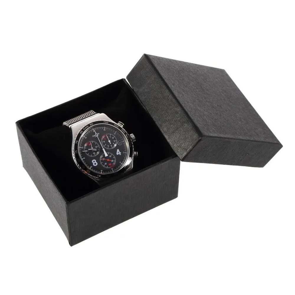 Specifications: Material: paper Color: black,blue Item size: about 83*78*52mm(include no watch) Features: A perfect decoration for your gift. Cartons watch jewelry box. With foam pad inside. Elegant designed box. Keep the jewelry dust free . Perfect for both personal use and business use. Description: Soft removable pillow is easy to clean and maintain, and protecting your watches against scratches and friction Convenient, portable, and practical. Great for storage your watches, bracelets, or other treasures; perfect for home and business use, and a wonderful gift idea