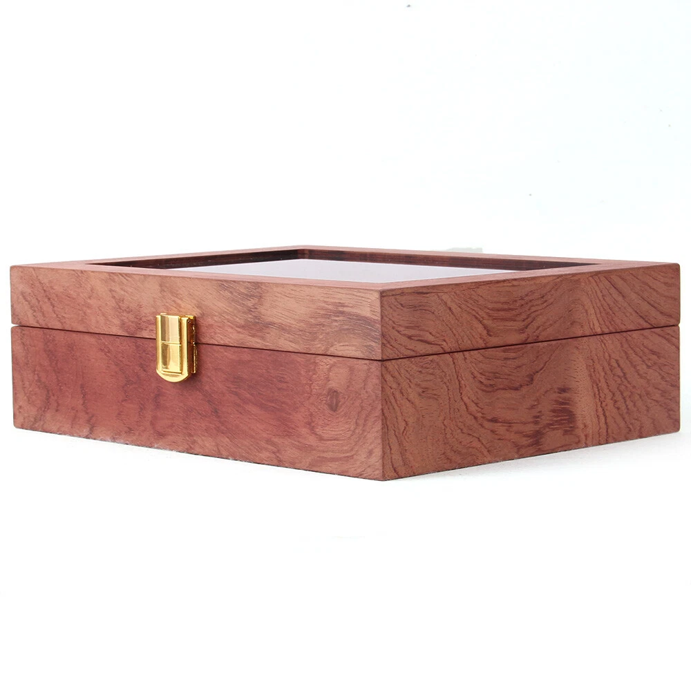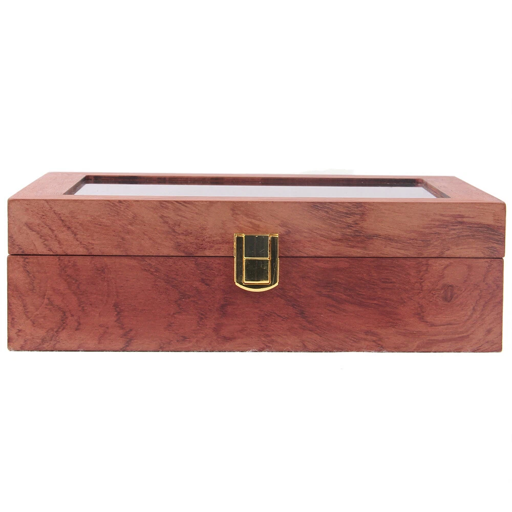 This wooden watch box is absolutely stunning! The rosewood grain gives it a classy, elegant look, while the velvet lining keeps my watches safe and scratch-free. The glass lid is crystal clear, making it easy to admire my collection without opening it. Perfect size for my dresser, and the 10 slots fit all my favorite timepieces. Great quality and very sturdy—definitely worth it! Love how it keeps everything organized and dust-free. Highly recommend!
