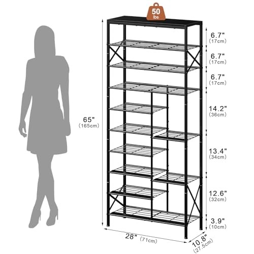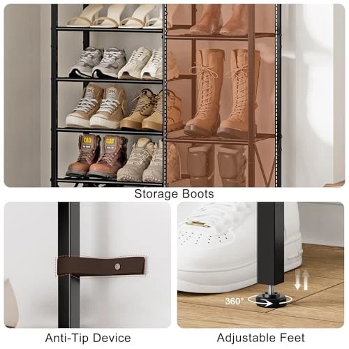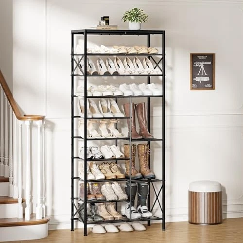 Perfect for decluttering! This 10-tier shoe rack holds tons of shoes neatly, even boots. Sturdy and sleek, it fits anywhere—entryway, closet, or dorm. Love how it maximizes space while keeping everything organized. Fast delivery too! Highly recommend.
