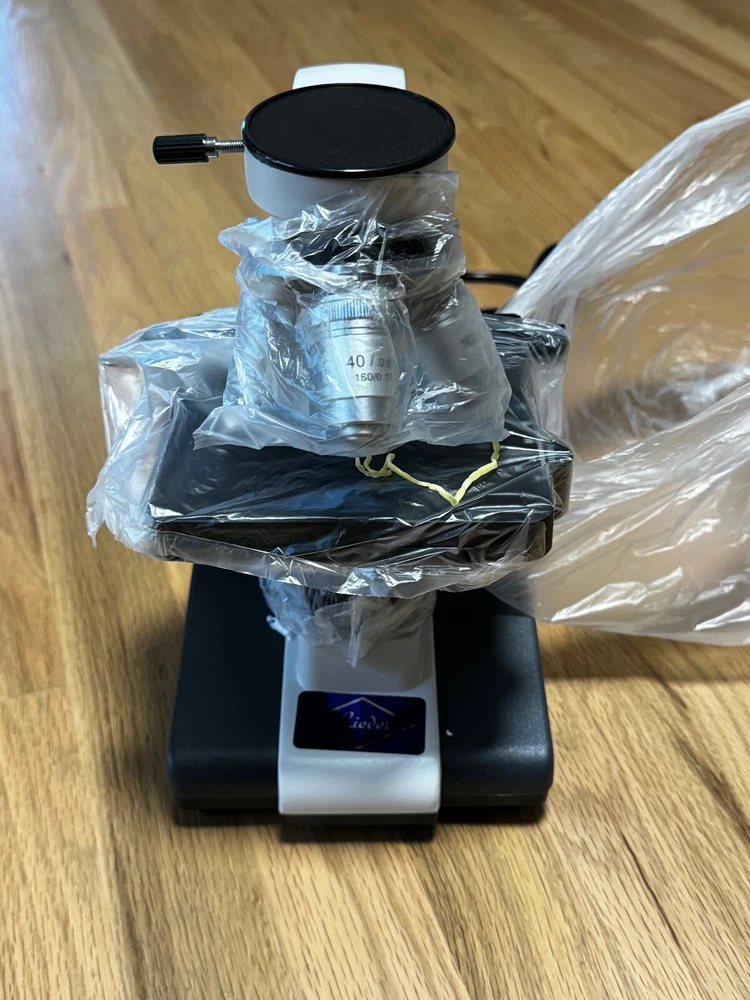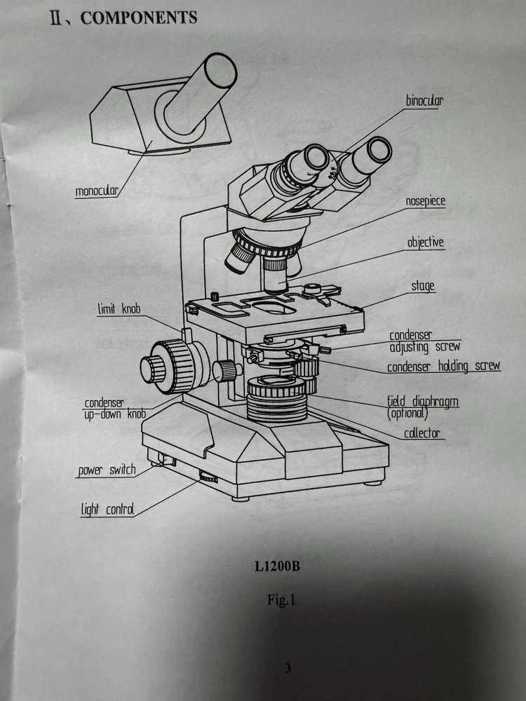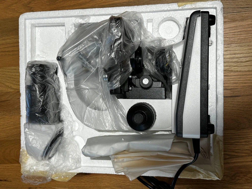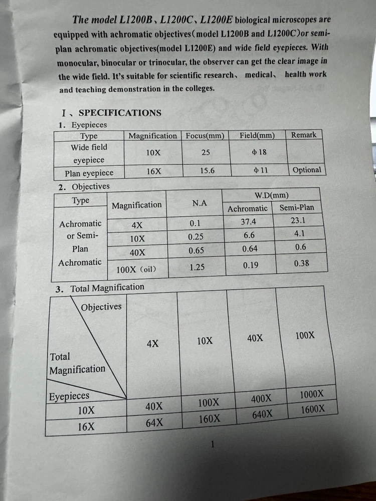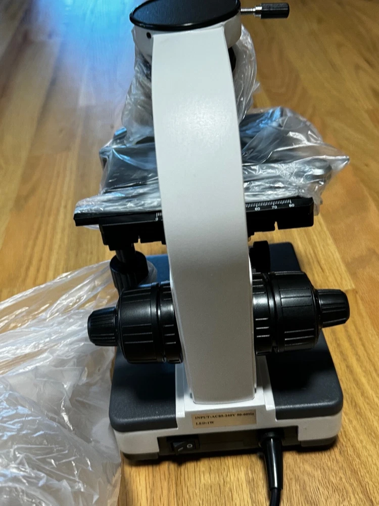 GREAT NEW IN BOX MICROSCOPE. MODEL L1200. PLEASE USE THE INCLUDED PHOTOS FOR ALL SPECS AND DETAIL.