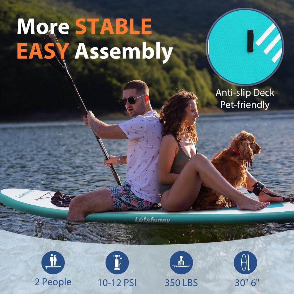 This inflatable stand-up paddle board is a fantastic choice for anyone wanting stability and versatility on the water. The non-slip surface keeps you safe, while the lightweight design makes it easy to carry and store. Whether you're into yoga, cruising, or just relaxing, it performs well in different water conditions. The bright color options add a fun touch, and the included accessories make it a great value. Highly recommend for beginners and experienced paddlers alike!