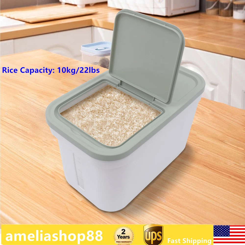 10kg Airtight Rice Dispenser Cereal Container Flour Storage Box Food Bean Box Description 10 Kg Large Storage Container for Food, Flour Container, Rice Dispenser,Container, Large Storage Container for Food. Description Our Container Is Not Only but Also Has a Large Capacity That Can Hold 22lbs of Rice. the Simple and Stylish Appearance Also Looks Beautiful in the Kitchen. the Visual Design Allows You to See How Much Rice Is Left in the Container. It Is the Ideal Storage Option for Your Kitchen. Key Features Great Durability: This Rice Container Is Made of Pp. This Material Is Very Sturdy and Durable. Therefore, It Will Be Uneasy to Deform or Damage. You Can Use It for a Long Time. Safe to Use: This Rice Container Is Made of Food-grade Safe Pp Material, so It Is Safe to Touch Your Food. You Can Use It with Confidence. Large Capacity: This Rice Container Has a Large Capacity. It Can Hold 10kg / 22lbs of Rice. so It Can Meet the Rice Storage Needs of Most Families. Simple and Stylish Appearance: the Square Appearance Together with the Green Color Looks Very Beautiful and Simple. Placing It in the Kitchen Will Make the Kitchen Look More Stylish and Neat. Visual Window Design: There Is a Clear Window with a Clear Scale Line on the Container, so You Can Directly See the Type of Grain in the Container and the Remaining Amount Without Opening the Lid, Which Is Convenient for You to Add in Time. Convenient Flap Design: the Lid of This Rice Container Is Also Designed with a Flap to Eliminate the Hassle of Finding a Place to Store the Lid. It Is More Convenient for You to Open It to Add Rice. Easy to Clean: Because Pp Material Is Waterproof, You Can Directly Clean the Rice Container with Water, Which Is Convenient. Guaranteed Customer Service: Your Satisfaction Is Our Top Priority, We Will Make Things Right for You. If You Are Unsatisfied with Our Products, You Can Contact Us and We Will Ensure You Have a Pleasant Shopping Experience in Our Store. Details Removable Anti-bug Box: We Designed a Removable Box on the Lid to Put Anti-bug Items. the Box Has Many Ventilation Holes. You Can Put Things That Can Repel Insects in It like Garlic and Star Anise. Rice Cup: There Is a Rice Cup in the Package to Facilitate You to Hold Rice. so You Don't Need to Buy an Extra Rice Cup. Practical Lid: After Removing the Lid of the Rice Container, It Will Be Very Convenient for You to Add Rice. It Also Prevents Dust from Entering the Inside. Thickened Edges: the Edges of the Rice Container Are Thickened to Make It More Drop-proof and Durable. Rounded Corners Design: the Corners of This Rice Container Are Designed in a Rounded Shape, Which Not Only Looks Beautiful but Also Prevents Scratches or Bruises. Application It Is Suitable for Many Types of Kitchens in Homes, Restaurants, and Rice Stores to Store Grains, Beans, Sugar, Flour, Nuts, Coffee, Dried Fruits, Pasta or Pet Food, Etc. Specification Color: Green and White Material: Pp Style: Simple Rice Capacity: 10kg/22lbs Gross Weight: 1.07kg/2.36lbs Net Weight: 0.85kg/1.87lbs Product Size: 22*38*23cm/8..66*14.96*9.06inch Package Size: 39*24*25cm/15.35*9.45*9.84inch Package Included 1* Rice Container 1* Rice Cup Notes We Recommend That You Place the Rice Container in a Cool and Dry Place. Please Allow the Slight Color Difference Caused by the Shooting Light and 1-3 Cm Error Due to Manual Measurement, and Make Sure You Do Not Mind Before Ordering. Payment Delivery details Terms of sales About us Contact us Payment We accept ebay payment 。 Fees such as import duties, taxes are not included in the item price or shipping costs. These charges are the buyer's responsibility. Delivery details Shipping: 2-9 working days to: USA Terms of sales We maintain high standards of excellence and strive for hundred percent customer satisfaction. Feedback is very important to us. We hope that you contact us immediately before you give neutral or negative feedback, so that we can address your concerns. It is impossible to address issues if we do not know about them! About us Your satis faction is our ultimate goal. We work hard to earn your trust and future business. Our certified technicians have tested each item before shipping. The unit comes with 1 year limited warranty on all manufacturing defects. a) If you receive a defective item, you may return it or ask for a discount. Please contact us within 14 days after you receive the package. b) What you returned must be intact and in its original packaging as re? u. Customer is responsible for shipping costs of the returned item. c) We will cover the cost of shipping back t with the shipping rate indicated in the registration page. We will send you a new unit or refund the full payment you paid. Thank you. Contact us Business Hour Business Hour: Monday To Friday: 8:30 AM to 5:00 PM (Beijing China time) Due to time zones, our reply to your questions may not be immediately. But within above working time, we will reply your email within 24 hours. If it's non-workdays, please kindly be patient and wait till Monday. Please contact us with ebay message. Please feel free to contact us if you have any questions. Monday To Friday: 8:30 AM to 5:00 PM (Beijing China time) Due to time zones, our reply to your questions may not be immediately. But within above working time, we will reply your email within 24 hours. If it's non-workdays, please kindly be patient and wait till Monday. Please contact us with ebay message. Please feel free to contact us if you have any questions. On Nov 18, 2024 at 20:41:10 PST, seller added the following information:
