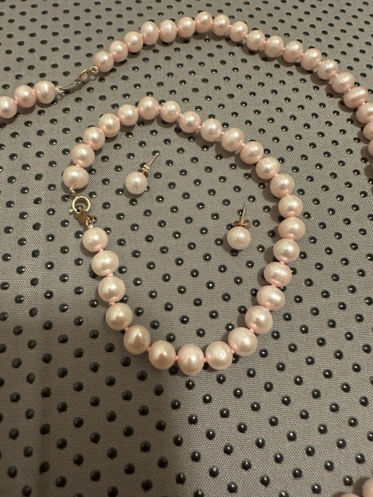 10kt Gold JCM Pink Pearl Jewelry Set with Necklace Bracelet Earrings