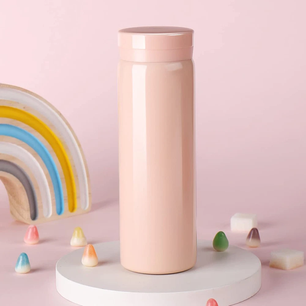 Mini Thermos Cute Water Bottle - 10 oz Tiny Insulated Vacuum 18/10 Stainless Steel Small Flask - Leak Proof & Spill Proof & Keeps Cold and Hot for Drink, Coffee, Tea - Pink Why Choose This Thermos: This slim and skinny thermos bottle is esay to carry, you can easily put into you backpack, purse, gym bag or suitcase. You can take it out when you have a water source. You will do not need to use a one-time cup or another person's cup, which can protect the environment. Innovative Vacuum Insulation: Our highly rated thermos bottle keeps drinks cold for 12 hours or hot for 6 hours. Our thermos water bottle retains temperatures for hours and prevents condensation from forming on the bottles exterior. Food Grade 18/10 Stainless Steel: This wide mouth thermos bottle is made of high quality food grade SUS 316 18/10 stainless steel,100% Safe for everyday use. Perfectly Portable: Pack this leak proof and sweat proof flask in lunch boxes, purses or backpacks without worrying about spills. Enjoy hot drinks in the winter or cold drinks in the summer with our small water bottle. Our versatile thermos can be used as a kids thermos for kids to take water, juice, or milk to school. This thermos can also be used by adults as a coffee thermos for work. Great Size: Our stylish bottles are small enough for kids hands, yet big enough for quenching thirsts. The size of the bottle opening makes for fast filling and easy cleaning. Brighten up your morning and your kids morning by filling up your thermoses with delicious beverages to go!