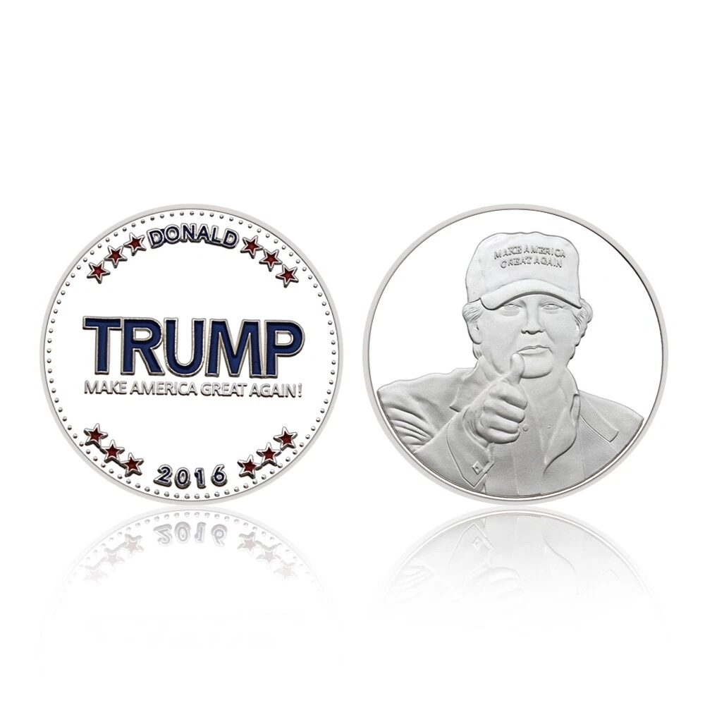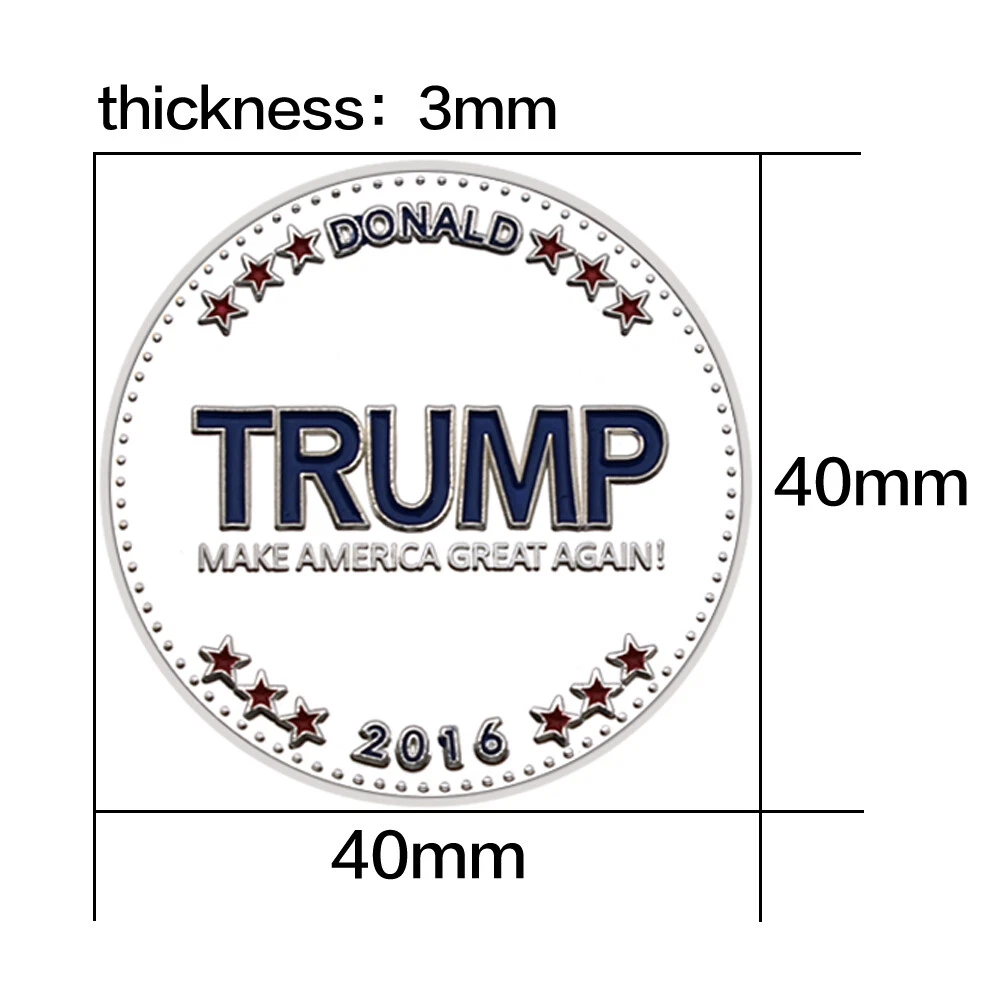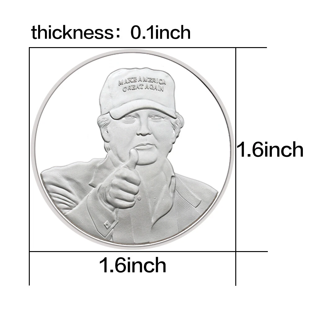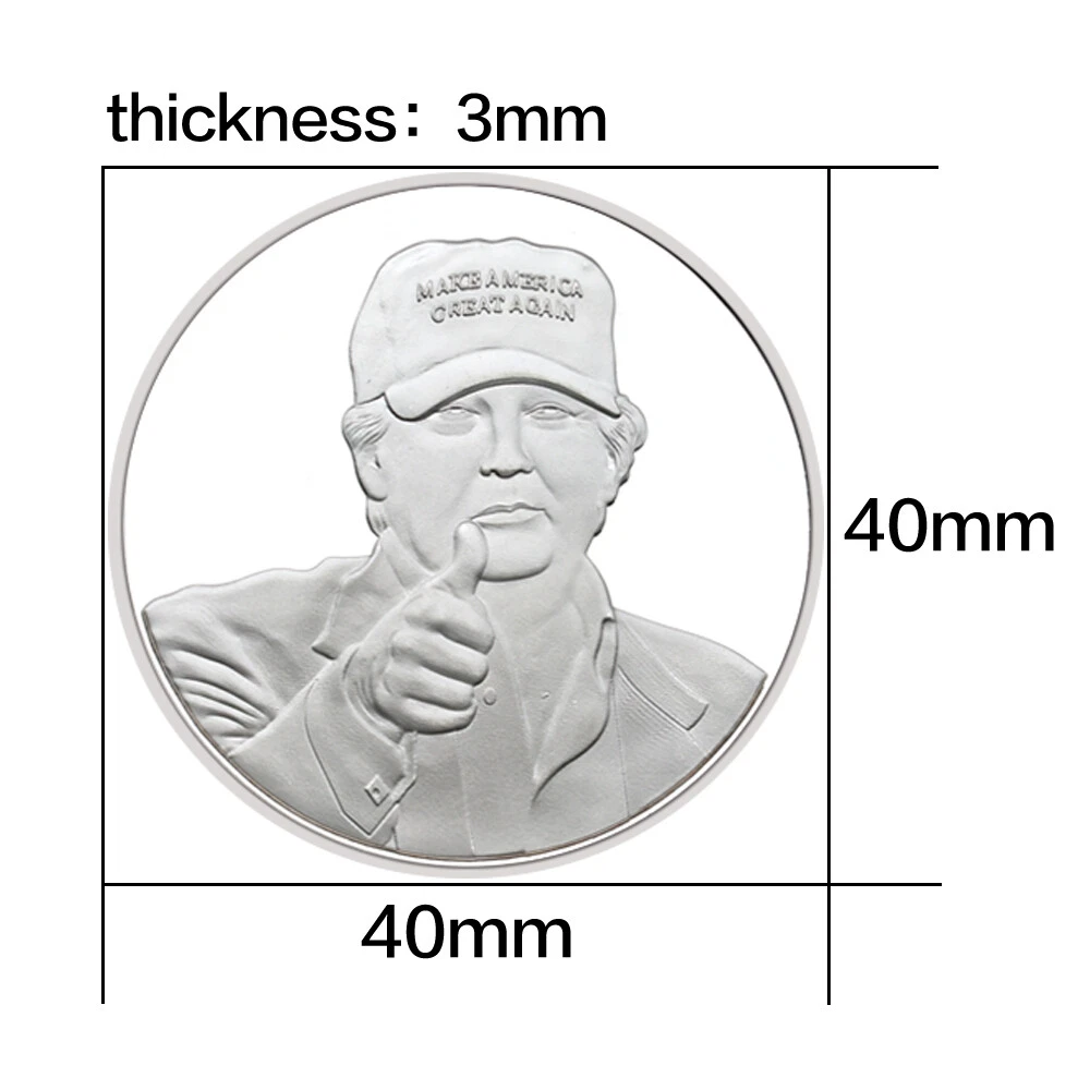 10pcs 2016 Trump Make America Great Again Silver Plated Coin US President Medal This Trump commemorative coin is beautifully designed. On the obverse, there is an image of President Trump's head, accompanied by the words "DONALD TRUMP", and the year "2016" at the bottom. The reverse side features Trump's classic gesture - thumbs up, along with the slogan "MAKE AMERICA GREAT AGAIN!", symbolizing his campaign promise and governing philosophy. The entire coin is made of silver metal material, with smooth edges and a heavy texture, making it a valuable collectible item. Product Attributes: Size: 40*3mm Weight: About 300g Packaging: 10pcs Coins +10pcs Plastic Cases Technique: Plating Material: Iron Alloy Usage: Advertising gift, conference gift, festival gift, etc P r o duct Description 1. The product colors may be a bit difference as the picture showed, your understanding is appreciated. 2. Conversion : 1 inch=25.4mm or 1mm=0.0393inch. Please allow 0.1-0.3mm error due to manual measurement. 3 . We also accept wholesale or customized orders. If you need more quantity, please contact us. 4 . The coin is only gold/silver in color, not real gold/silver. Shipping Way There are three main logistics methods: economy logistics, standard logistics, and expedited logistics. 1. Economic logistics: The transportation time is about 20-75 days, and the logistics information will not be updated after the package arrives in the destination country. Thank you for your patience. If the package still hasn't arrived 50 days after shipment, please contact me and I will resend it to you or provide you with a full refund. 2. Standard logistics: The transportation time is about 8-18 days, and you can check the logistics status of the package through the tracking number. If the logistics have not been updated for a long time, please contact me, and I will help you inquire about the status of the package with the logistics company. 3. Expedited logistics: The transportation time is about 3-10 days, and the main logistics include UPS, Fed e x, DHL and TNT. * All products in the store are free shipping. If you need to upgrade the logistics, you can choose the logistics you need in the logistics options. There is a payment option for upgrading the logistics, please check carefully. Return 1. Change of mind/ Unwanted item(s) Customer can return the unwanted order(s) within 14/30 days upon receipt. Item(s) must be returned in brand new, resalable condition. 2 . Item Damaged During Transit If item has been damaged during transit, please send us clear photos of the damaged item within 48 hours upon receipt. We'll offer a replacement or issue a full refund. 3. Item Lost During Transit Tracking number will be provided once item has been shipped. If item has been confirmed lost during transportation, Please contact us, we will arrange a replacement or a refund for the confirmed lost case. Feedback 1. we depend on our customer satisfaction to succeed, Therefore, your feedback is extremely important to us. 2. If you are satisfied with our items, please leave us 5 stars feedback. 3. Pls contact us before leaving any negative or neutral feedback. we will do our best to solve the problem. Service quality * Reply your inquiry in 24 hours. * Provide you with samples or clear pictures for your reference.^_^ * Recommend similar items for you to compare with. * If you have no forwarder ,we will arrange our cooperative forwarder for you. * Solve problems for you.