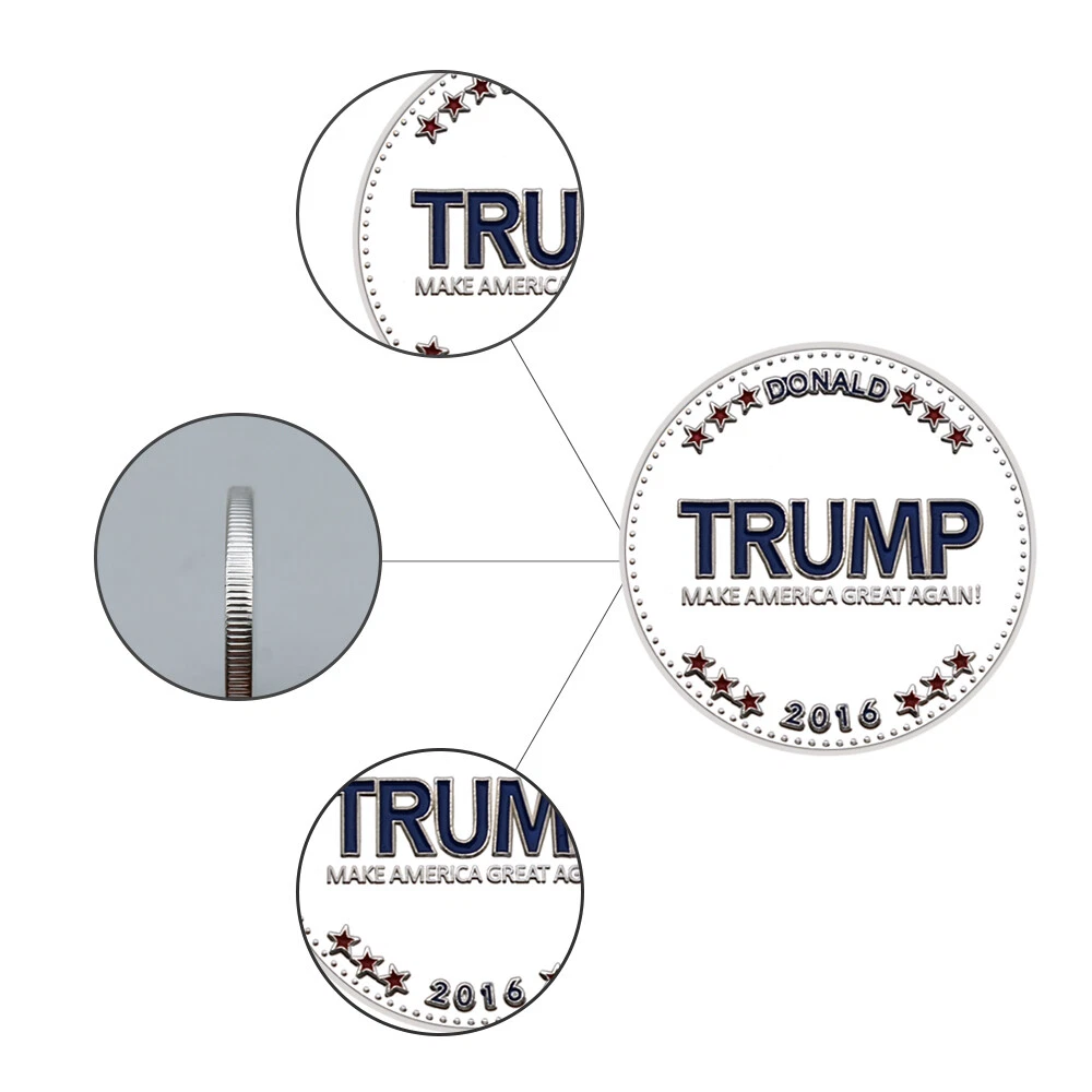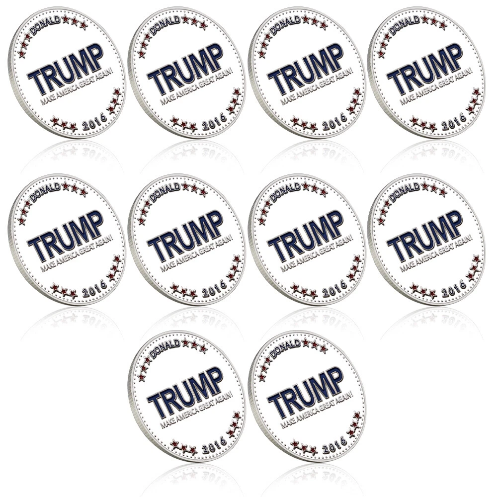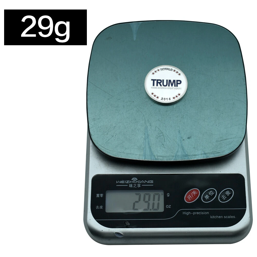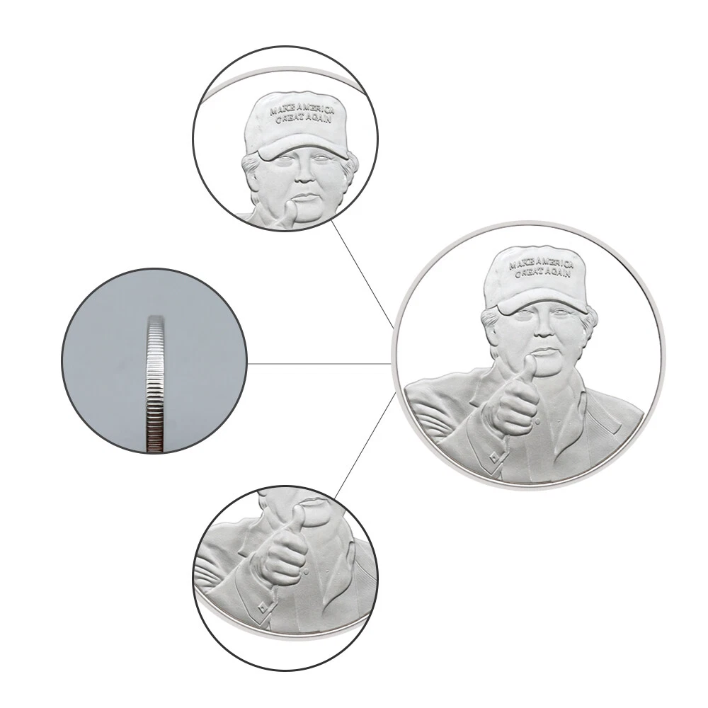 10pcs 2016 Trump Make America Great Again Silver Plated Coin US President Medal This Trump commemorative coin is beautifully designed. On the obverse, there is an image of President Trump's head, accompanied by the words "DONALD TRUMP", and the year "2016" at the bottom. The reverse side features Trump's classic gesture - thumbs up, along with the slogan "MAKE AMERICA GREAT AGAIN!", symbolizing his campaign promise and governing philosophy. The entire coin is made of silver metal material, with smooth edges and a heavy texture, making it a valuable collectible item. Product Attributes: Size: 40*3mm Weight: About 300g Packaging: 10pcs Coins +10pcs Plastic Cases Technique: Plating Material: Iron Alloy Usage: Advertising gift, conference gift, festival gift, etc P r o duct Description 1. The product colors may be a bit difference as the picture showed, your understanding is appreciated. 2. Conversion : 1 inch=25.4mm or 1mm=0.0393inch. Please allow 0.1-0.3mm error due to manual measurement. 3 . We also accept wholesale or customized orders. If you need more quantity, please contact us. 4 . The coin is only gold/silver in color, not real gold/silver. Shipping Way There are three main logistics methods: economy logistics, standard logistics, and expedited logistics. 1. Economic logistics: The transportation time is about 20-75 days, and the logistics information will not be updated after the package arrives in the destination country. Thank you for your patience. If the package still hasn't arrived 50 days after shipment, please contact me and I will resend it to you or provide you with a full refund. 2. Standard logistics: The transportation time is about 8-18 days, and you can check the logistics status of the package through the tracking number. If the logistics have not been updated for a long time, please contact me, and I will help you inquire about the status of the package with the logistics company. 3. Expedited logistics: The transportation time is about 3-10 days, and the main logistics include UPS, Fed e x, DHL and TNT. * All products in the store are free shipping. If you need to upgrade the logistics, you can choose the logistics you need in the logistics options. There is a payment option for upgrading the logistics, please check carefully. Return 1. Change of mind/ Unwanted item(s) Customer can return the unwanted order(s) within 14/30 days upon receipt. Item(s) must be returned in brand new, resalable condition. 2 . Item Damaged During Transit If item has been damaged during transit, please send us clear photos of the damaged item within 48 hours upon receipt. We'll offer a replacement or issue a full refund. 3. Item Lost During Transit Tracking number will be provided once item has been shipped. If item has been confirmed lost during transportation, Please contact us, we will arrange a replacement or a refund for the confirmed lost case. Feedback 1. we depend on our customer satisfaction to succeed, Therefore, your feedback is extremely important to us. 2. If you are satisfied with our items, please leave us 5 stars feedback. 3. Pls contact us before leaving any negative or neutral feedback. we will do our best to solve the problem. Service quality * Reply your inquiry in 24 hours. * Provide you with samples or clear pictures for your reference.^_^ * Recommend similar items for you to compare with. * If you have no forwarder ,we will arrange our cooperative forwarder for you. * Solve problems for you.