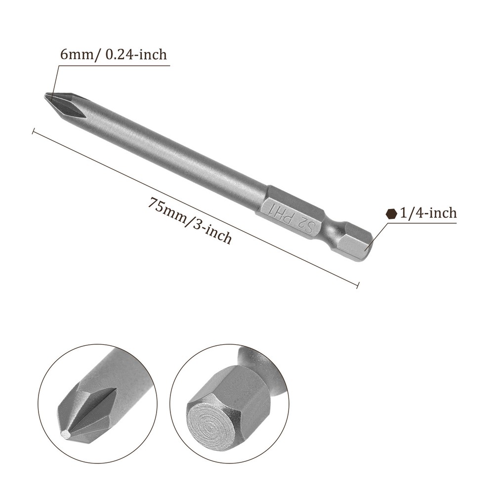 Document APPLICATION- Fit for electric screwdriver, manual screwdriver, power drill and other pneumatic or power tools with 1/4" hex holder. Widely used in cars, trucks, engines, motorcycles, computers, cable boxes and other applications.ABOUT THIS PRODUCT- Made of S2 alloy steel, which is a commonly used material in hardware with high hardness.- Sandblasting surface, corrosion resistance and durability.- Magnetic tip, can suck the screws easily when used it.- Exquisite workmanship, each edge can be accurately locked screws, no damage to the screw, and the screwdriver head.SPECIFICATIONBit Type: PH1Tip Diameter: 6mm / 0.24“Shank: 1/4“ Hex ShankLength: 75mm / 3”Material: S2 Alloy SteelFinish: SandblastingPackage: 10 packs of Cross Head Screwdriver BitTAKE NOTICE OF- Do not turn the screws with mismatched size to avoid damage to both the screw and the drill. 10pcs Phillips Screwdriver Bit - [3" x H1/4 x 6mm x PH1] Magnetic for Power Tool APPLICATION - Fit for electric screwdriver, manual screwdriver, power drill and other pneumatic or power tools with 1/4" hex holder. Widely used in cars, trucks, engines, motorcycles, computers, cable boxes and other applications. ABOUT THIS PRODUCT - Made of S2 alloy steel, which is a commonly used material in hardware with high hardness. - Sandblasting surface, corrosion resistance and durability. - Magnetic tip, can suck the screws easily when used it. - Exquisite workmanship, each edge can be accurately locked screws, no damage to the screw, and the screwdriver head. SPECIFICATION Bit Type: PH1 Tip Diameter: 6mm / 0.24“ Shank: 1/4“ Hex Shank Length: 75mm / 3” Material: S2 Alloy Steel Finish: Sandblasting Package: 10 packs of Cross Head Screwdriver Bit TAKE NOTICE OF - Do not turn the screws with mismatched size to avoid damage to both the screw and the drill. Hot Item Payment 1.We accept eBay payment . 2.Payment must be received within 7 business days of auction closing. Shipping 1.We ship to your eBay or Paypal address. Please make sure your eBay and Paypal address is correct before you pay. 2.Items will be shipped within 1-3 business day when we received payment. 3.Delivery time depends on destination and other factors. Description Policy 10pcs Phillips Screwdriver Bit - [3" x H1/4 x 6mm x PH1] Magnetic for Power Tool APPLICATION - Fit for electric screwdriver, manual screwdriver, power drill and other pneumatic or power tools with 1/4" hex holder. Widely used in cars, trucks, engines, motorcycles, computers, cable boxes and other applications. ABOUT THIS PRODUCT - Made of S2 alloy steel, which is a commonly used material in hardware with high hardness. - Sandblasting surface, corrosion resistance and durability. - Magnetic tip, can suck the screws easily when used it. - Exquisite workmanship, each edge can be accurately locked screws, no damage to the screw, and the screwdriver head. SPECIFICATION Bit Type: PH1 Tip Diameter: 6mm / 0.24“ Shank: 1/4“ Hex Shank Length: 75mm / 3” Material: S2 Alloy Steel Finish: Sandblasting Package: 10 packs of Cross Head Screwdriver Bit TAKE NOTICE OF - Do not turn the screws with mismatched size to avoid damage to both the screw and the drill. Hot Item Payment 1.We accept eBay payment . 2.Payment must be received within 7 business days of auction closing. Shipping 1.We ship to your eBay or Paypal address. Please make sure your eBay and Paypal address is correct before you pay. 2.Items will be shipped within 1-3 business day when we received payment. 3.Delivery time depends on destination and other factors.