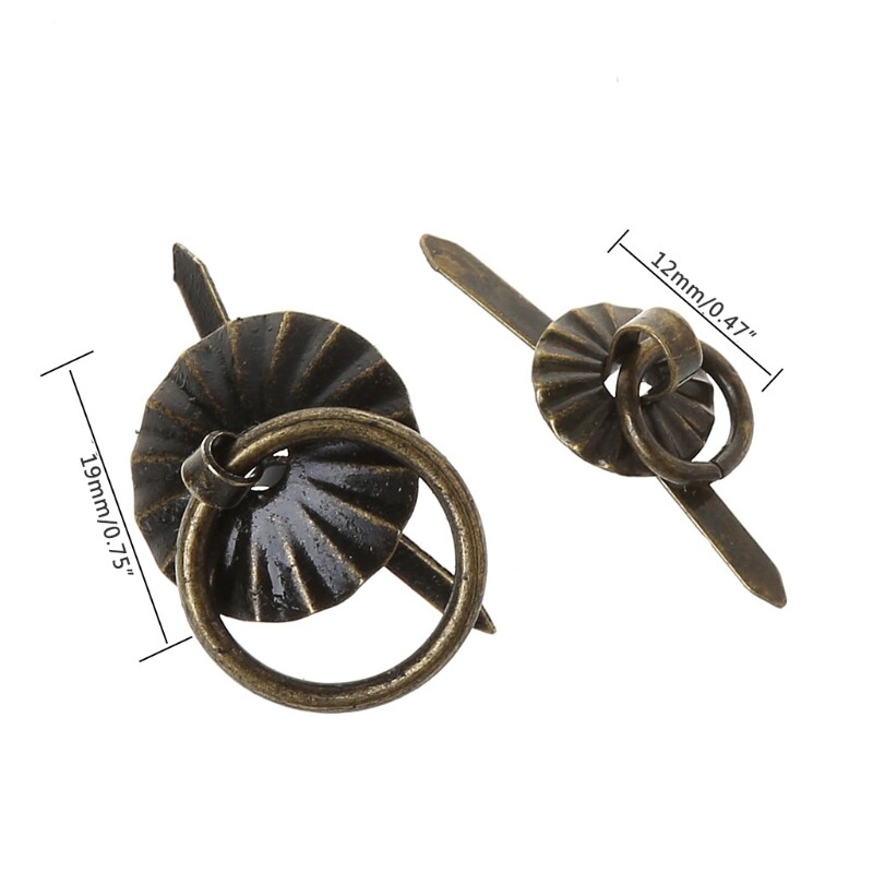 brand new and high quality Features: Vintage beautiful appearance. Antique appearance looks perfectly on traditional and period pieces. Perfect for your kitchen cabinet, dresser drawer, bookcase, door and so on. Ring Pin Handles only, other accessories in the picture is not included! Specification: Material: Iron Diameter Dimensions: Small Handle:12mm/0.47inch, Large Handle:19mm/0.75inch Color: Green Bronze Color Quantity: 10 Pcs/lot Note: 1.Please allow 0-1cm error due to manual measurement. pls make sure you do not mind before you bid. 2.Due to the difference between different monitors, the picture may not reflect the actual color of the item. Thank you! Package includes: 10 x Ring Pin Handle (without retail package)