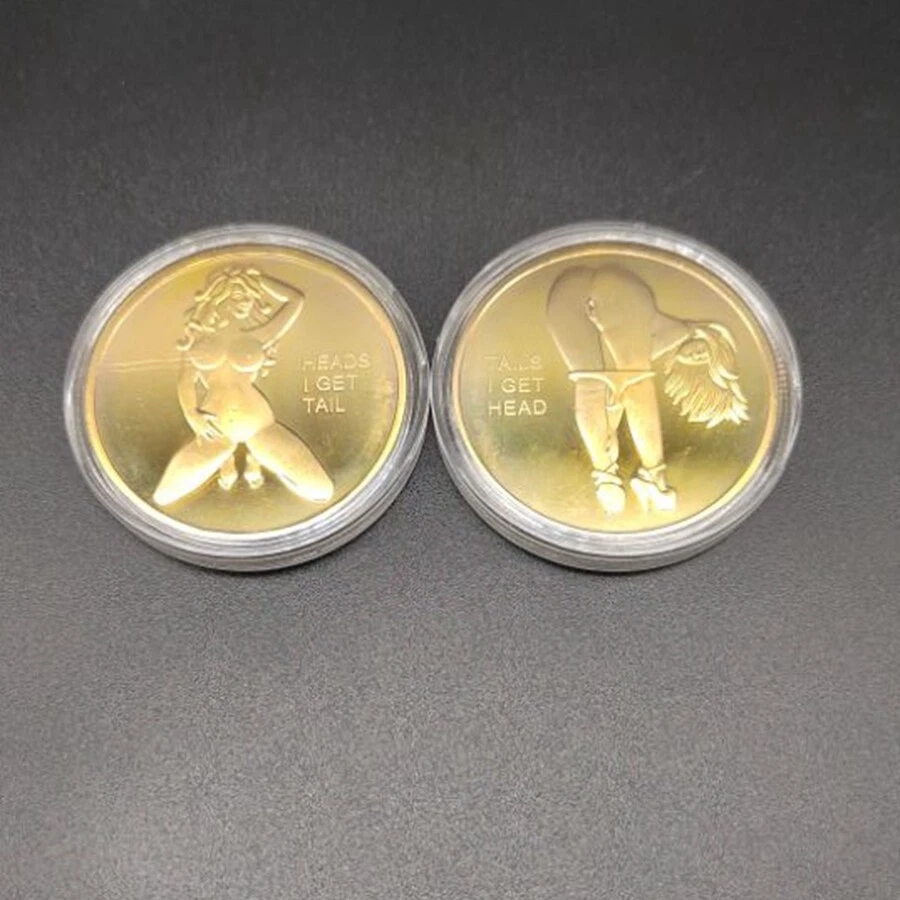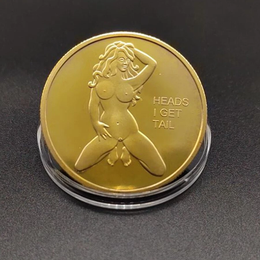 10pcs Heads I Get Tail -Tails I Get Head Sexy Girl Flipping Coin Gold Plate