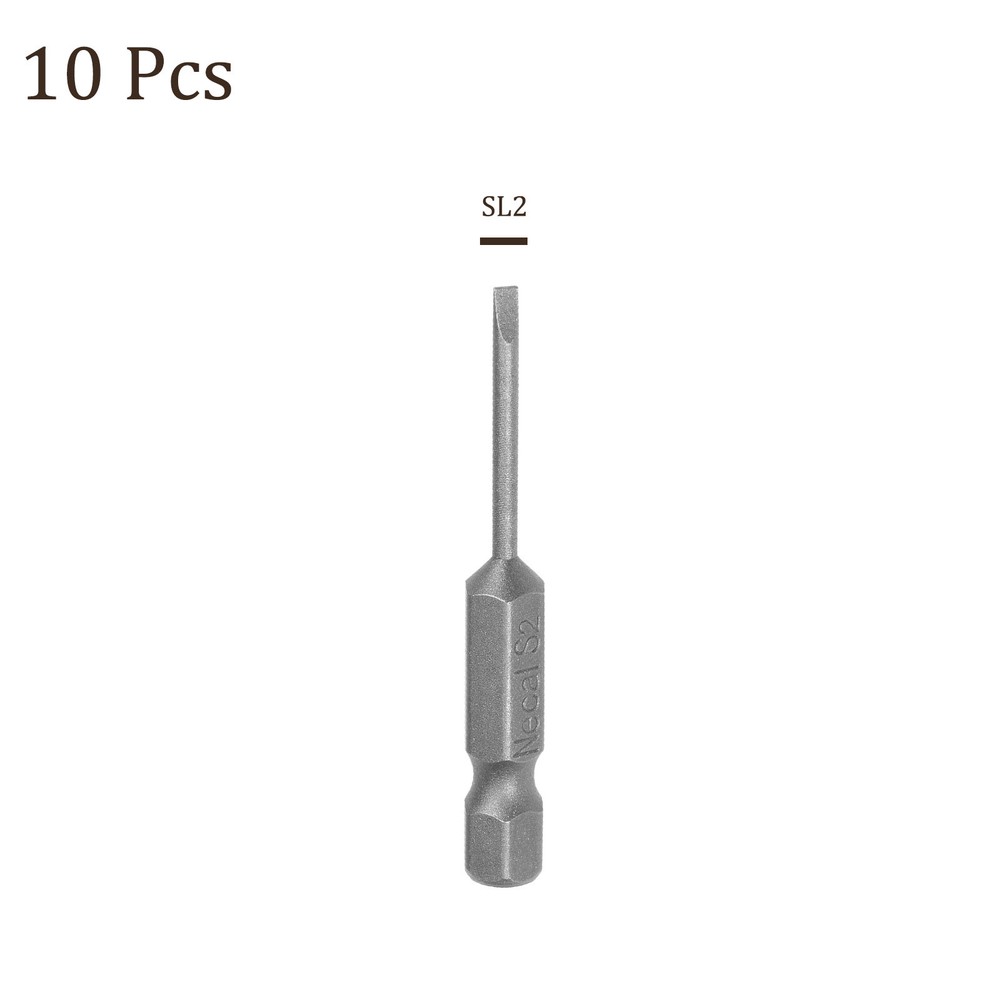 Document APPLICATION- Fit for electric screwdriver, manual screwdriver, power drill and other pneumatic or power tools with 1/4" hex holder. Widely used in cars, trucks, engines, motorcycles, computers, cable boxes and other applications.ABOUT THIS PRODUCT- Made of S2 alloy steel, which is a commonly used material in hardware with high hardness.- Sandblasting surface, corrosion resistance and durability.- Magnetic tip, can suck the screws easily when used it.- Exquisite workmanship, each edge can be accurately locked screws, no damage to the screw, and the screwdriver head.SPECIFICATIONBit Type: T15 Shank: 1/4“ Hex ShankLength: 50mm / 2”Material: S2 Alloy SteelFinish: SandblastingPackage: 10 packs of Flat Head Screwdriver BitTAKE NOTICE OF- Do not turn the screws with mismatched size to avoid damage to both the screw and the drill. 10pcs Slotted Screwdriver Bit - [2" x H1/4 x SL2] Magnetic for Power Tool Use APPLICATION - Fit for electric screwdriver, manual screwdriver, power drill and other pneumatic or power tools with 1/4" hex holder. Widely used in cars, trucks, engines, motorcycles, computers, cable boxes and other applications. ABOUT THIS PRODUCT - Made of S2 alloy steel, which is a commonly used material in hardware with high hardness. - Sandblasting surface, corrosion resistance and durability. - Magnetic tip, can suck the screws easily when used it. - Exquisite workmanship, each edge can be accurately locked screws, no damage to the screw, and the screwdriver head. SPECIFICATION Bit Type: T15 Shank: 1/4“ Hex Shank Length: 50mm / 2” Material: S2 Alloy Steel Finish: Sandblasting Package: 10 packs of Flat Head Screwdriver Bit TAKE NOTICE OF - Do not turn the screws with mismatched size to avoid damage to both the screw and the drill. Hot Item Payment 1.We accept eBay payment . 2.Payment must be received within 7 business days of auction closing. Shipping 1.We ship to your eBay or Paypal address. Please make sure your eBay and Paypal address is correct before you pay. 2.Items will be shipped within 1-3 business day when we received payment. 3.Delivery time depends on destination and other factors. Description Policy 10pcs Slotted Screwdriver Bit - [2" x H1/4 x SL2] Magnetic for Power Tool Use APPLICATION - Fit for electric screwdriver, manual screwdriver, power drill and other pneumatic or power tools with 1/4" hex holder. Widely used in cars, trucks, engines, motorcycles, computers, cable boxes and other applications. ABOUT THIS PRODUCT - Made of S2 alloy steel, which is a commonly used material in hardware with high hardness. - Sandblasting surface, corrosion resistance and durability. - Magnetic tip, can suck the screws easily when used it. - Exquisite workmanship, each edge can be accurately locked screws, no damage to the screw, and the screwdriver head. SPECIFICATION Bit Type: T15 Shank: 1/4“ Hex Shank Length: 50mm / 2” Material: S2 Alloy Steel Finish: Sandblasting Package: 10 packs of Flat Head Screwdriver Bit TAKE NOTICE OF - Do not turn the screws with mismatched size to avoid damage to both the screw and the drill. Hot Item Payment 1.We accept eBay payment . 2.Payment must be received within 7 business days of auction closing. Shipping 1.We ship to your eBay or Paypal address. Please make sure your eBay and Paypal address is correct before you pay. 2.Items will be shipped within 1-3 business day when we received payment. 3.Delivery time depends on destination and other factors.