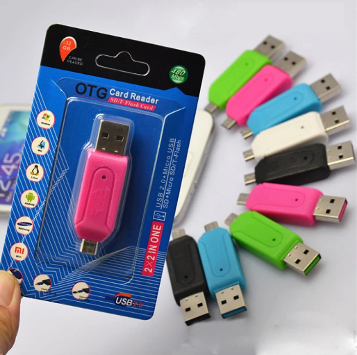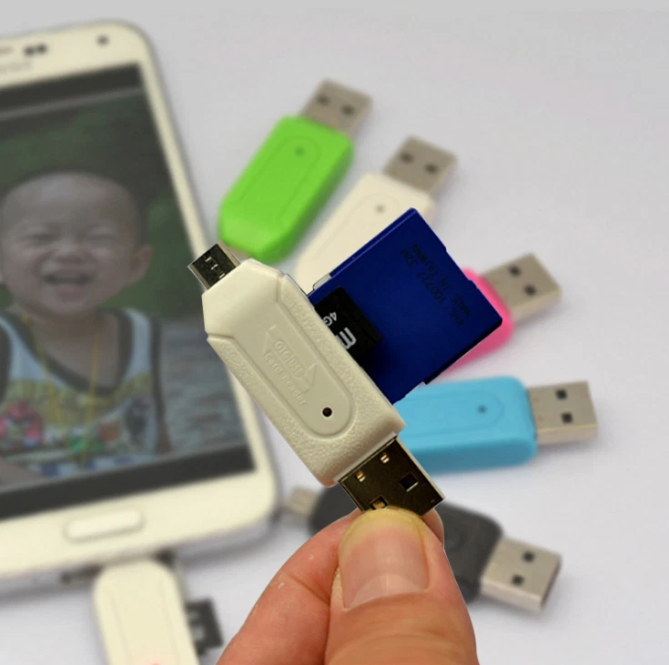 Product Name: mobile computer dual slot OTG card reader USB interface: Micro USB / USB Support: SD card / micro SD card Product size: 51.5 x 19 x 11 mm (L x W x H) Product weight: 8 g Product specification: 1. Transmission interface: USB2.0 (micro USB 5pin) + USB a 2. Chipset: ite1327 3. Card slot: 2 slots (SD + micro SD) 4. Transmission speed: USB2.0 transmission 480MB / S (specification value) 5. Material: ABS 6. Operating system: Android 2.3 or above, interface as host function, support OTG function, smartphone and tablet 7. Support PC operating system: Windows 2000, 2003, XP, vista, MAC 10.45 or above and Linux 2.4 or above Product features: 1. Compact shape, easy to carry 2. USB a male and micro USB dual plug design, support smart phone and PC dual interface 3. There is no need to transfer data between smart phone and memory card through PC 4. It fully conforms to the high-speed USB2.0 transmission protocol, and the maximum transmission can reach 480MB / s 5. Blue LED, reading and writing flash 6. Plug and play without external power supply 7. Support high speed and large capacity SDXC and micro SDXC memory card, up to 128GB 8. Support SD V3.0 UHS - I specification, the maximum transmission is 104mb / s 9. Support Samsung Galaxy SII i9100, i9103, i9220, SIII 9300, note II 7100, HTC new one, HTC butterfly, Sony Xperia Z, Xiaomi 2 and smart phones and tablets with OTG function and micro USB interface 10. Memory card support: A. SD / SDHC / SDXC / EXTREME SD / EXTREME II SD / EXTREME III SD/ ULTRA SD / ULTRA II SD / ULTRA II SD P PLUS / SD-ULTRA-X /ULTRA SPEED SD / SD PRO / SD ELITE PRO / HS SD / MMC / MMC 4.0 B. microSD / microSDHC / microSDXC matters needing attention: 1. Some mobile phones on the market only support SDHC up to 32GB memory card, and the products use chips to support SDXC up to 2TB 2. Support Android 2.3 or above micro USB interface smartphone, the interface must be used as the host function 3. FAT32 format is supported, NTFS format is not. (smart phone interface) 4. Please see if your mobile phone or tablet supports OTG data function. Your mobile phone or tablet must support OTG function. Not all mobile phones and tablets can support OTG function. Quantity: 10pcs