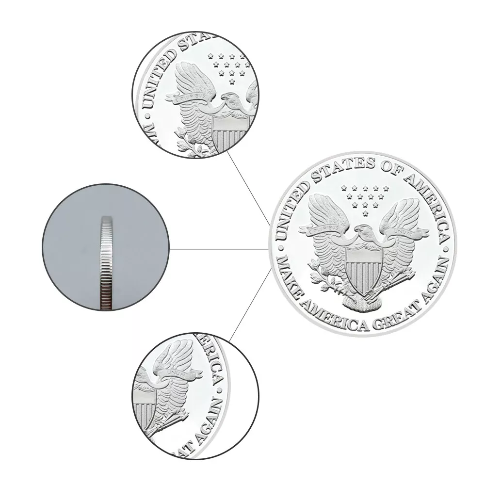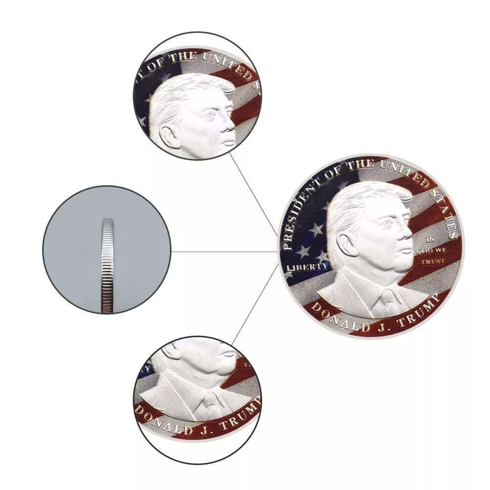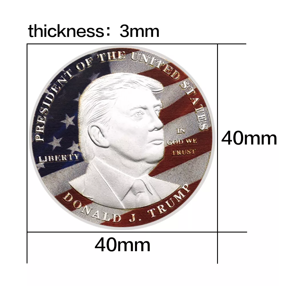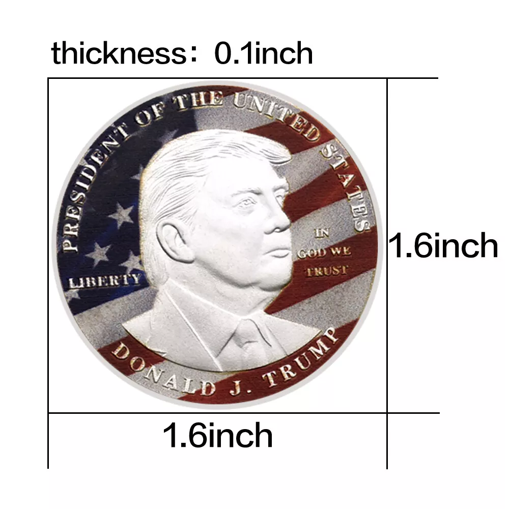 10pcs President of The United States Donald Trump Challenge Coin Ornament Medal This commemorative coin is specially designed and produced to celebrate Donald J. Trump's presidency of the United States. The obverse features a profile portrait of President Trump, with the colors of the American flag in the background, symbolizing national glory and pride. The coin also bears the words "Liberty" and "In God We Trust," embodying core American values. The reverse displays the Great Seal of the United States, featuring an eagle soaring with olive branches and arrows in its talons, symbolizing peace and strength. Surrounding it are the words "United States of America" and "Make America Great Again," expressing a vision for the nation's future. Not only does this commemorative coin have collectible value, but it also serves as a tribute and memorial to President Trump's term in office. Product Attributes: Size: 40*3mm Weight: About 300g Packaging: 10pcs Coins+10pcs Plastic Cases Technique: Plating Material: Iron Alloy Usage: Advertising gift, conference gift, festival gift, etc P r o duct Description 1. The product colors may be a bit difference as the picture showed, your understanding is appreciated. 2. Conversion : 1 inch=25.4mm or 1mm=0.0393inch. Please allow 0.1-0.3mm error due to manual measurement. 3 . We also accept wholesale or customized orders. If you need more quantity, please contact us. 4 . The coin is only gold/silver in color, not real gold/silver. Shipping Way There are three main logistics methods: economy logistics, standard logistics, and expedited logistics. 1. Economic logistics: The transportation time is about 20-75 days, and the logistics information will not be updated after the package arrives in the destination country. Thank you for your patience. If the package still hasn't arrived 50 days after shipment, please contact me and I will resend it to you or provide you with a full refund. 2. Standard logistics: The transportation time is about 8-18 days, and you can check the logistics status of the package through the tracking number. If the logistics have not been updated for a long time, please contact me, and I will help you inquire about the status of the package with the logistics company. 3. Expedited logistics: The transportation time is about 3-10 days, and the main logistics include UPS, Fed e x, DHL and TNT. * All products in the store are free shipping. If you need to upgrade the logistics, you can choose the logistics you need in the logistics options. There is a payment option for upgrading the logistics, please check carefully. Return 1. Change of mind/ Unwanted item(s) Customer can return the unwanted order(s) within 14/30 days upon receipt. Item(s) must be returned in brand new, resalable condition. 2 . Item Damaged During Transit If item has been damaged during transit, please send us clear photos of the damaged item within 48 hours upon receipt. We'll offer a replacement or issue a full refund. 3. Item Lost During Transit Tracking number will be provided once item has been shipped. If item has been confirmed lost during transportation, Please contact us, we will arrange a replacement or a refund for the confirmed lost case. Feedback 1. we depend on our customer satisfaction to succeed, Therefore, your feedback is extremely important to us. 2. If you are satisfied with our items, please leave us 5 stars feedback. 3. Pls contact us before leaving any negative or neutral feedback. we will do our best to solve the problem. Service quality * Reply your inquiry in 24 hours. * Provide you with samples or clear pictures for your reference.^_^ * Recommend similar items for you to compare with. * If you have no forwarder ,we will arrange our cooperative forwarder for you. * Solve problems for you.