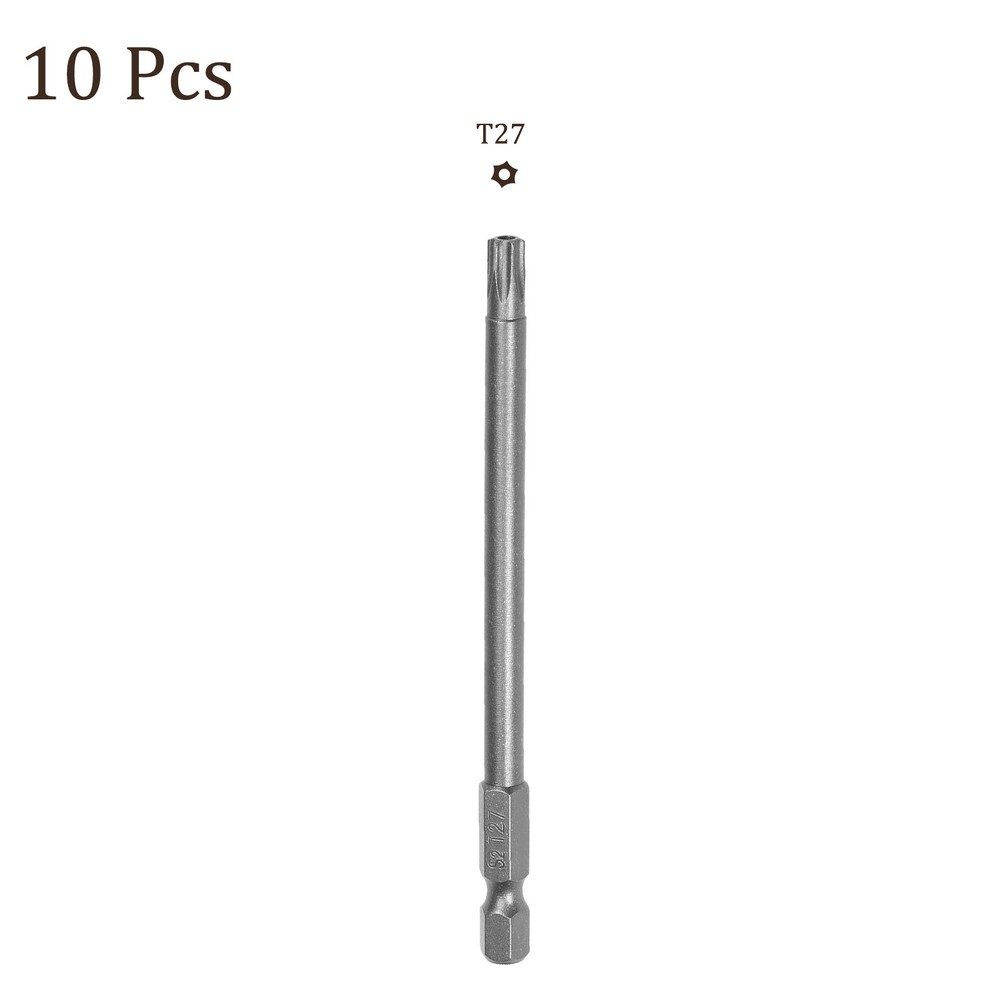 10pcs Torx Screwdriver Bit - [4 Inch x H1/4 x T27] Magnetic for Power Tool Use