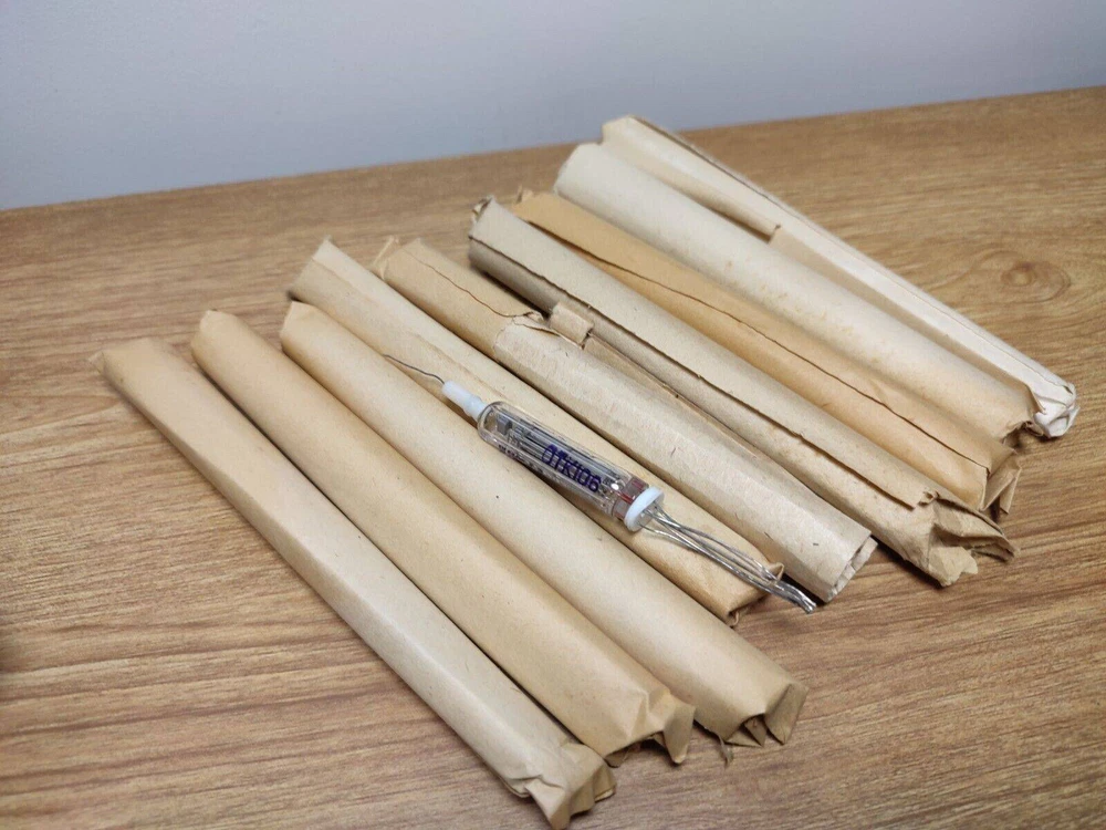 10 TUBES LOT . Same Date from 70's 10x 1P24B-V MINIATURE TUBE HF PENTODE MILITARY NOS Same date 10pcs in one lot NOS 1P24B-V HF miniature pentode tubes. Military equipment, hi-durable. Ultra-miniature high-frequency pentodes of the increased reliability. Designed to generate and amplify high frequency oscillations. Indirect oxide cathode. Works in any position. Available in a miniature glass design. Durability not less than 2000 h. Weight not more than 5.5 g. Technical characteristics and electrical parameters of the lamp 1P24B-B: Rated electrical characteristics: • Glow voltage, B 1.2 ± 0.12 • Incandescent current, mA 240 ± 24 • Anode voltage, B 150 • Voltage on the second grid, In 125 • Voltage on the first grid, B -14 • Current in the anode circuit, mA 18 • Current in the circuit of the second grid, mA no more than 1.5 • Steepness characteristics, mA / V 1.7 • Equivalent noise resistance, kOhm 5 Maximum permissible electrical parameters: • The highest voltage at the anode, V 300 • The highest voltage on the second grid, V 200 • The highest power dissipated at the anode, mW 4000 • The highest power dissipated on the second grid, mW 1500 • The highest current in the cathode circuit, mA 40 • The greatest resistance in the circuit of the first grid, mOhm 0.5 • Input capacitance, pF 7.15 • Output capacitance, pF 4 • Capacity through passage, pF 0.008 --------------------------------------------------------------------------------------------------------------------------------------------------- Import duties, taxes and chargers are not included in the item price or shipping charges. These charges are the buyer's responsibility. Please check with your country's customs office to determine what these additional costs will be prior to bidding buying. Combine shipping is accepted. If you need less or more items of this type, or if you need add some other items, contact us, and we will make special listing for you. Give us the list of items you need, and we'll do the rest. We have many other vacuum tubes for audio and other, ask us if you need any of them. Items are shipped from Lithuania Post (Europe Union) via expedited International tracking. Returns We guarantee you complete satisfaction with all our high quality products. If you receive an item you did not order, or if an item you ordered is received damaged or defective, we will refund you the price you paid for it or replace it with identical one. The item should come to the above address within 30 days after you received it. After 30 days we will no longer be responsible and the item won't be taken back. Item for returning must have the original tags and packing, otherwise it won't be accepted.