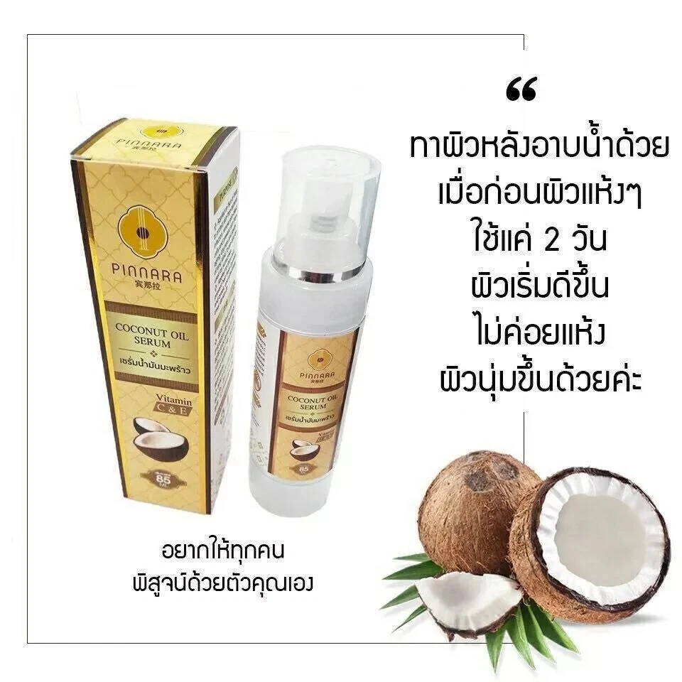 10x Pinnara Coconut Oil Serum Virgin Cold Press Vitamin C & E for Face Skin Hair ⭐ DHL EXPRESS (FAST SHIPPING 3-5 BUSINESS DAYS) ⭐ ⭐ EXCLUDING REMOTE AREA SURCHARGE ⭐ Product Details: Brand: Pinnara Condition: New with box Type: Serum Size: 85 ml Quantity: 10 Bottles Thailand Product FDA : 10-1-6010015975 Product Description: Authentic Pinnara Coconut Oil Serum Coconut Oil Serum A helper for beauty treatments from head to toe. Want to have beautiful skin. Coconut oil serum can help you whether it is used to nourish your face, body or hair. It's full for you in a complete set in one bottle. Guaranteed with instant results and absolutely safe does not cause harmful residues If you are looking for a helper to nourish from head to toe what it is. Coconut oil serum is the best solution for your needs. Solve all problems in one bottle with skin problems that bother women. Facial skin Helps the surface of the skin to be moisturized and radiant naturally. Reduce wrinkles, blemishes, freckles, dark spots fade. anti oxidant make you look younger Apply before makeup Helps makeup last longer Wipe off makeup, clean face without chemicals. Body Rejuvenate the skin after sun exposure to return to moisture. The skin is not damaged from sun damage and pollution. Make the skin white and clear. soft to the touch Nourishes heels, elbows, dry spots to be soft and smooth. Maintain and repair small to be strong Hair Helps to make hair soft, smooth, shiny, reduce the problem of split ends and fall. Hair care after perm, dyeing, coloring hair Healthy hair, smooth, straight, beautiful, not frizzy. Pinnara Coconut Oil Serum is a cold-pressed coconut oil serum using cyclomethicone as a base, which is what brings out all the extracts. Both coconut oil and vitamins are best absorbed into the skin. The outstanding feature of Pinnara serum is that it can be absorbed into the skin and hair quickly. It is also fortified with vitamins C and E to enhance the effectiveness of the serum to the next level. If it's coconut oil in the market It is difficult to absorb into the skin and has a rancid coconut smell. But our serum uses real essential oils from nature to help deodorize the smell of coconut in the middle with a light scent of essential oil instead. ***THE RESULT MAY VARY BY INDIVIDUAL HEALTH CONDITION.*** NOTE FOR BUYERS : INTERNATIONAL BUYERS PLEASE READ BEFORE PURCHASING. ⭐Customs Duty Fee & Import Taxes are not included in the item price or shipping cost. ⭐ Buyers may need to pay the customs fees & import taxes when your order value is higher than the threshold value of your country. Please check with your country's customs to understand the fee rate before ordering so you can estimate how much you need to pay. ⭐ Customs Duty Fee & Import Taxes are the buyer's responsibility and normally are collected by shipping carrier company to pay for your country's customs. ⭐ Cannot return the shipment because buyers don't want to pay the customs fees / taxes in any case. ⭐ EXPEDITED SHIPPING will take between 3 - 7 business days shipping time or it may take longer time depend on the location of your address and the customs clearance process. ⭐ REMOTE AREA OF DHL EXPRESS SERVICE will be additional charge, please ensure before placing order, otherwise we will have to ship via STANDARD POSTMAIL. ⭐ STANDARD SHIPPING will take between 5 - 10 business days shipping time or it may take longer time depend on the location of your address and the customs clearance process. ⭐ ECONOMY SHIPPING will take between 11 - 23 business days shipping time or it may take longer time depend on the location of your address and the customs clearance process. THANK YOU VERY MUCH FOR YOUR UNDERSTANDING. HAVE A NICE DAY :)