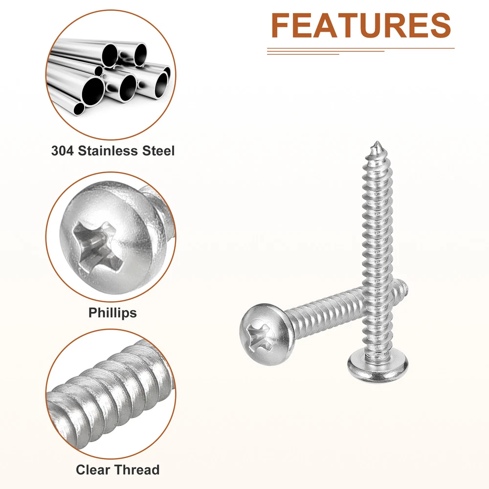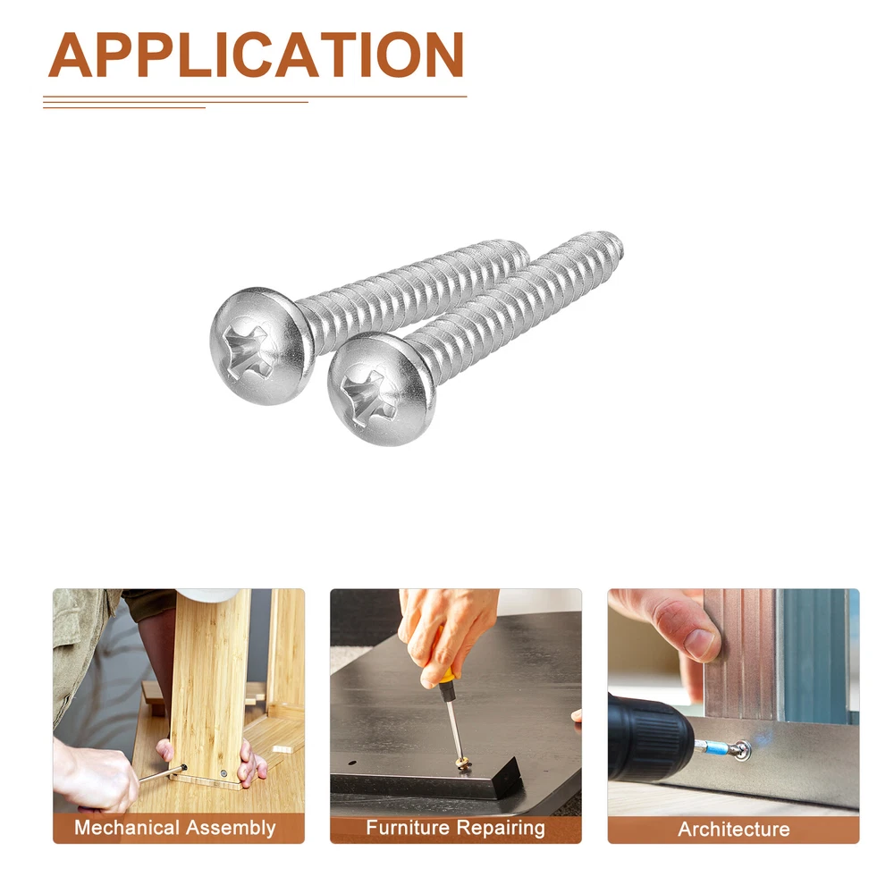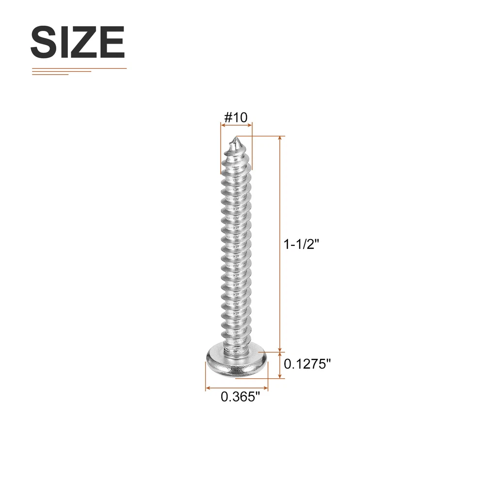 Document Product Details:Material: 304 Stainless SteelThread Dia: #10Thread Length: 1-1/2inchHead Dia: 0.365inchHead Thickness: 0.1275inchPackage Content: 100pcs x Phillips Pan Head Self-tapping ScrewsMaterial - The Phillips pan head self-tapping screw is made of 304 stainless steel, which has higher corrosion resistance and anti-rust effect than ordinary screws, longer service life, and is more solid.Feature - For different materials, cross grooves are easy to drill into, such as wood, spray-painted sheet metal, or other materials, and are good hardware fasteners. The self-tapping design allows faster screwing into hardwood, reducing cracking problems.Application - Sheet metal screws are widely used for furniture, household goods, electronics, communications, power products, floor fastening, industrial, construction, machinery, equipment maintenance, and other DIY projects.Notice- For harder materials, it is recommended to pre-drill with a drill to make it easier to insert the screws. This prevents the material from cracking or screws from slipping. #10x1-1/2" Silver Screws - 100Pack - 304 Stainless Steel Pan Head Phillips Screw Product Details: Material: 304 Stainless Steel Thread Dia: #10 Thread Length: 1-1/2inch Head Dia: 0.365inch Head Thickness: 0.1275inch Package Content: 100pcs x Phillips Pan Head Self-tapping Screws Material - The Phillips pan head self-tapping screw is made of 304 stainless steel, which has higher corrosion resistance and anti-rust effect than ordinary screws, longer service life, and is more solid. Feature - For different materials, cross grooves are easy to drill into, such as wood, spray-painted sheet metal, or other materials, and are good hardware fasteners. The self-tapping design allows faster screwing into hardwood, reducing cracking problems. Application - Sheet metal screws are widely used for furniture, household goods, electronics, communications, power products, floor fastening, industrial, construction, machinery, equipment maintenance, and other DIY projects. Notice - For harder materials, it is recommended to pre-drill with a drill to make it easier to insert the screws. This prevents the material from cracking or screws from slipping. Hot Item Payment 1.We accept eBay payment . 2.Payment must be received within 7 business days of auction closing. Shipping 1.We ship to your eBay or Paypal address. Please make sure your eBay and Paypal address is correct before you pay. 2.Items will be shipped within 1-3 business day when we received payment. 3.Delivery time depends on destination and other factors. Description Policy #10x1-1/2" Silver Screws - 100Pack - 304 Stainless Steel Pan Head Phillips Screw Product Details: Material: 304 Stainless Steel Thread Dia: #10 Thread Length: 1-1/2inch Head Dia: 0.365inch Head Thickness: 0.1275inch Package Content: 100pcs x Phillips Pan Head Self-tapping Screws Material - The Phillips pan head self-tapping screw is made of 304 stainless steel, which has higher corrosion resistance and anti-rust effect than ordinary screws, longer service life, and is more solid. Feature - For different materials, cross grooves are easy to drill into, such as wood, spray-painted sheet metal, or other materials, and are good hardware fasteners. The self-tapping design allows faster screwing into hardwood, reducing cracking problems. Application - Sheet metal screws are widely used for furniture, household goods, electronics, communications, power products, floor fastening, industrial, construction, machinery, equipment maintenance, and other DIY projects. Notice - For harder materials, it is recommended to pre-drill with a drill to make it easier to insert the screws. This prevents the material from cracking or screws from slipping. Hot Item Payment 1.We accept eBay payment . 2.Payment must be received within 7 business days of auction closing. Shipping 1.We ship to your eBay or Paypal address. Please make sure your eBay and Paypal address is correct before you pay. 2.Items will be shipped within 1-3 business day when we received payment. 3.Delivery time depends on destination and other factors.