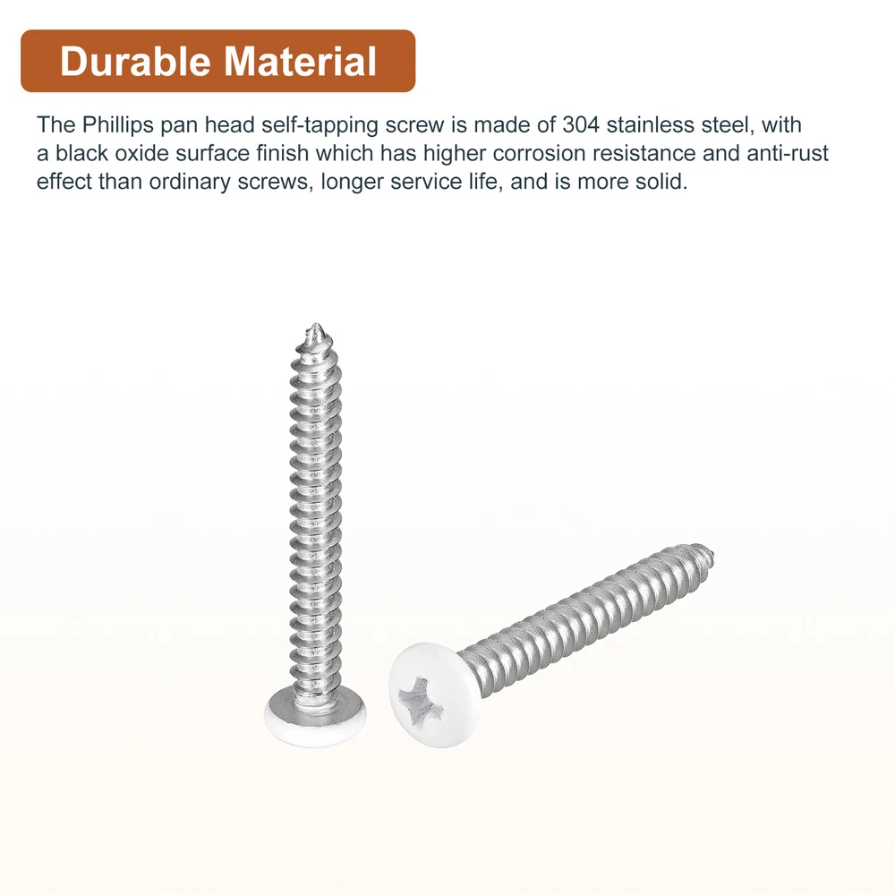 Document Product Details:Material: 304 Stainless SteelThread Dia: #10Thread Length: 1-1/2inchHead Dia: 0.365inchHead Thickness: 0.1275inchPackage Content: 50pcs x Phillips Pan Head Self-tapping ScrewsMaterial - The Phillips pan head self-tapping screw is made of 304 stainless steel, which has higher corrosion resistance and anti-rust effect than ordinary screws, longer service life, and is more solid.Feature - For different materials, cross grooves are easy to drill into, such as wood, spray-painted sheet metal, or other materials, and are good hardware fasteners. The self-tapping design allows faster screwing into hardwood, reducing cracking problems.Application - Sheet metal screws are widely used for furniture, household goods, electronics, communications, power products, floor fastening, industrial, construction, machinery, equipment maintenance, and other DIY projects.Notice- For harder materials, it is recommended to pre-drill with a drill to make it easier to insert the screws. This prevents the material from cracking or screws from slipping. #10x1-1/2" Silver Screws - 50Pack - 304 Stainless Steel Pan Head Phillips Screw Product Details: Material: 304 Stainless Steel Thread Dia: #10 Thread Length: 1-1/2inch Head Dia: 0.365inch Head Thickness: 0.1275inch Package Content: 50pcs x Phillips Pan Head Self-tapping Screws Material - The Phillips pan head self-tapping screw is made of 304 stainless steel, which has higher corrosion resistance and anti-rust effect than ordinary screws, longer service life, and is more solid. Feature - For different materials, cross grooves are easy to drill into, such as wood, spray-painted sheet metal, or other materials, and are good hardware fasteners. The self-tapping design allows faster screwing into hardwood, reducing cracking problems. Application - Sheet metal screws are widely used for furniture, household goods, electronics, communications, power products, floor fastening, industrial, construction, machinery, equipment maintenance, and other DIY projects. Notice - For harder materials, it is recommended to pre-drill with a drill to make it easier to insert the screws. This prevents the material from cracking or screws from slipping. Hot Item Payment 1.We accept eBay payment . 2.Payment must be received within 7 business days of auction closing. Shipping 1.We ship to your eBay or Paypal address. Please make sure your eBay and Paypal address is correct before you pay. 2.Items will be shipped within 1-3 business day when we received payment. 3.Delivery time depends on destination and other factors. Description Policy #10x1-1/2" Silver Screws - 50Pack - 304 Stainless Steel Pan Head Phillips Screw Product Details: Material: 304 Stainless Steel Thread Dia: #10 Thread Length: 1-1/2inch Head Dia: 0.365inch Head Thickness: 0.1275inch Package Content: 50pcs x Phillips Pan Head Self-tapping Screws Material - The Phillips pan head self-tapping screw is made of 304 stainless steel, which has higher corrosion resistance and anti-rust effect than ordinary screws, longer service life, and is more solid. Feature - For different materials, cross grooves are easy to drill into, such as wood, spray-painted sheet metal, or other materials, and are good hardware fasteners. The self-tapping design allows faster screwing into hardwood, reducing cracking problems. Application - Sheet metal screws are widely used for furniture, household goods, electronics, communications, power products, floor fastening, industrial, construction, machinery, equipment maintenance, and other DIY projects. Notice - For harder materials, it is recommended to pre-drill with a drill to make it easier to insert the screws. This prevents the material from cracking or screws from slipping. Hot Item Payment 1.We accept eBay payment . 2.Payment must be received within 7 business days of auction closing. Shipping 1.We ship to your eBay or Paypal address. Please make sure your eBay and Paypal address is correct before you pay. 2.Items will be shipped within 1-3 business day when we received payment. 3.Delivery time depends on destination and other factors.