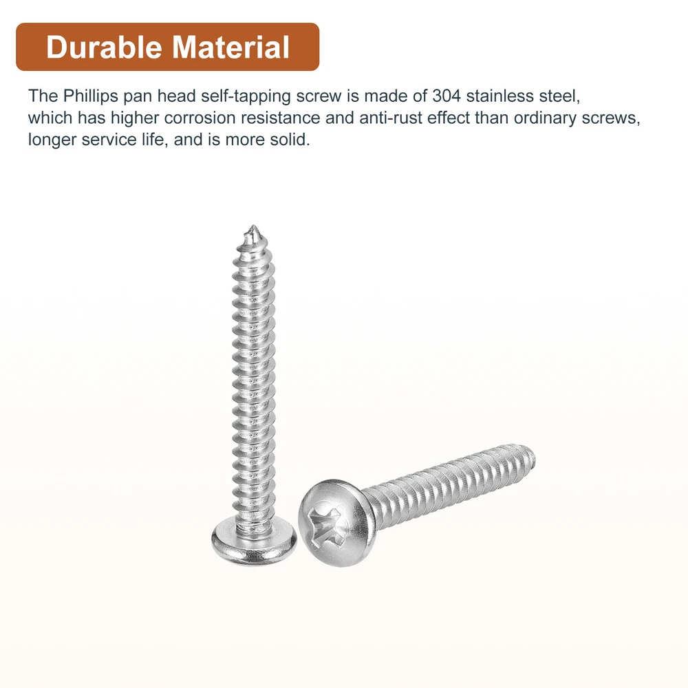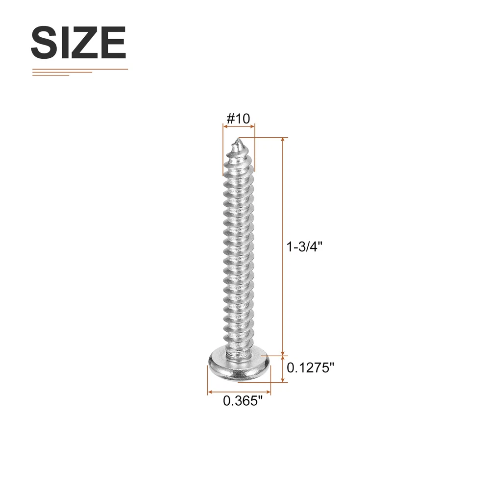 Document Product Details:Material: 304 Stainless SteelThread Dia: #10Thread Length: 1-3/4inchHead Dia: 0.365inchHead Thickness: 0.1275inchPackage Content: 100pcs x Phillips Pan Head Self-tapping ScrewsMaterial - The Phillips pan head self-tapping screw is made of 304 stainless steel, which has higher corrosion resistance and anti-rust effect than ordinary screws, longer service life, and is more solid.Feature - For different materials, cross grooves are easy to drill into, such as wood, spray-painted sheet metal, or other materials, and are good hardware fasteners. The self-tapping design allows faster screwing into hardwood, reducing cracking problems.Application - Sheet metal screws are widely used for furniture, household goods, electronics, communications, power products, floor fastening, industrial, construction, machinery, equipment maintenance, and other DIY projects.Notice- For harder materials, it is recommended to pre-drill with a drill to make it easier to insert the screws. This prevents the material from cracking or screws from slipping. #10x1-3/4" Silver Screws - 100Pack - 304 Stainless Steel Pan Head Phillips Screw Product Details: Material: 304 Stainless Steel Thread Dia: #10 Thread Length: 1-3/4inch Head Dia: 0.365inch Head Thickness: 0.1275inch Package Content: 100pcs x Phillips Pan Head Self-tapping Screws Material - The Phillips pan head self-tapping screw is made of 304 stainless steel, which has higher corrosion resistance and anti-rust effect than ordinary screws, longer service life, and is more solid. Feature - For different materials, cross grooves are easy to drill into, such as wood, spray-painted sheet metal, or other materials, and are good hardware fasteners. The self-tapping design allows faster screwing into hardwood, reducing cracking problems. Application - Sheet metal screws are widely used for furniture, household goods, electronics, communications, power products, floor fastening, industrial, construction, machinery, equipment maintenance, and other DIY projects. Notice - For harder materials, it is recommended to pre-drill with a drill to make it easier to insert the screws. This prevents the material from cracking or screws from slipping. Hot Item Payment 1.We accept eBay payment . 2.Payment must be received within 7 business days of auction closing. Shipping 1.We ship to your eBay or Paypal address. Please make sure your eBay and Paypal address is correct before you pay. 2.Items will be shipped within 1-3 business day when we received payment. 3.Delivery time depends on destination and other factors. Description Policy #10x1-3/4" Silver Screws - 100Pack - 304 Stainless Steel Pan Head Phillips Screw Product Details: Material: 304 Stainless Steel Thread Dia: #10 Thread Length: 1-3/4inch Head Dia: 0.365inch Head Thickness: 0.1275inch Package Content: 100pcs x Phillips Pan Head Self-tapping Screws Material - The Phillips pan head self-tapping screw is made of 304 stainless steel, which has higher corrosion resistance and anti-rust effect than ordinary screws, longer service life, and is more solid. Feature - For different materials, cross grooves are easy to drill into, such as wood, spray-painted sheet metal, or other materials, and are good hardware fasteners. The self-tapping design allows faster screwing into hardwood, reducing cracking problems. Application - Sheet metal screws are widely used for furniture, household goods, electronics, communications, power products, floor fastening, industrial, construction, machinery, equipment maintenance, and other DIY projects. Notice - For harder materials, it is recommended to pre-drill with a drill to make it easier to insert the screws. This prevents the material from cracking or screws from slipping. Hot Item Payment 1.We accept eBay payment . 2.Payment must be received within 7 business days of auction closing. Shipping 1.We ship to your eBay or Paypal address. Please make sure your eBay and Paypal address is correct before you pay. 2.Items will be shipped within 1-3 business day when we received payment. 3.Delivery time depends on destination and other factors.