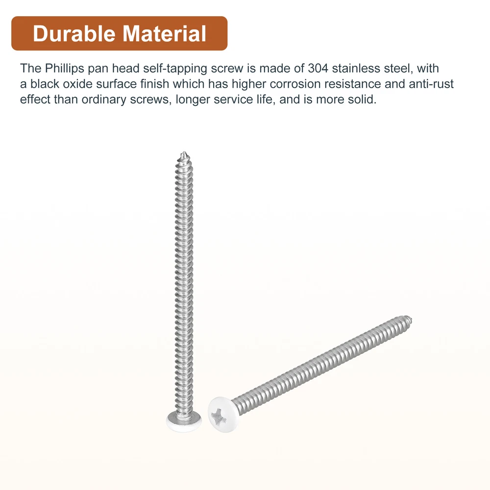 Document Product Details:Material: 304 Stainless SteelThread Dia: #10Thread Length: 3inchHead Dia: 0.365inchHead Thickness: 0.1275inchPackage Content: 50pcs x Phillips Pan Head Self-tapping ScrewsMaterial - The Phillips pan head self-tapping screw is made of 304 stainless steel, which has higher corrosion resistance and anti-rust effect than ordinary screws, longer service life, and is more solid.Feature - For different materials, cross grooves are easy to drill into, such as wood, spray-painted sheet metal, or other materials, and are good hardware fasteners. The self-tapping design allows faster screwing into hardwood, reducing cracking problems.Application - Sheet metal screws are widely used for furniture, household goods, electronics, communications, power products, floor fastening, industrial, construction, machinery, equipment maintenance, and other DIY projects.Notice- For harder materials, it is recommended to pre-drill with a drill to make it easier to insert the screws. This prevents the material from cracking or screws from slipping. #10x3" Silver Screws - 50Pack - 304 Stainless Steel Pan Head Phillips Screw Product Details: Material: 304 Stainless Steel Thread Dia: #10 Thread Length: 3inch Head Dia: 0.365inch Head Thickness: 0.1275inch Package Content: 50pcs x Phillips Pan Head Self-tapping Screws Material - The Phillips pan head self-tapping screw is made of 304 stainless steel, which has higher corrosion resistance and anti-rust effect than ordinary screws, longer service life, and is more solid. Feature - For different materials, cross grooves are easy to drill into, such as wood, spray-painted sheet metal, or other materials, and are good hardware fasteners. The self-tapping design allows faster screwing into hardwood, reducing cracking problems. Application - Sheet metal screws are widely used for furniture, household goods, electronics, communications, power products, floor fastening, industrial, construction, machinery, equipment maintenance, and other DIY projects. Notice - For harder materials, it is recommended to pre-drill with a drill to make it easier to insert the screws. This prevents the material from cracking or screws from slipping. Hot Item Payment 1.We accept eBay payment . 2.Payment must be received within 7 business days of auction closing. Shipping 1.We ship to your eBay or Paypal address. Please make sure your eBay and Paypal address is correct before you pay. 2.Items will be shipped within 1-3 business day when we received payment. 3.Delivery time depends on destination and other factors. Description Policy #10x3" Silver Screws - 50Pack - 304 Stainless Steel Pan Head Phillips Screw Product Details: Material: 304 Stainless Steel Thread Dia: #10 Thread Length: 3inch Head Dia: 0.365inch Head Thickness: 0.1275inch Package Content: 50pcs x Phillips Pan Head Self-tapping Screws Material - The Phillips pan head self-tapping screw is made of 304 stainless steel, which has higher corrosion resistance and anti-rust effect than ordinary screws, longer service life, and is more solid. Feature - For different materials, cross grooves are easy to drill into, such as wood, spray-painted sheet metal, or other materials, and are good hardware fasteners. The self-tapping design allows faster screwing into hardwood, reducing cracking problems. Application - Sheet metal screws are widely used for furniture, household goods, electronics, communications, power products, floor fastening, industrial, construction, machinery, equipment maintenance, and other DIY projects. Notice - For harder materials, it is recommended to pre-drill with a drill to make it easier to insert the screws. This prevents the material from cracking or screws from slipping. Hot Item Payment 1.We accept eBay payment . 2.Payment must be received within 7 business days of auction closing. Shipping 1.We ship to your eBay or Paypal address. Please make sure your eBay and Paypal address is correct before you pay. 2.Items will be shipped within 1-3 business day when we received payment. 3.Delivery time depends on destination and other factors.
