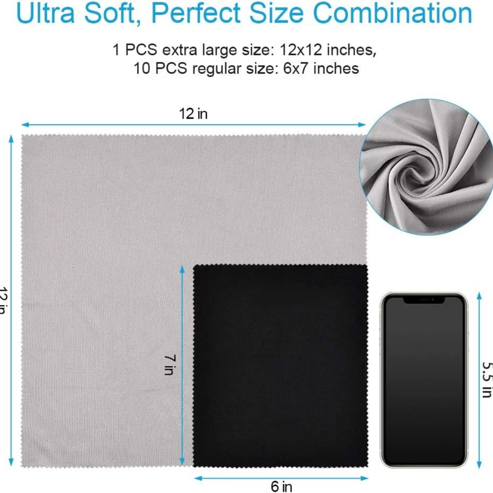 11PCS ParZary Eyeglass Cleaning Tissues & Cloths, Premium Soft Glasses Cleaner,1PCS Oversize (12"x12") + 10PCS (6"x7") Screen Lens Cleaner, Great for Electronics, Ipad, Laptop, Individual Wrapped 【Untra Soft, Perfect Size Combination】ParZary eyeglasses cleaning Tissues & cloths are made of premium soft materials. Including: 12 x 12 inches(1pcs oversize) + 6 x 7 inches(10pcs regular size). Different sizes can be used to clean different size screen surfaces. 【Widely Used】Effective to wipe off the dust, smudges,streaks and fingerprints of any screen surfaces,such as eyeglasses,Cell Phones,Ipad,laptop,camera,tablets,mirror, watch,glass and most electronics.etc. 【Reusable】ParZary cleaning cloth can be used for mutiple times. If you wash them gently with water, and then air natural before using for the first time, the effect will be better. 【Three Colors, Individual Wrapped】We provide three colors(grey,black,blue) of lens cloth. Different colors for different useage or different people. And each glasses cleaning cloth is individual wrapped.You can put them in different places. 【Package & Friendly Customer Service】Package including: 1pcs grey extra large size microfiber cleaning cloth, 5pcs black & 5pcs blue regular size cleaning cloths Product Description Eyeglass Cleaning Cloths for Tablet Eyeglass Cleaning Cloths for Cell Phone Eyeglass Cleaning Cloths for Laptop Warm Tips Please wash them gently with water and then dry naturally before using for the first time, the effect will be better. Important information Legal Disclaimer Statements regarding dietary supplements have not been evaluated by the FDA and are not intended to diagnose, treat, cure, or prevent any disease or health condition.
