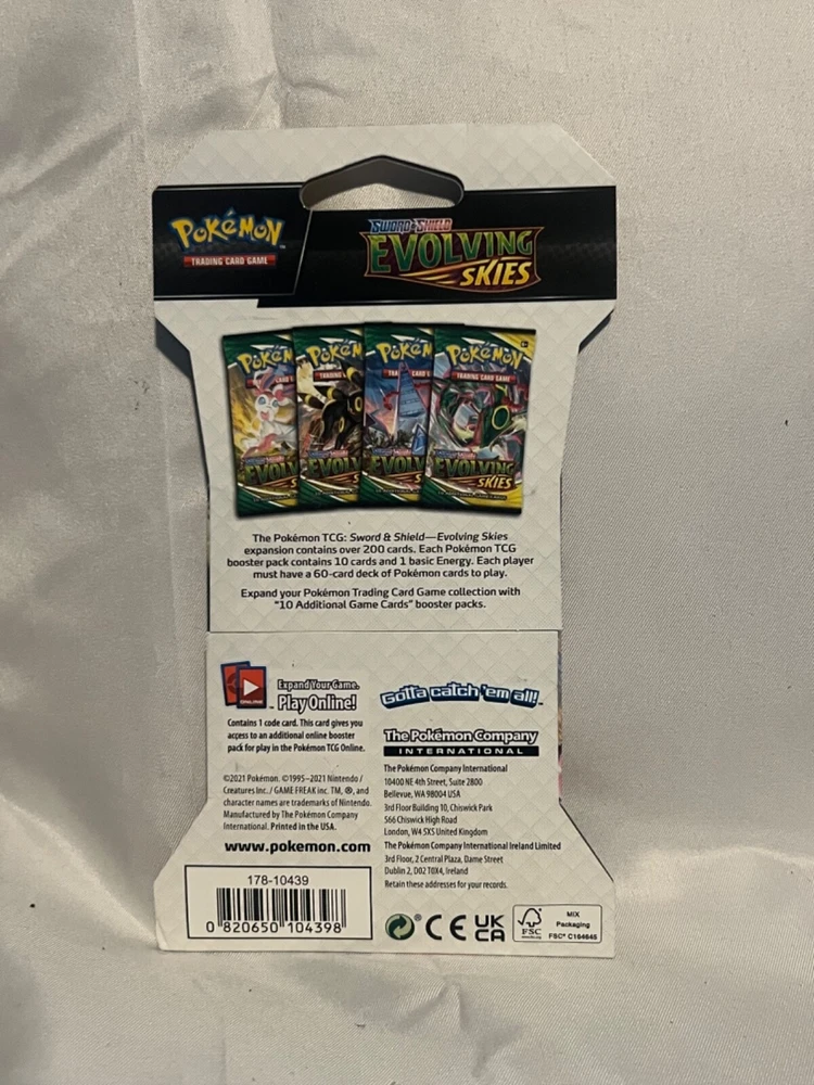 Comes with 10 Silver Tempest sleeved booster packs. These are known as “cracked packs” because the pull rates are so good. Also 1 Evolving Skies pack for a shot at the “Moonbreon”