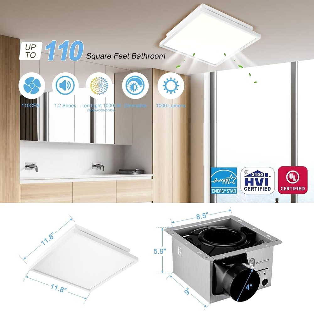 Bathroom Exhaust Fan with Light 110 CFM Quiet LED 3CCT 1000lm Energy Star ‹ › ‹ › ‹ › ‹ › ‹ › ‹ › ‹ › ‹ › ‹ › Bathroom Exhaust Fan with Light Upgrade your bathroom experience with our cutting-edge Bathroom Exhaust Fan with Light – engineered to enhance air circulation with whisper-quiet operation while providing stunning illumination. Key Features: Whisper-Quiet Operation: Operates at only 1.2 sones, ensuring a tranquil bathroom environment. Powerful Air Movement: Efficiently ventilates bathrooms up to 115 Sq. Ft. with an impressive 110 CFM rating. LED Light Integrated Design: A stylish white grille elegantly combines LED lighting and the exhaust function, enhancing aesthetics while optimizing space. Impressive Brightness: Emits 1000lm of bright light – perfect for illuminating your entire bathroom. Adjustable Color Temperature: Customize your ambiance with 3 CCT options (3000K Warm White, 4000K Natural White, 5000K Cool White) adjustable via a simple switch; turn the switch off and on to select your preferred hue. Diverse Installation Options: Ideal for both new and existing constructions; features a seamless installation process that negates attic access requirements. Durable & Corrosion-Resistant: Crafted from galvanized steel, designed for longevity with a low-profile white grill cover for a modern touch. Performance Certified: Energy Star qualified and & HVI certified for reliability and energy efficiency. Safe for Shower Use: Acceptable for use over bathtubs or showers when properly installed on a GFCI-protected circuit. Benefits: Transform your bathroom into a serene and stylish sanctuary. Effortlessly maintain a fresh atmosphere while enjoying whisper-quiet comfort. Customize your lighting for any occasion or mood. Experience long-lasting performance with minimal maintenance required. Why Choose Our Bathroom Exhaust Fan? Elevate your bathroom experience with a combination of functionality, style, and energy efficiency. Our Bathroom Exhaust Fan with Light is not merely a functional unit; it's an investment in your home's comfort and ambiance. With easy installation options, a sleek design, and powerful performance that respects your peace, this fan is set to become a statement piece in your home. Don’t compromise on quality—choose our Bathroom Exhaust Fan with Light and redefine the way you experience your personal space! Order yours today. Shipping Free & Fast Shipping - We offer free shipping to most of the USA with a normal delivery time of 3-7 days. However, due to the current situation, additional delivery time (up to 3 weeks) may be required for some items. Alternative Carriers - We may use alternative carriers (e.g. USPS, FedEx, UPS, etc.) to ensure your package arrives safely and on time. Due to the use of multiple carriers, we are unable to provide a tracking number automatically. Handling Time - Orders are processed and shipped within 1-2 business days of receiving cleared payment. Shipping Restrictions - Shipping to Alaska, Hawaii, Puerto Rico, Guam, and other US territories may incur shipping charges or delivery restrictions. Please contact us before ordering, or your order can be refunded/cancelled. State Restrictions - There may be restrictions based on your state of purchase. For example, certain items may not be shipped to California due to state regulations. Contact for Tracking Updates - If you require tracking updates or have any concerns about the delivery of your order, please feel free to contact us, and we will be happy to assist you. Return 30-Day Hassle-Free Returns - We want you to be completely satisfied with your purchase. If you are not, you can return the item within 30 days of receiving it for a full refund or exchange. Easy Return Process - To start a return, simply contact us and we will provide you with a prepaid return shipping label and detailed instructions. Restocking Fee - There are no restocking fees for returns. However, the buyer is responsible for return shipping costs if the return is not due to a seller's error. Refund Processing Time - Refunds will be processed within 5 business days of receiving the returned item in its condition. Payment We accept all major credit cards, PayPal, and Apple Pay for your convenience. Your payment information is secure and encrypted to ensure a safe and seamless transaction. Please complete your payment within 3 days of purchase to avoid any delays in shipping. Feedback Your feedback is extremely important to us. We strive to provide the best products and customer service possible. If you are satisfied with your purchase, please take a moment to leave us a positive review. If you have any concerns or issues with your order, please contact us before leaving negative feedback. We are committed to resolving any problems and ensuring your satisfaction. Contact Us If you have any questions or concerns, please feel free to out to our customer support team. You can contact us through the eBay messaging system. We are available Monday to Friday, 9:00 am to 5:00 pm EST, and we will do our best to respond to your inquiry within 24 hours. Buy it now and enjoy a pleasant shopping experience! Unit Quantity: 1 Material: Galvanized Steel,Steel Features: LED Light,Dimmable,Energy Star Qualified,Quiet Operation (1.2 Sone),Adjustable Brightness Room: Bathroom Mounting: Ceiling Power Source: Electric,AC Control Style: Touch Type: Exhaust Fan Ventilation System: Exhaust Fan Color: White Item Depth: 8.5 in Item Height: 6 Inches Voltage: 120 V Finish: Matte Power: 27 W Operating Sound Rating: 1.2 Sone