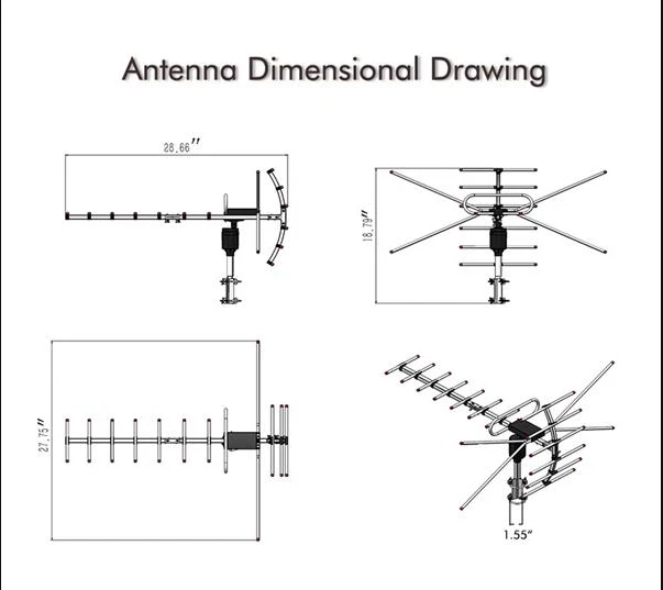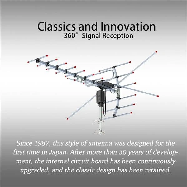 Introductions: Are you intending to find a high quality open antenna? You are in the right place. This Leadzm TA-001 360°Rotation UV 45-230MHz/470-860MHz 15-22dB Outdoorn Antenna is made of high quality plastic & aluminum material, durable and practical in daily use. With the light weight and compact design, it is easy for you to operate. And it supports 360°rotation which will provide a good signal. With low power consumption and environment friendly design, it is worth to buy it! So come and order it now! Features: 1. Made of high quality plastic & aluminum material, durable and practical in daily use 2. With the light weight and compact design, it is easy for you to operate 3. It supports 360°rotation which will provide a good signal 4. With low power consumption and environment friendly design, it is worth to buy it 5. Reception range is 110 miles Specifications: 1.Wire Length: 12m 2. Frequency: VHF:45-230MHz / UHF:470-860MHz 3. Gain: 15dBi/22dBi 4. Impedance: 75 Ω 5. Standing Wave Radio: <2.5 6. Channel: UHF21-69 for Digital Signals 7. Reception Range: 110 Miles 8. Color: Black 9. Dimensions: (28.66 x 27.75 x 18.79)" 10. Material: Plastic & Aluminum Package Includes: 1 x Antenna 1 x Wire 12m 1 x Remote Control Set 1 x Manual