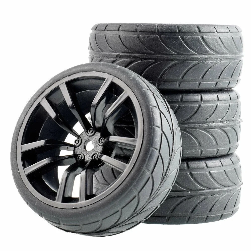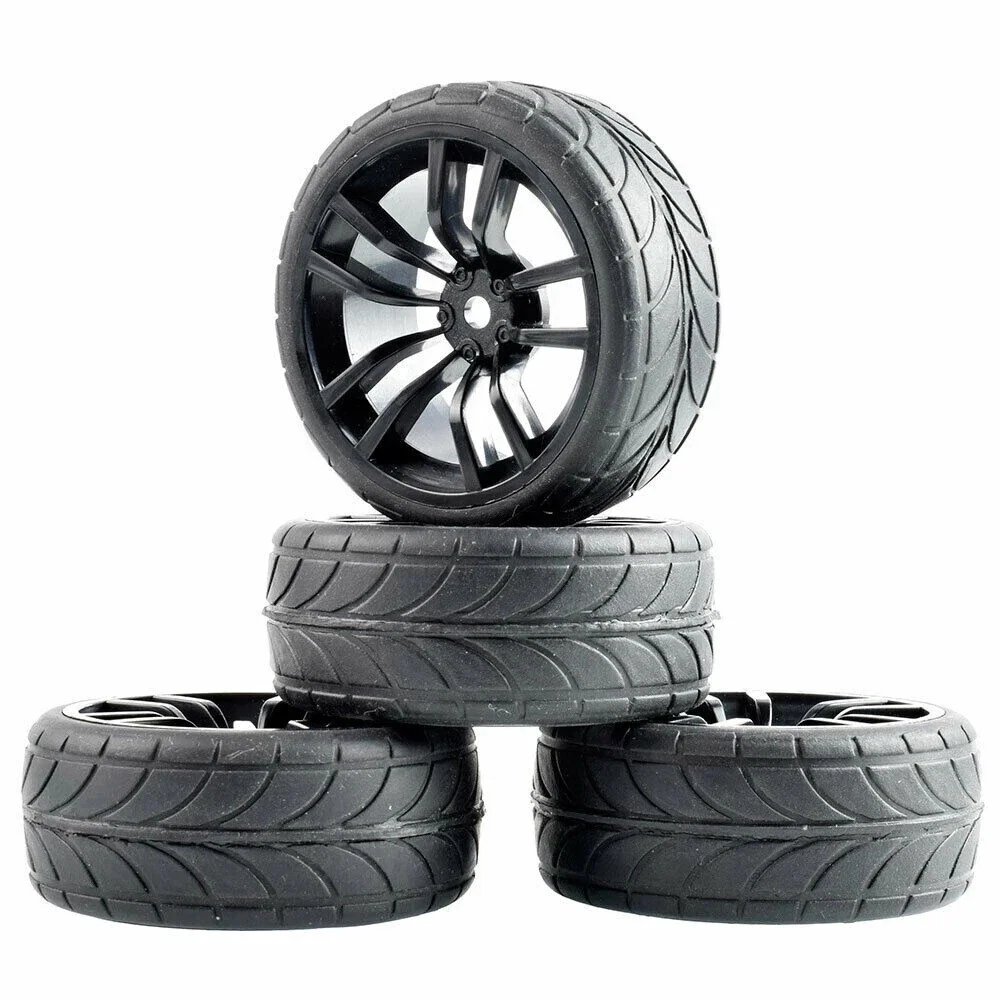 1/10 On road Rc Car Wheels Tires Set For Kyosho Nitro 4tec 4-tec 2.0 HSP Tamiya 100% Brand New Plastic Wheel / Rubber Tires Rubber Tires Diameter: 64mm / Width: 26mm Wheel Diameter: 52mm / Width: 26mm Wheel Hex Drive: 12mm 4xWheel and 4xTires Complete, Insert Sponge NOTICE: The wheels and tires are not glued together and must be glued before use. Please carefully check the tire size before purchase, whether it is the same as your model tire size, and confirm it again before payment, so as not to return the refund, thank you, wish you a happy shopping.