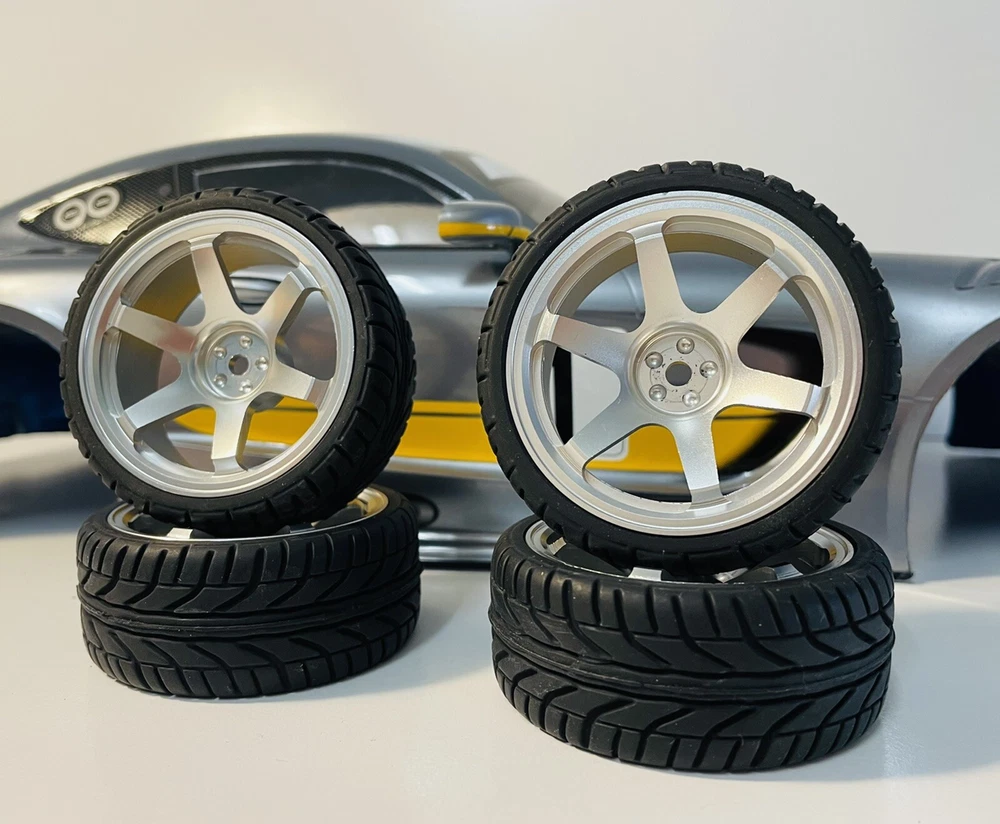 Set of four 1/10 On-Road Touring Car metal wheels and Tyres 26*64MM 12MM Hex. Metal Wheel, Rubber Tyre 702 for HSP Tamiya HPI Kyosho 94122 94123 D3 D4 TT-02 TT-01 Look absolutely fantastic! These metal wheels would look great on any build and bring an extra element of reality. Check out our Ebay store for other rc and hobby related items. Ask us to combine postage and save money. We try and post items same day where possible. If you need it faster, please choose the express post option. Thank you for shopping with RC Heaven.