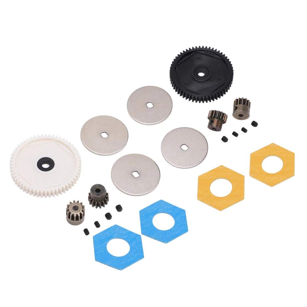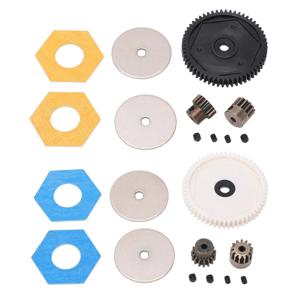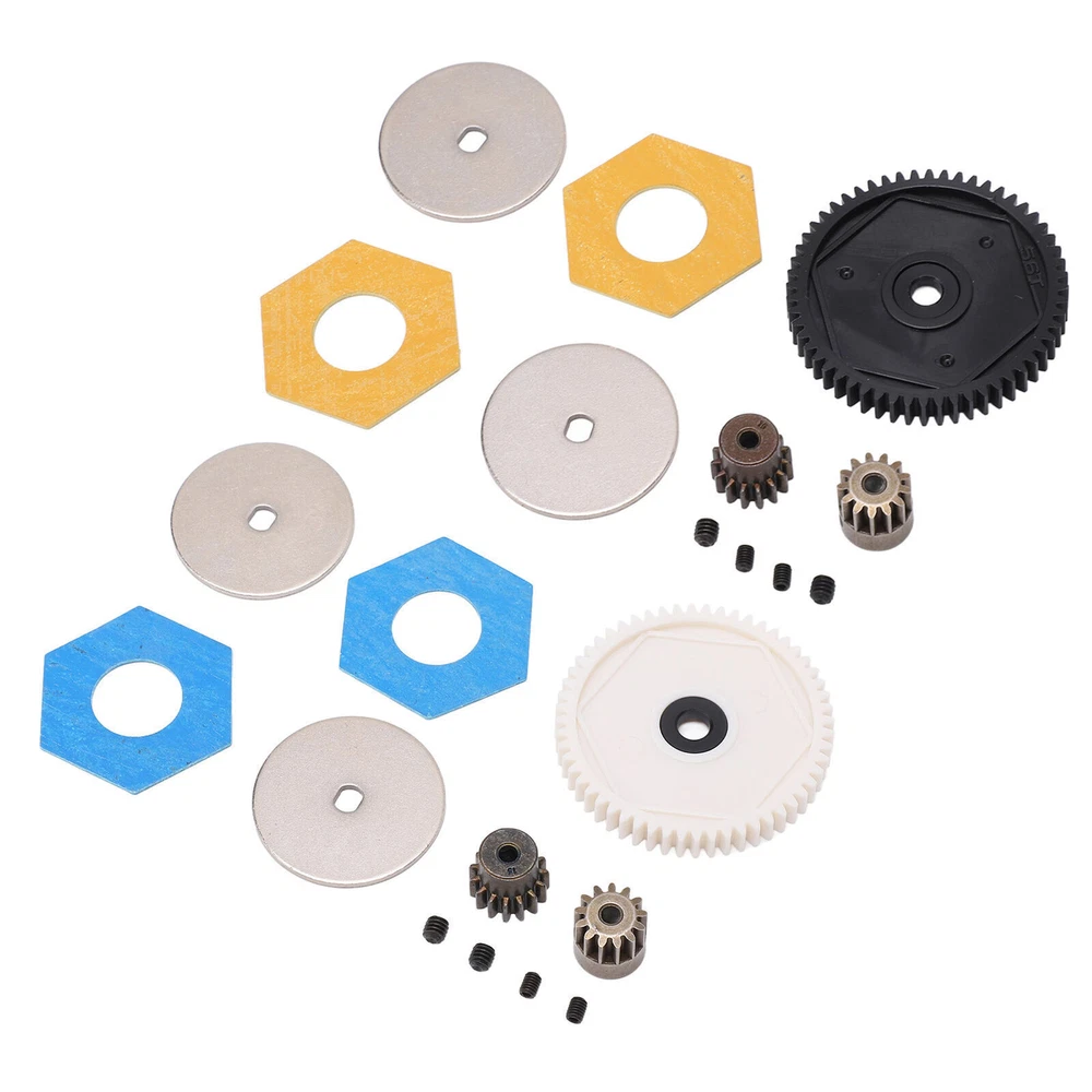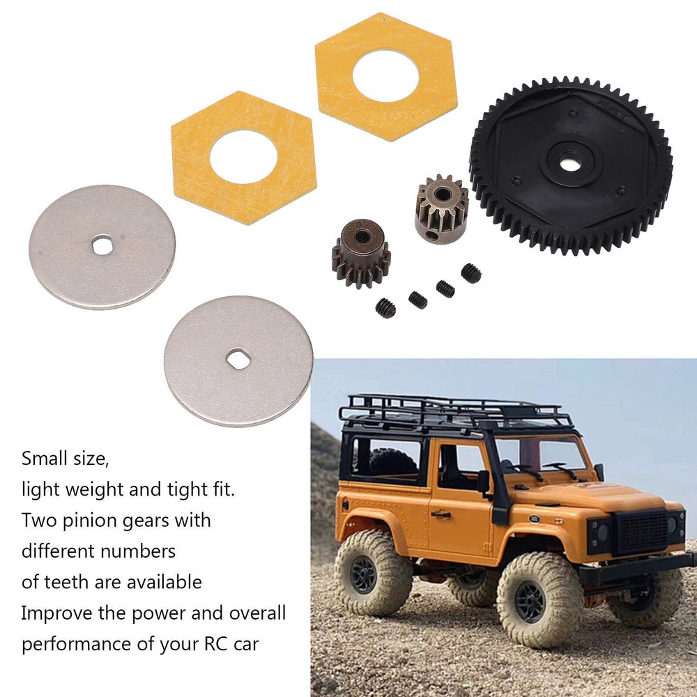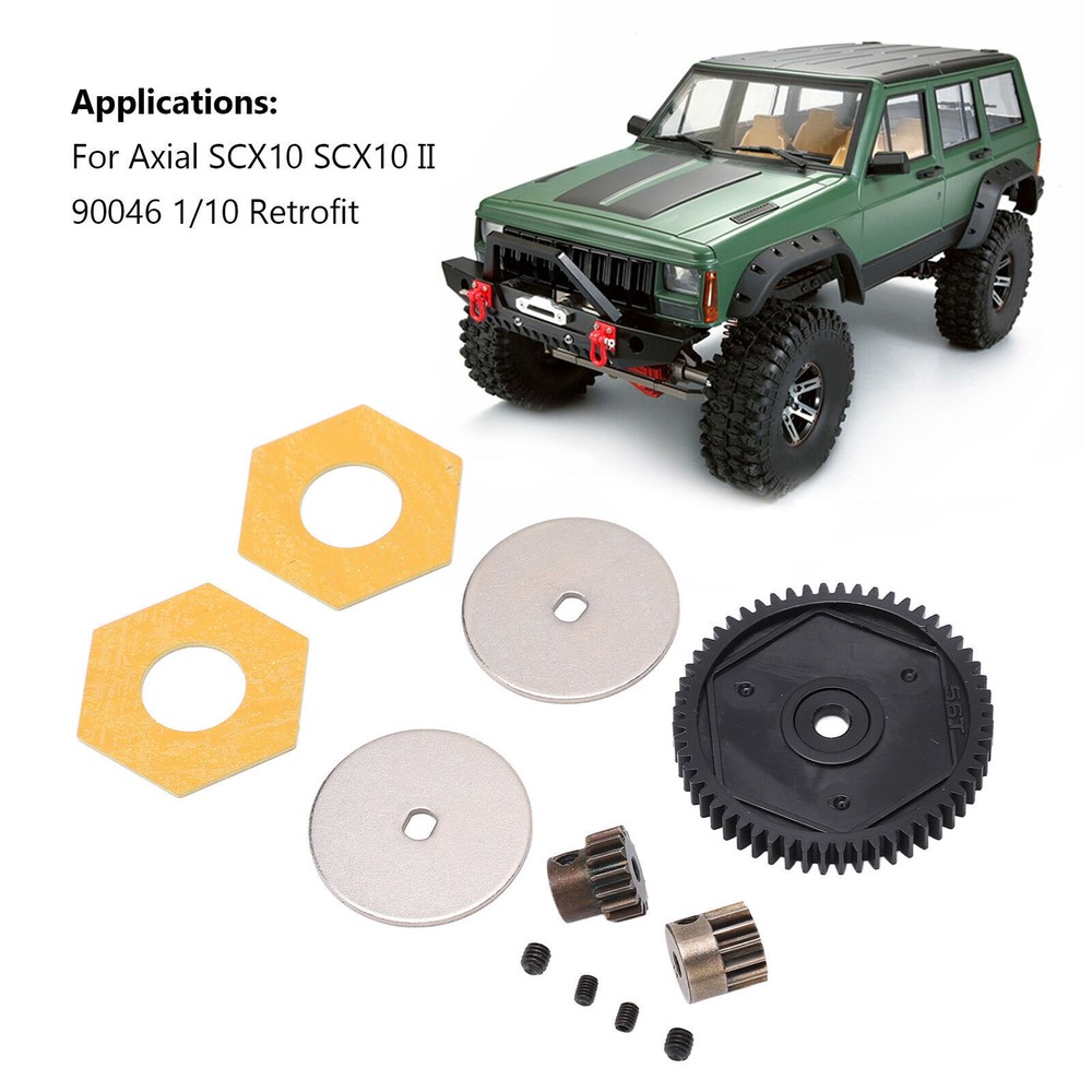 Feature: 1. Durable Material: Made of premium plastic and steel materials, it has strong wear resistance, corrosion resistance, good performance and long service life. 2. With Machine Screws: Good processing makes the gear roll smoothly, with its own fixing screw holes, easy installation, simple operation, and machine screws are provided in the package. 3. Improve Performance: Small in size and light in weight, it can give full play to the best performance, improve the power and overall performance of the remote control car, and work closely together. 4. Applicable Models: The gears set has the ability to withstand high forces, giving your RC car a good drive performance. Fit for Axial SCX10 SCX10 II 90046 1/10 retrofit. 5. 2 Pinion Gears: Provides two pinion gears with different numbers of teeth, allowing you to have more choices in the gear box ratio and making your RC car perform better. Specification: Item Type: RC Accessories Material: Plastic, steel Gross Weight: 46g / 1.6oz Gear T Number: 56T, 15T, 13T Large Gear Diameter: 47mm / 1.85in Large Gear Aperture: 5mm / 0.20in 13T Size: 12x12mm / 0.47x0.47in 15T Size: 13x12mm / 0.51x0.47in Motor Gear Aperture: 3.175mm / 0.1in Applications: For Axial SCX10 SCX10 II 90046 1/10 Retrofit Package List: 1 x Gear Box 56T Large Gear 1 x 13T Motor Gear 1 x 15T Motor Gear 2 x Spacers 2 x Accessories 4 x Machine Screw Note: 1. Due to manual measurement, 1‑3mm error is allowed, thank you! 2. Due to differences between different monitors, the picture may not reflect the actual color of the project.