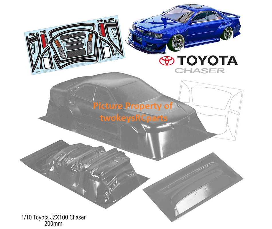 AS ALWAYS - before purchase - check the specs given below to ensure this body shell is suitable for your needs. CLEAR UNPAINTED LEXAN BODY SHELL to suit a 1:10th scale race, drift or touring car. Body shell is as per pics #3 ~ #8 --Toyota JZX100 Chaser- Supplied with decals pics #9. Also supplied are body enchacement parts, double sided tape and mounting hardware -see pic #8. Instructions to aid assembly are also included -see pic #10. Pic #1 is for reference only- to show the general shape of the body and as an aid for decal placement. So please check the pics out and read the ad. Body shell is for a chassis (wheelbase) of 258 mm and a wheel track of 200mm.( manufacturers specs quoted) Item is new. Body is well finished and made of strong Lexan. Shells are covered with clear spray film. This item will be sent in a box (for safety) not a bag. Body shell may be trimmed for postage purposes so excess plastic may be less than shown in pics. Part # 100 Check out other great bargains in my E b a Y store , including more body shells. I am not a "drop shipper", all products are in stock in Australia being sold by an Australian seller POSTAGE - AUSTRALIAN CUSTOMERS . If you want to use the Express Post service please buy one item and select Express post, then buy any other items you want with regular post (the default option). All items will be sent together via Express Post service……… INTERNATIONAL CUSTOMERS . For post quotes for multi item orders please message me. Thanks. All duties and taxes (if applicable) are the responsibility of the buyer. If you have any questions or special requests regarding this please feel free to message me. Manufacturers are constantly improving products and changes are made without prior notice. This means that changes can be made to products (including slight colour changes) from time to time. These changes in no way constitute any intent to change the basic description of an item, nor do they constitute a reason for an items return or warranty replacement. Return Policy: Any returns will be handled as per Ebay’s return policy. Returned items must be new, unopened and undamaged. Opened returns will attract a 50% “reduced value” fee. Any unrecoverable costs and fees incurred (by me) will be deducted from any refund issued. Warranty: items have a 30 day warranty, except drift wheels – which is ‘dead on arrival’ only. Warranty doesn’t cover crash damage, poor maintenance, misuse or incorrect assembly. Warranty covers sold items only.