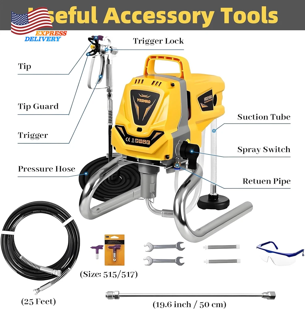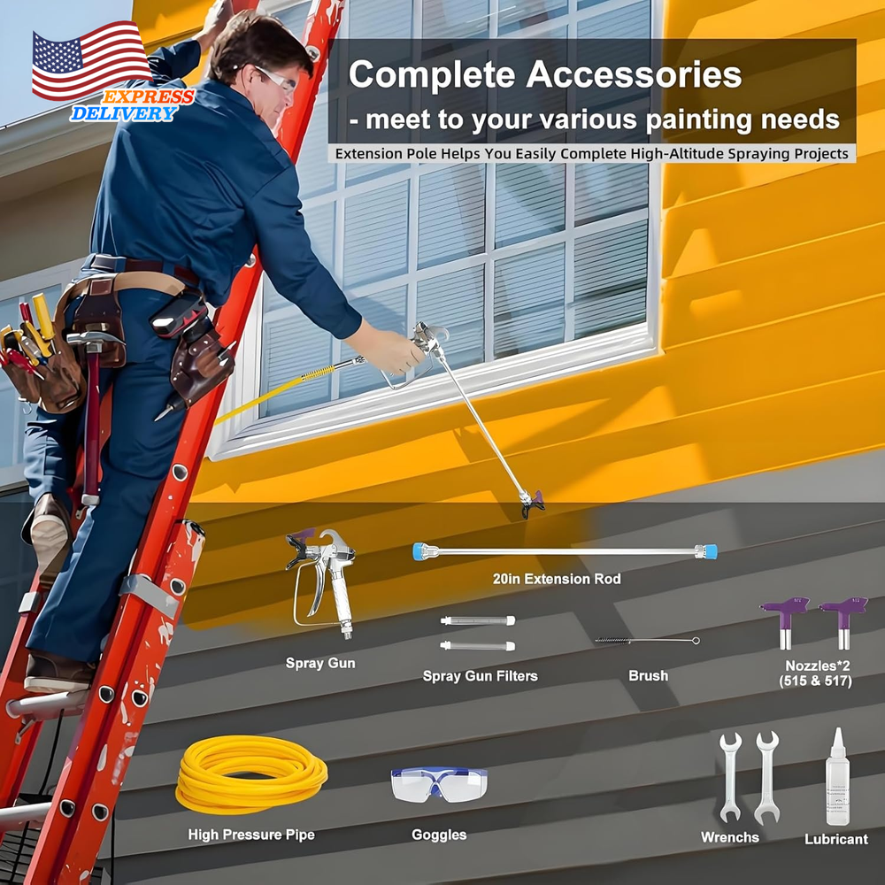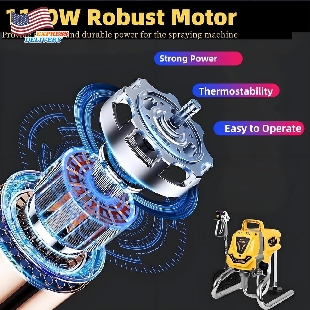 Store New Arrivals Add to Favorite View Feedback Contact 1100W Airless Paint Sprayer for House Paint 3300 Psi Low Overspray DIY Handyman Description Item model number AUS0012 Style airless paint sprayer Power Source ac Maximum Pressure 3300 Pound per Square Inch Color Airless Paint Sprayer Product Dimensions 15.35 x 15.35 x 15.35 inches Material Stainless Steel Country of Origin China Hose Length 25 Feet Tank Volume 5 Gallons Item Weight 20.8 pounds Recommended Uses For Product Painting Included Components Nozzle Adaptor, Instruction Guide, Nozzle, Strainer Paint Like a Pro - Ditch the rollers. Our 1200W airless paint sprayer delivers 5X faster coverage with ultra-fine, even coats—no bubbles, no wasted paint. With 3300 PSI power, it delivers smooth, professional finishes on walls, fences, furniture, and more. Perfect for walls, fences, or furniture, it handles oil & water-based paints straight from the can. Just point, spray, and transform any space in minutes! Power Through Any Project – Big or Small.From interior walls to outdoor decks, this 1100W beast handles it all. Tackle 10-gallon jobs effortlessly with 3300 PSI power and a 25FT hose—no ladder needed thanks to the 20"extension rod. The reversible nozzle cuts overspray by 55%. Ideal for DIYers & pros painting houses, decks, or furniture —spray up to 300 gallons/year with ease! Spray Smarter – The DIY Game-Changer.Why waste time rolling when you can spray 5X faster?? This airless Sprayer saves hours of work, and leaves a smooth, pro finish.The high-polymer seals & anti-clog nozzle ensure even, bubble-free coats every time. Plus, the included goggles & wrenches keep you safe and leak-free. Ideal for oil, latex, and stains—transform any surface in minutes! Everything You Need in One Box – Start Painting Today.Get professional-grade tools ! The kit includes a spray , extension rod, wrenches, tip cleaners, filters, safety goggles, and a manual—everything for smooth, efficient painting. Perfect for homeowners, woodworkers, and DIY enthusiasts craving studio-quality finishes. Clean Up in a Flash – No More Clogged Nozzles.Hate post-painting cleanup? Our detachable design & included cleaners make maintenance quick & hassle-free. Just rinse, wipe, and store—no stuck paint or downtime. The 7.5m high-pressure hose & spare filters mean you’re always ready for the next project! Perfect Gift for Handy Dads & DIY- Surprise him with the ultimate Father’s Day upgrade! Whether he’s refreshing the garage, deck, or furniture, this lightweight, powerful sprayer makes painting effortless and fun. Includes safety goggles, wrenches & cleaners—everything to paint safely and leak-free! 📣NOTE: PLEASE CORRECT ALL THE PISTON AND TUBE AND INSERT IT INTO THE CORRESPONDING POSITION IN DEPTH TO ENSURE THE LOCK, SO AS TO AVOID THE INFLUENCE OF THE SEAL AND THE LEAK.Please be sure to read the instruction manual carefully before using.If any issues arise, don't hesitate to reach out. We're committed to finding solutions quickly, saving you from the stress of returns or exchanges. Product Description Airless paint sprayer has a 1100W motor that delivers a flow rate of 1.2L/min.It makes painting so much faster and easier on the body compared to brushes and rollers. The Airless Paint Sprayer operates at a high pressure of 3300PSI for rapid coverage of large areas.It has a maximum flow rate of 0.24 GPM and includes a standard 515/517 nozzle. [SPRAY HOSE] 25 Foot long for easy reach across painting projects Non-kink hose Cold does not harden [TWO USE METHODS] Just press the switch, it has a direct nozzle and a 20-inch extension rod, which is convenient for you to spray at close and long distances. 1 Start Spraying 2 How to USE 3 How to PRIME 4 How to CLEAN 5 KNOW YOUR CONTROLS User-friendly Design & WIDE APPLICATION TERIOR HOUSE Professional remodeling,recommend this machine to anyone that is serious about their project but don't want to over spend on equipment that they might not use everyday Entire House This sprayer enough for DIYers looking to take their painting skills to the next level. Garage You'll be able to complete more painting projects around your home with this great paint sprayer! Cedar Fence There is little need for any touch-ups with a brush after the main spraying is complete. Deck Refinish old furniture. Wall spraying Even though you not a professional painter, you also able to achieve a smooth, consistent finish on the walls. It caters to home renovators, woodworking enthusiasts, construction contractors, and DIY enthusiasts. What necessary steps should I do before using it? 1.Wear the protective equipment, 2.Read the instructions carefully, and install the machine correctly. 3.Be sure to do purging and priming the Sprayer before use, and perform air and lubricating oil. How to ensure uniform spraying? Keep the spray perpendicular to the surface and about 10 to 12 inches away. Otherwise one end of the pattern will be thicker than the other. How often should I clean my airless sprayer? We suggest that you better clean the machine after every use, including the filters, housing, and tip. What should I do if there is no paint suction happening when the machine is running? During initial use, the inlet steel ball may get stuck. Please according to the instructions to push the inlet steel ball. Secondly, if the clamp of the suction hose is loose, please tighten it and ensure that all connections are properly tightened. ABOUT US We offer the best prices around on high quality products. Our E-store includes media such as books, movies, music and games while offering electronics, toys, sporting apparel, clothing, tools, general home, garden items and more. SHIPPING We are always working hard to ensure your package arrives as soon as possible. Please understand that some factors like weather, high postal traffic, and the performance of shipping companies are outside of our control. We offer free shipping to the lower 48 states and 