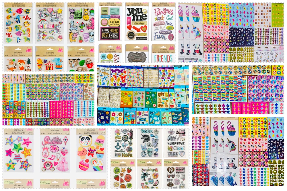 HUGE Mixed Sticker Lot | The Ultimate Kit | Qty. 1109+ Stickers | High Quality Only! Fun Assortment of Puffy, Scrapbook, Cartoons, Bubble, Pop Up Stickers Packs For Everyone! You will receive 29+ Sticker Sheets of beautiful colorful assortment. The Pack will include 1109+ Stickers overall! I have included a large variety of pictures of the assortment available. The pictures give you an idea of what you will be receiving. Please Note: You will not receive everything pictured. Please contact me with any special requests. This HUGE Variety of fun designs stickers can be used in parties, classroom, school and home, good for reward for students, potty training, adding inside a birthday card, game activities, entertaining toddlers, etc. Perfect Gifts for Kids & all Occasions: Can be given as a gift for kids, girls, boys, toddlers, teens, students, friends, and classmates, they will love it!