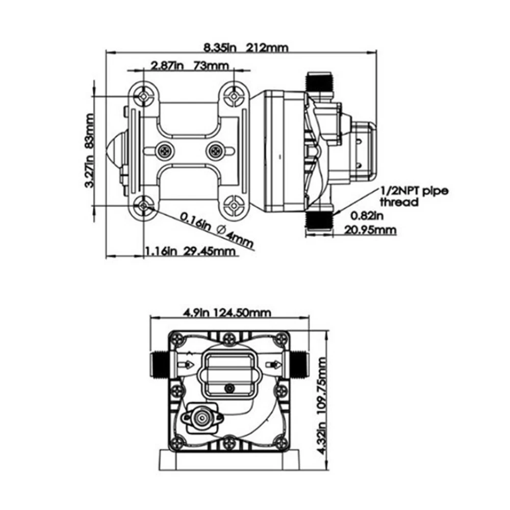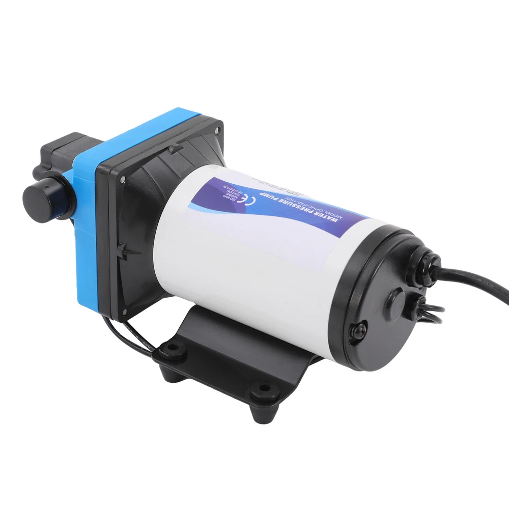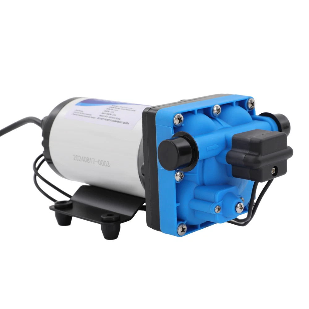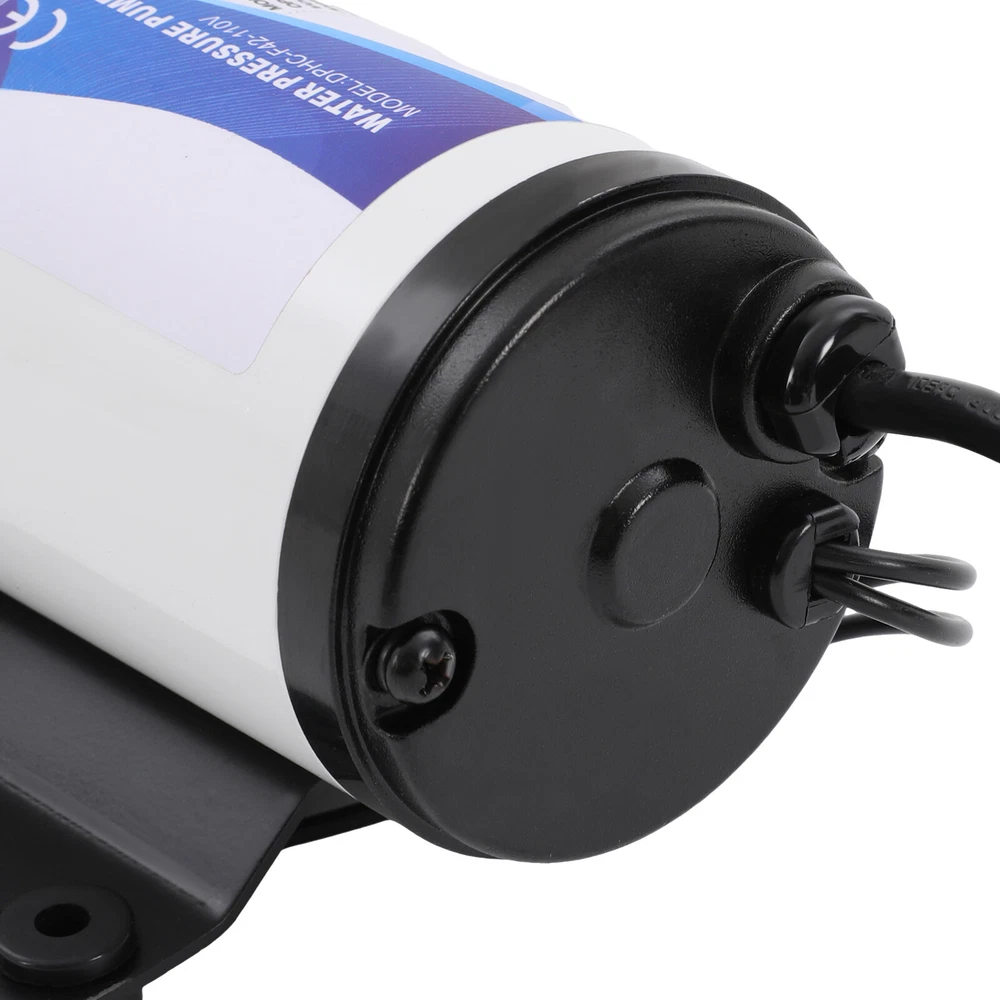 Specifications Color: Black, White, and Blue Material: Engineering Plastic, Copper, and Steel Motor: Pure Copper Motor Power Source: Corded Plug Type: US Standard Assembly Required: Yes Control Type: Pressure Switch Max. Temperature: 65°C/149°F Voltage: 110V Amps: 1.2A Max. Amps: 2.0A Noise: 55-60dB Suction Range: 3m/9.84ft Max Lift: 55PSI/3.88Bar Open Flow: 18.9LPM/5.0GPM Hose Adapter: 1/2" Gross Weight: 3.06kg/6.75lbs Net Weight: 2.8kg/6.17lbs Package Size: 32*15*13.5cm/12.6*5.91*5.31in Product Size: 12.45*10.97*21.2cm/4.9*4.32*8.35in Package Included 1* Diaphragm Water Pump 1* Filter 2* Hose Adapters 110V Water Pump 1.2A Diaphragm Water Pump Self Priming Automatic Diaphragm Pump Description Our water diaphragm pressure pump has excellent suction and head capacities and can easily cope with most liquid transfer tasks, guaranteeing a continuous and stable performance that defies many challenges. Whether for vehicle cleaning, food and beverage processing and handling equipment, home water supply and pipeline pressurization, or water use in the use of RVs, ships, etc, this high-performance pump is the ideal choice for the most demanding applications. Key Features Build to Last: The high-quality engineering plastic housing is wear-resistant, impact-resistant, and not easy to deform, which can better protect the internal components and extend the product's service life. High Efficiency: It features a pure copper motor, a self-priming range of 9.84ft, an open flow of up to 18.9LPM/5.0GPM, and a 55PSI/3.88 bar pressure that can accommodate 3-4 faucet water supplies, making your pumping faster and easier. Safety Guard: It has overheating protection, overload protection, grounding protection, automatic start/stop, and switch reflux function which guarantees the stability of the product's operation and at the same time ensures safety when using it. Thoughtful Design: It has the function of self-priming water, when there is water in the tank can be automatically pumped, and can be turned off without water, for you to save water. Economical and Practical: With it , you'll be able to extract water better, which can be extremely convenient and cost-effective for you. Ideal Gift: Thanks to its practicality and powerful functions, you can give it to your friends as a Christmas, Thanksgiving or Halloween gift! Simple Installation: With complete accessories, standard interfaces, and simple construction, you can put it together yourself and put it to use right away! Customer Service: We aim to provide quality products and services. If you have any problems, please feel free to contact us. We will reply and solve the problem for you as soon as possible. Details Stable Base: The rubber base can better maintain the stability of the product and ensure smooth and quiet operation. Standard Port: The 1/2'' standard hose adapters can match most water pipes for convenient installation and use. Practical Filter: It effectively filters out impurities from the liquid, which can better protect the pump for extended service life. Application It can be used for vehicle cleaning, ships, carpet/ground cleaning, water purification, and water treatment equipment; providing water for eating, washing, bathing, toilets, and flushing in the use of RVs, ships, yachts, boats, etc.; food and beverage processing and handling equipment; home water supply and pipeline pressurization, solar energy pressurization system supporting, water purification industry, and other equipment that require a liquid transfer, spraying, and even metering such as garbage trucks, sprinklers, carpet/floor/vehicle cleaning equipment, road construction equipment, dishwashers, chemical equipment, water circulation cooling systems, and pressurization systems. Pressure Switch Adjustment 1. Open the pressure switch cover. 2. Locate the hexagonal screw hole in the center of the switch's interior. 3. Tighten clockwise to increase pressure, loosen counterclockwise to decrease pressure! Operation Guide 1. Connect the pump with the inlet and outlet pipes, must ensure that the inlet and outlet pipes are tightly connected, otherwise, it will cause low pressure, poor sucking water, water leakage, and other problems; (Tip: the pump head is labeled with an arrow instruction, the arrow points in the direction of the outlet, and vice versa for the inlet). 2. Install the filter at the water inlet side; the density of the filter mesh is best in more than 80 mesh (i.e., 80 small holes/1cm²). 3. Connect the electric diaphragm pump with the power supply, the output parameters of the connected power supply must meet the input requirements of the motor. 4. Turn on the power, the pump starts to run. 5. Discharge water for 5-10 seconds, and drain the air in the pump and the pipeline, when the water is stable, temporarily turn off the power supply, and connect the water gun, faucet, shower, and other related tools. 6. Stop using, just close the outlet faucet, the pump has a pressure switch automatic start-stop function, the next use just open the faucet and it can work normally. Troubleshooting 1. When there is electricity, the pump does not work: open the pressure switch cover above the pump head, connect the two connecting wires together, and rule out whether the motor short circuit is caused by switch damage. 2. The water pump works normally, with insufficient suction, small water output, and low pressure: need to dismantle the pump head, check whether there is debris blockage in the pump cavity, whether the pump head and the motor bracket are loose, if it is, clean up the valve and the diaphragm debris, tighten the screws, and then install it. 3. The pump does not work when you just received it: Open the back cover of the motor, remove the springs of the two carbon brushes, and install them. 4. The water pump does not work after one use: any water pump has a starting current, which is usually 3-5 times the working current, please make sure that the battery and the power sup