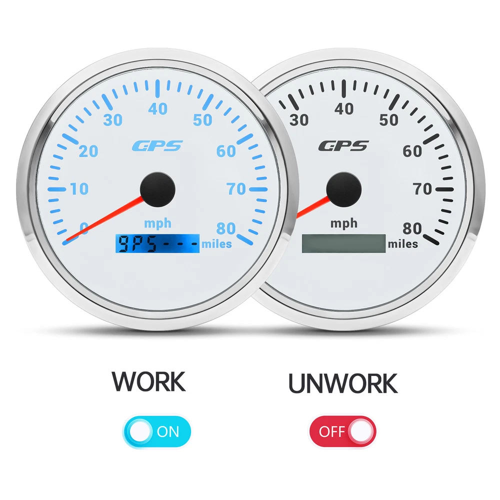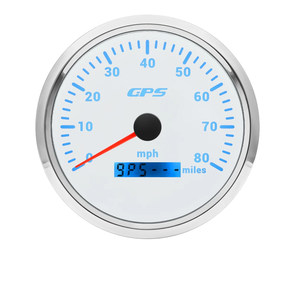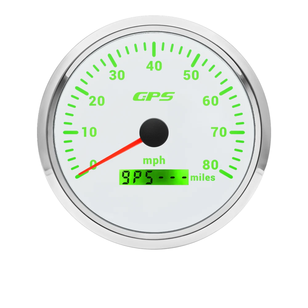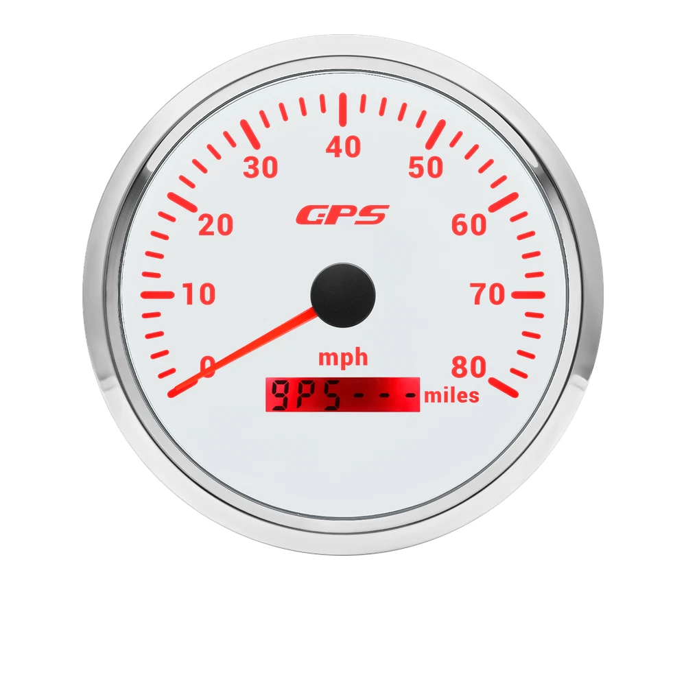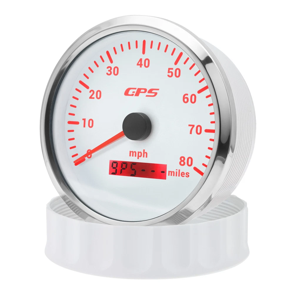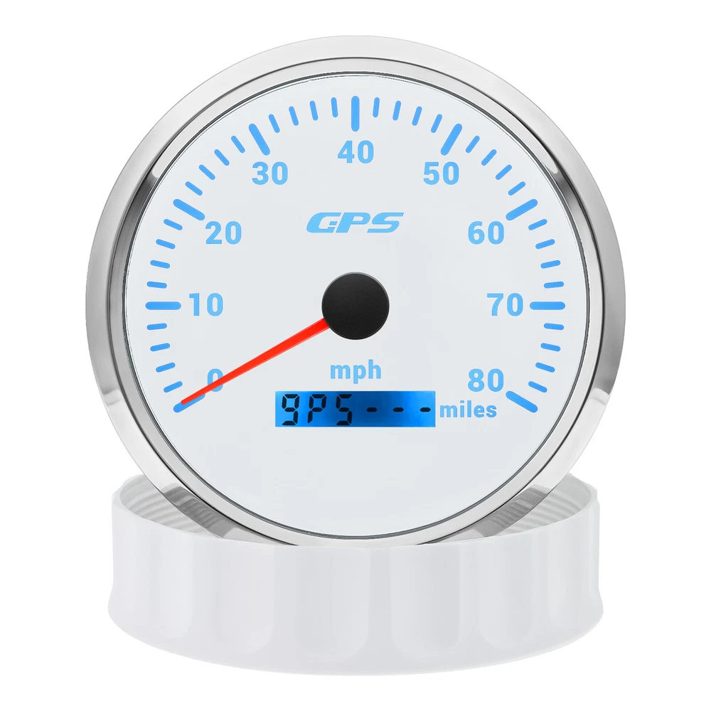 110mm White GPS Speedometer 0-80MPH Gauge for Motorcycles Boat Car Truck ATV US 110mm White GPS Speedometer 0-80MPH Gauge 7 Colors LED for Motorcycles Boat Car Truck ATV Feature: High-brightness LED backlight. 316 stainless steel for long-term use even in acid-base, humid environment. IP67 waterproof and dust-proof grade. With curved glass( with anti-fog function). Suitable for all kinds of vehicle modification. Using stepper motor drive pointer, accurate display of the engine speed, and with the LCD display clear display mileage. Gauges have many kinds backlight color (red,yellow,orange,green,blue,purple,white),customers can adjust any color that you like. GPS Speedometer Gauge Install Diameter: Φ110mm (4-3/8") Signal: GPS Working Voltage: 9~32V DC Size: 12x8x12cm/4.72x3.1x4.75 inch Units: MPH Colors:White&Silver Indication Range: 0-80MPH Backlight: 7Colors LED Package Includes: 1X 85MM GPS Speedometer Gauge 1X Wire Harness 1X GPS Antenna 1X Installation Instruction