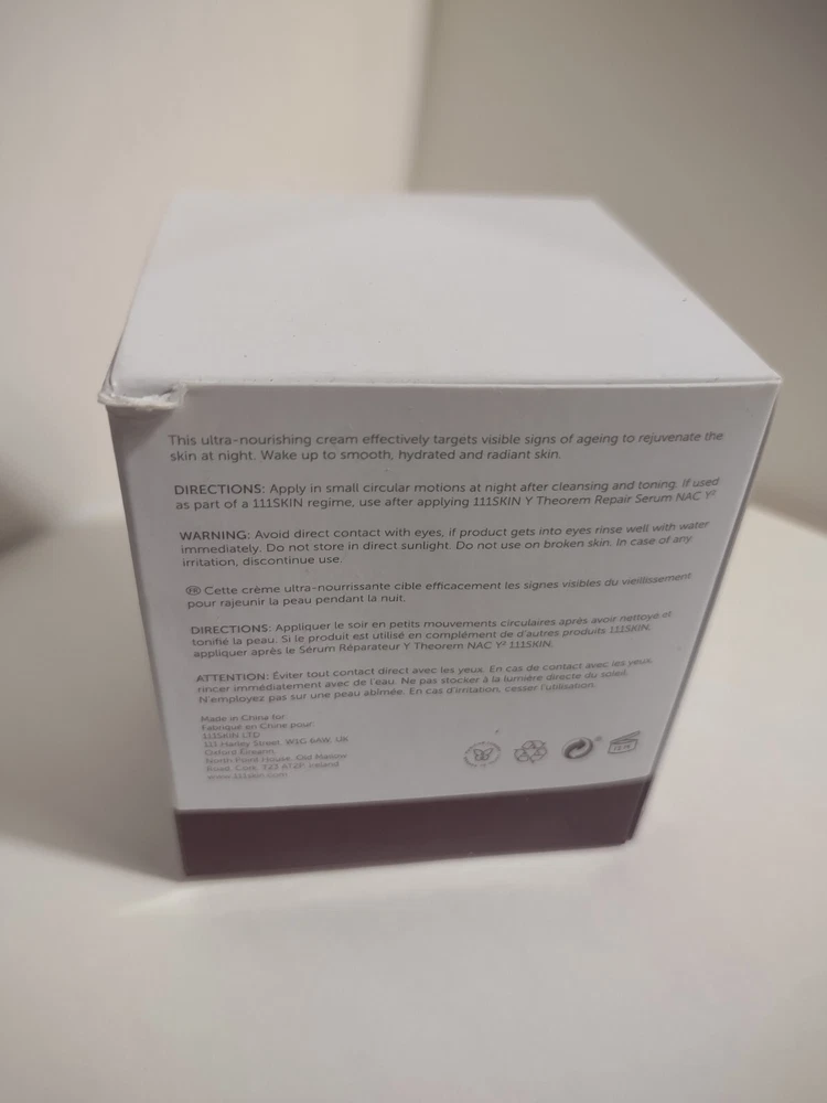 111Skin Nocturnal Eclipse Recovery Cream NAC Y² 1.7oz/50 ML Brand New In Box!. Retail Value $280 This super-rich, concentrated cream nourishes skin while helping it recover from environmental aggressors. It’s packed with phospholipids and hyaluronic acid to help lock in hydration and plump up skin, along with NAC Y² technology, which helps promote the production of collagen and elastin. Ingredients AQUA / WATER / EAU, ISOPROPYL MYRISTATE, CAPRYLIC / CAPRIC TRIGLYCERIDE, GLYCERYL STEARATE, HYDROGENATED PALM OIL, PEG-7 HYDROGENATED CASTOR OIL, BENZYL ALCOHOL, STEARIC ACID, CARBOMER, SODIUM HYDROXIDE, PEG-40 HYDROGENATED CASTOR OIL, SODIUM HYALURONATE, LECITHIN, OLEA EUROPAEA (OLIVE) OIL, ORYZA SATIVA (RICE / RIZ) BRAN OIL, SODIUM ASCORBYL PHOSPHATE, AESCULUS HIPPOCASTANUM (HORSE CHESTNUT / MARRON) EXTRACT, CENTELLA ASIATICA EXTRACT, POLYSORBATE 20, RETINYL PALMITATE, TOCOPHEROL, LINOLEIC ACID, XANTHAN GUM, ACETYL CYSTEINE, FRAGRANCE / PARFUM. First photo is stock photo, all other photos are of actual item in its packaging that you will receive. Items are shipped next business day, M-F excluding postal holidays. Please contact me about any issues if you are not completely satisfied, and allow me to make it right before leaving negative feedback or reviews. Enjoy, and check out my other beauty, skincare, and makeup listings for a 10% discount and combined shipping!
