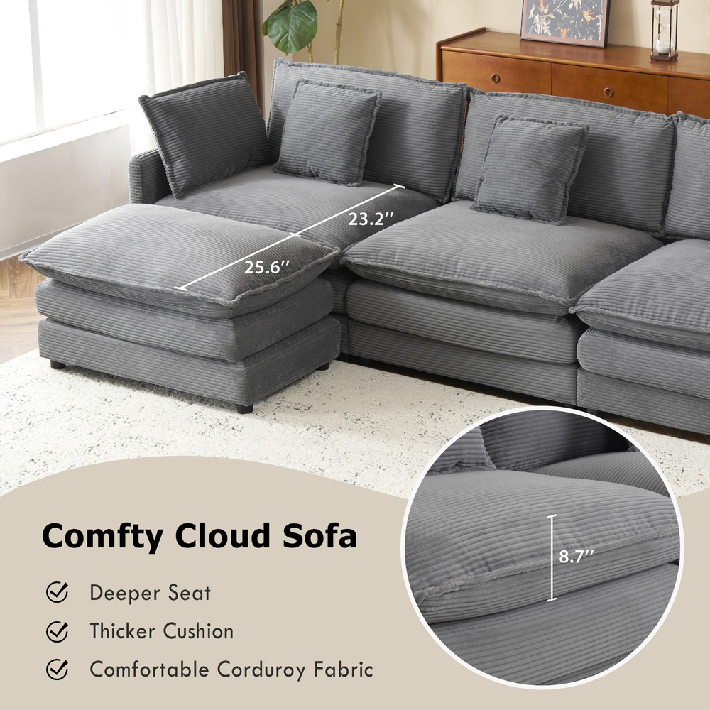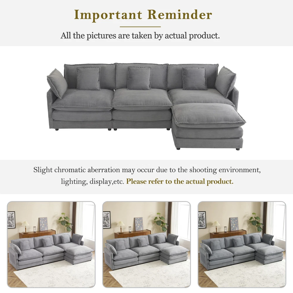 Movable Ottoman -This sofa couch comes with a movable ottoman, offering great flexibility and convenience. The ottoman can easily be repositioned to suit different needs—whether you use it as a footrest for added comfort, or extra seating when guests come over. Its portability allows you to adjust the layout of your living space effortlessly, making it easier to create a customized and functional arrangement. Two- layer Seat Cushion - This modular sofa features a two-layer seat cushion with high-density foam, offering a perfect balance of support and softness. The high-density foam provides firm support, while the plush padding adds extra comfort, giving you a cozy, cloud-like feel every time you sit down. Ideal for long hours of relaxation, it ensures b... 112.6" Modern Sofa Modular Sofa Couch Upholstered Corduroy L-Shape Sectional Sofa with Side Storage Pockets for Living Room, Dark Grey Movable Ottoman -This sofa couch comes with a movable ottoman, offering great flexibility and convenience. The ottoman can easily be repositioned to suit different needs—whether you use it as a footrest for added comfort, or extra seating when guests come over. Its portability allows you to adjust the layout of your living space effortlessly, making it easier to create a customized and functional arrangement. Two- layer Seat Cushion - This modular sofa features a two-layer seat cushion with high-density foam, offering a perfect balance of support and softness. The high-density foam provides firm support, while the plush padding adds extra comfort, giving you a cozy, cloud-like feel every time you sit down. Ideal for long hours of relaxation, it ensures both comfort and durability. Storage Space – Thoughtfully designed with convenient side pockets on each side of the sofa, this feature offers ample storage space for your everyday essentials. Whether it’s magazines, books, remote controls, or other small items, you can keep them within easy reach and neatly organized. These pockets ensure that everything you need is readily accessible, helping to keep your living space tidy and clutter-free while adding extra functionality to your sofa. Comfortable Seating Experience – This sofa features an extra-deep 23.2" seat, offering a soft and cozy feel. It's fully upholstered in plush corduroy fabric, so when you sit down, you’ll immediately notice the smooth, wrinkle-free touch of the high-quality material. Durable and Robust Structure - This modular sofa is built with a solid, reinforced frame designed for long-term durability. Crafted to provide reliable support, it can effortlessly hold up to 250 pounds per seat, ensuring a stable and secure seating experience for years to come. The high-quality construction guarantees that this sofa remains strong and dependable, even with frequent use. Item Specifics Brand Unbranded Type sofa Color DARK GREY Upholstery Fabric Corduroy Item Length 30.5 in Item Width 23 in Item Height 6.75 in About us Dear buyer, Thank you for visiting my store! Our warehouses are located in many regions around the United States. According to the customer's delivery address. Use USPS/UPS/DHL logistics transportation service. Prioritize the best quality logistics solutions to transport packages. Ensure package delivery time, At the same time. Have any after-sales problems, Feel free to contact us. At your service Payment PayPal is our preferred method of payments it's the quickest, easiest and most secure way to pay for your goods or services online. PayPal offers buyer and seller protection should there be a problem. If you do not have a PayPal account, to get started and buy your first item with us is very easy. Simply click on the 'Buy It Now' button and follow the eBay checkout steps. Select PayPal as the payment method you then will be given the chance to enter your card details in to PayPal's secure checkout in order to pay for your order. Shipping 1. Your purchase is shipped directly to you as soon as we have received your cleared payment. 2. Normally all of parcels would be shipped within 3days(From Monday to Saturday). 3. We will send information on eBay or email if the parcel was delayed due to our holiday. 4. We provide three kinds of shipping for choice. Shipping way depend on delivery address. Returns If an unit is received defective, of course we take it back or replace it. If the unit is received as expected, we must charge for our expenses if you want to send it back. We have to charge for the work of handling, retesting and restocking. DESCRIPTION PAYMENT SHIPPING RETURN POLICY CONTACT US Shop Category Store Home Other Hot Item Co-op Cycles DRT 1.1 Mountain Bike USD 419.29 6 cu. ft. Steel Tub Wheelbarrow with Wooden Handles and Pneumatic Tire USD 113.90 Fox DropFrame Pro Mips 2.0 Bike Helmet USD 279.95 5.5 cu. ft. Heaped Poly Smart Plastic Garden Cart USD 70.98 Flextreme 5/8 in. Dia x 50 ft. Black Performance Rubber Garden Hose USD 46.70 Delivery New List Item COOLMORE Corduroy Swivel Barrel Chair, Comfortable Accent Sofa Chair for Living USD 548.52 COOLMORE Corduroy Swivel Barrel Chair, Comfortable Accent Sofa Chair for Living USD 548.52 COOLMORE Corduroy Swivel Barrel Chair, Comfortable Accent Sofa Chair for Living USD 548.52 COOLMORE Corduroy Swivel Barrel Chair, Comfortable Accent Sofa Chair for Living USD 548.52 COOLMORE Corduroy Swivel Barrel Chair, Comfortable Accent Sofa Chair for Living USD 548.52 Help & Info Payment Policy Shipping Policy Return Policy FAQ About Us 112.6" Modern Sofa Modular Sofa Couch Upholstered Corduroy L-Shape Sectional Sofa with Side Storage Pockets for Living Room, Dark Grey Movable Ottoman -This sofa couch comes with a movable ottoman, offering great flexibility and convenience. The ottoman can easily be repositioned to suit different needs—whether you use it as a footrest for added comfort, or extra seating when guests come over. Its portability allows you to adjust the layout of your living space effortlessly, making it easier t