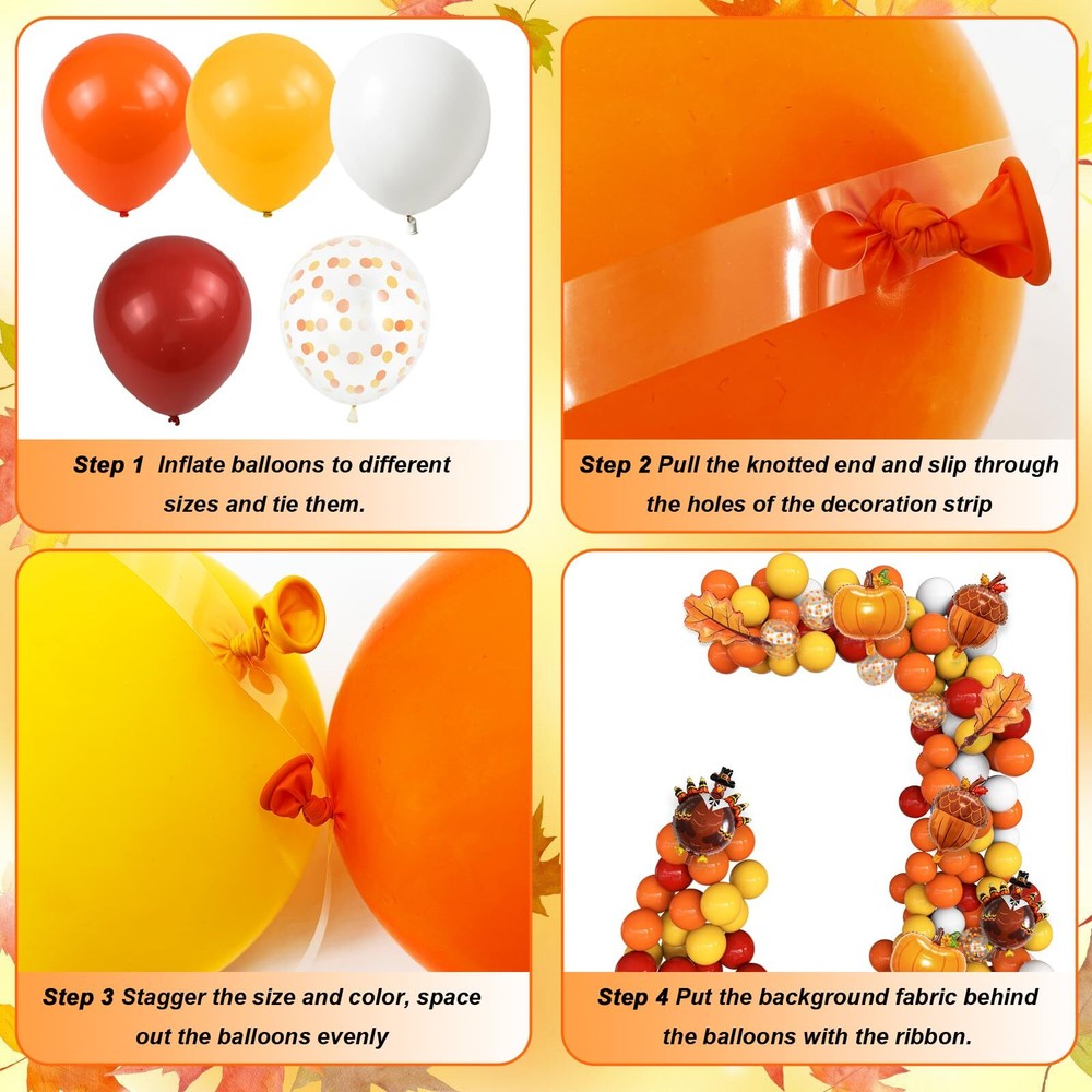Package Details: 110pcs thanksgiving themed balloons, 1pcs little pumpkin thanksgiving tablecloth Premium Material:High Quality Materials-Our balloons are made of high quality latex materials, durable. You will get a beautiful little pumpkin thanksgiving themed balloon garland that will leave you with unforgettable memories Easy To Assemble:We provided 3 tools to help you make little pumpkin thanksgiving themed balloon arch easily and quickly, the mylar balloons can be pasted onto the balloon garland or background wall by using dot glue to add more elements to your party Suitable for a Variety of Occasions: The little pumpkin thanksgiving balloons come in full, vibrant colors and add infinite vibrancy to your party. The little pumpkin thanksgiving themed balloon garland kit is suitable for any party event such as thanksgiving, pumpkin 1st birthday, pumpkin baby shower and more Service Gusrantee:Providing customers with products and services is our RHGBINLI goal. If you have any questions or suggestions about product, please feel free to email us. We will get back to you within 24 hours