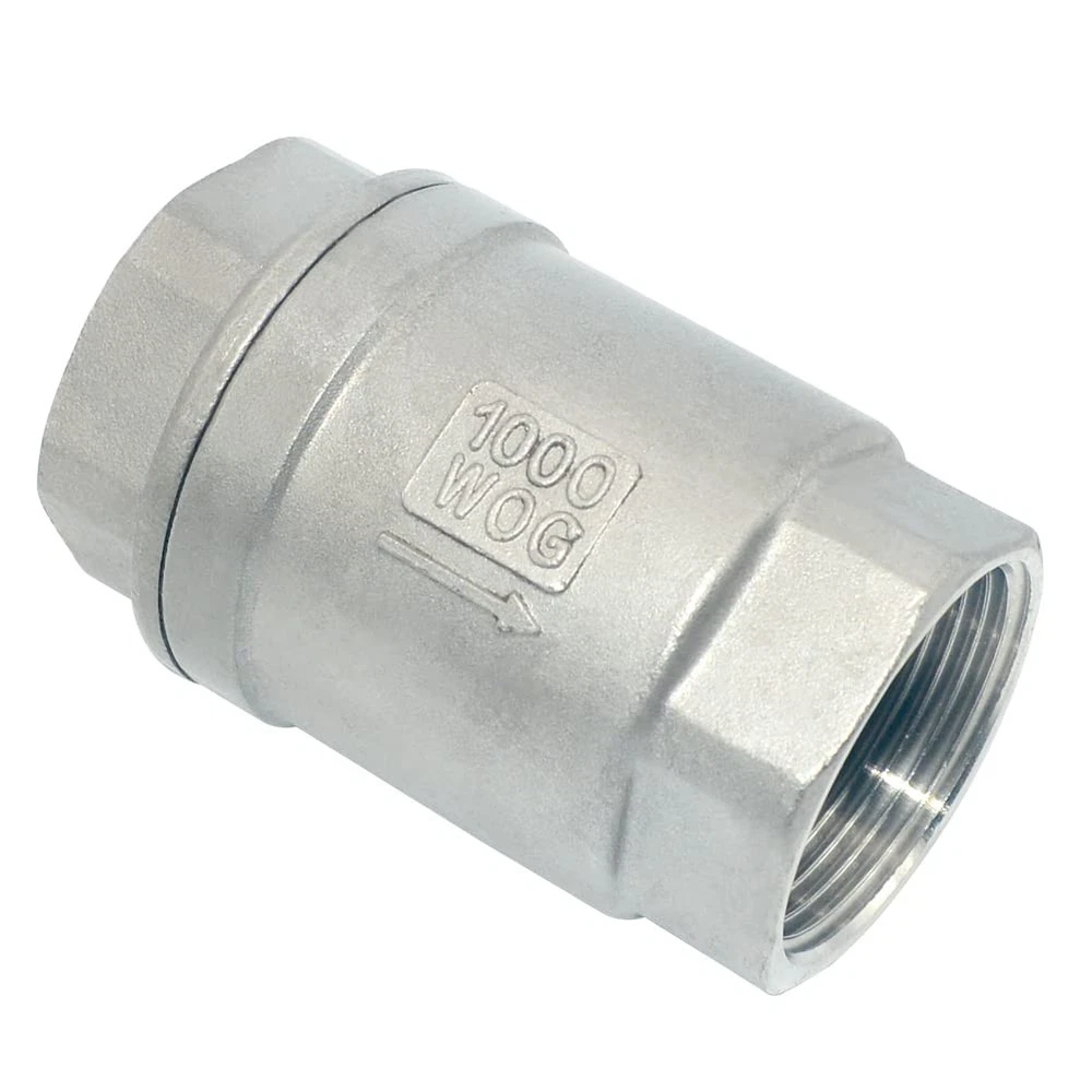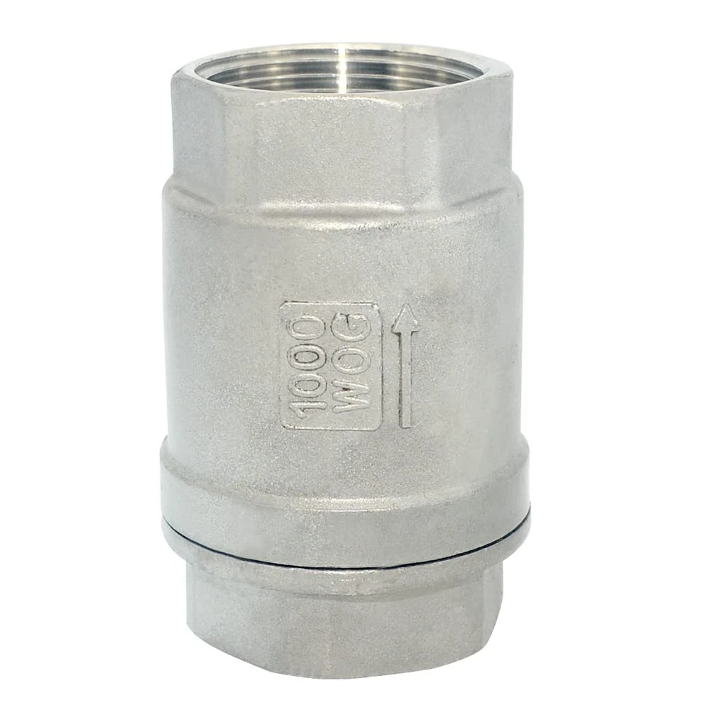 100% brand new and high quality,Cracking Pressure:4.5 psi Max Pressure:1000 Psi For Water, Oil,Gas (WOG1000),Port Types: Female NPT x Female NPT Working Temperature:-51°C to 232°C (-60°F to 450°F),Seals:NBR Check valves are used to help direct flow in one direction. The stainless steel bodies and PTFE seals are highly corrosion resistant allowing these check valves to be used with a wide variety of fluids including, but not limited to water, oil, gas, air, light alkali's, acids, biodiesel, fuels and alcohols Vertical check valves may be used for any application. They utilize a spring system which shuts the Disc closed when there is not enough pressure to hold it open by the operating fluid. Fluid pressure in the backwards direction will cause the valve to close to prevent backflow