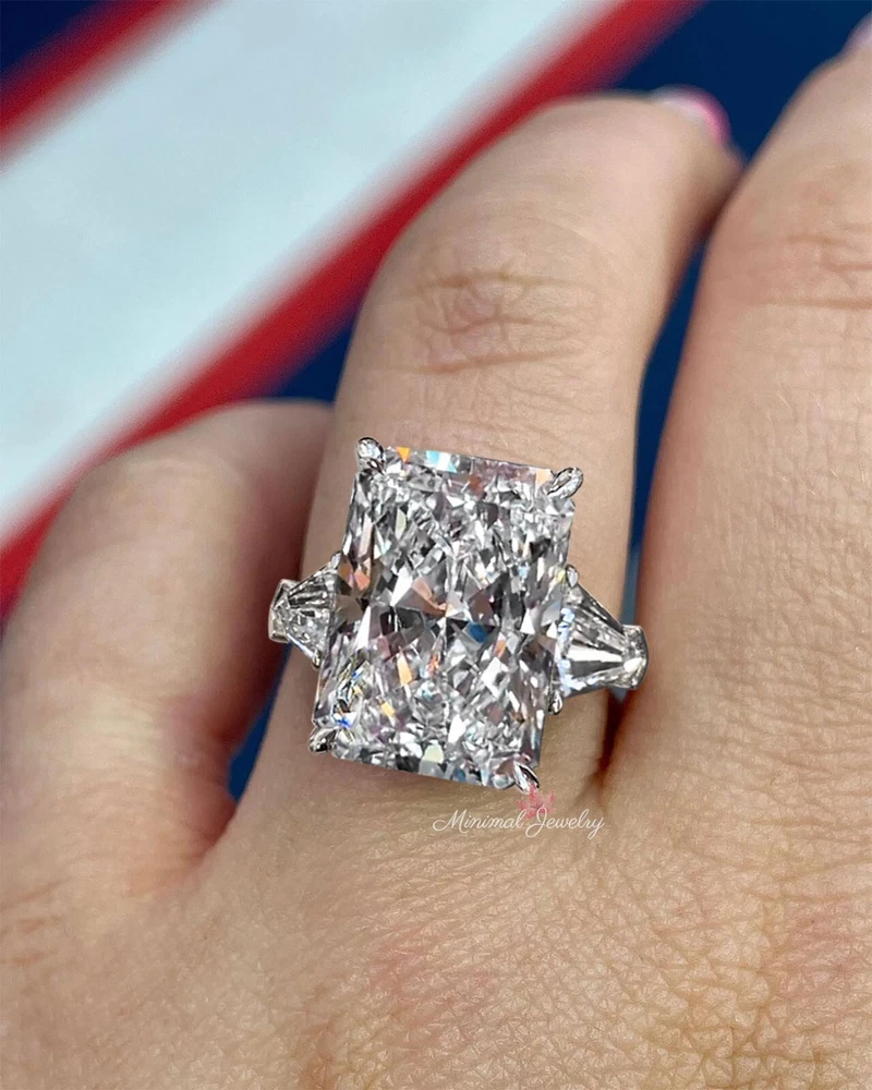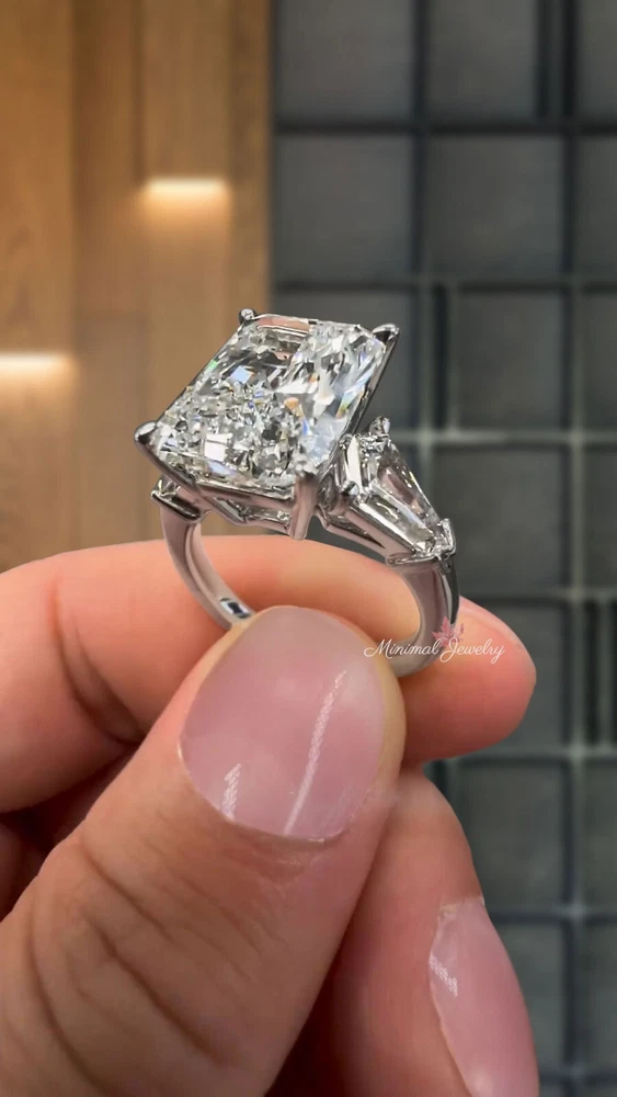 Elevate your love story with the 11.5 CT Radiant Cut Moissanite Engagement Ring in 14k White Gold, featuring a dazzling three-stone design for timeless brilliance. Certified for exceptional quality, this size 5.5 ring is a perfect symbol of elegance and commitment. DESCRIPTION -------------------- STYLE : Three Stone Moissanite Details Stone Type : Moissanite - High Quality Main Stone : Radiant Size (mm) : 15*11 Carat Weight : 11.5 Band & Halo & Side Stone : Shield Size (mm) : 8*5 Carat Weight : 3.0 Stone Total CTW : 14.5 Color : Colorless Clarity : VVS Metal (Solid) : 14k White Gold Band Width : 2 ๐๐๐ซ๐ซ๐๐ง๐ญ๐ฒ ๐๐ง๐ ๐๐๐ซ๐ฏ๐ข๐๐: ------------------------------ โข We offer a 1 Year warranty on all our Jewelry. โข We also provide paid service after completion of the warranty. ๐๐ก๐๐ง๐ค ๐ฒ๐จ๐ฎ ๐๐จ๐ซ ๐ฏ๐ข๐ฌ๐ข๐ญ๐ข๐ง๐ ๐จ๐ฎ๐ซ ๐ฌ๐ญ๐จ๐ซ๐, ๐ฌ๐๐ ๐ฒ๐จ๐ฎ ๐ฌ๐จ๐จ๐ง. --------------------------------------------------------------