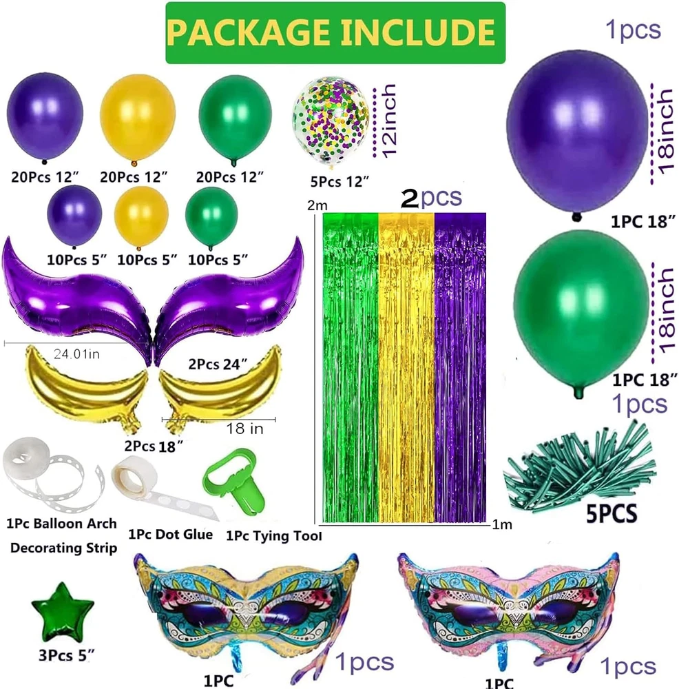 Store New Arrivals Add to Favorite View Feedback Contact Fast deliveries to the customer's home Quality customer service John Make the customers happy! 116 Pcs Mardi Gras Decorations - 2Pack Mardi Gras Tinsel Foil Fringe Curtains with Big Aluminum Mask Balloons Green Purple Gold Mardi Gras Balloons for Mardi Gras Party Carnival Decoration Description Package Includes: you will receive 2 pieces of stage Mardi Gras curtains with adhesive on the back, 2 piece of mask Mardi Gras balloon, 109 pieces of Mardi Gras party balloons in yellow, purple, and green, sufficient for you to decorate your parties The Mardi Gras decorations for party are mainly in gold, green and purple, full of energy, suitable for your Mardi Gras party, birthday party, Mardi Gras themed party, holiday party, vintage party, mermaid party, Christmas party, New Year's party and more Mardi Gras decorations can be easily hung on walls, windows and doors; You can use balloon tape to assemble multiple gold, purple and green Mardi Gras balloons together to form a balloon arch, and embellished with foil tail balloons and moon balloons; Beautiful decorations to bring vitality and energy to your Mardi Gras party Mardi Gras theme balloons are mainly made of latex and aluminum foil, odorless and reliable, supports air and helium. Mardi Gras Foil Curtain measures approx. 1x 2 m/ 3.28 x 6.56 ft, mask balloon measures approx. 85 x 49 cm/ 33.5 x 19 inch. Product Description Mardi Gras Decorations Mardi Gras Tinsel Foil Fringe Curtains with Big Aluminum Mask Balloons Mardi Gras Party Carnival Decoration Mardi Gras Decorations Mardi Gras Tinsel Foil Fringe Curtains with Big Aluminum Mask Balloons Green Purple Gold Mardi Gras Balloons for Mardi Gras Party Carnival Decoration The Mardi Gras decorations for party are mainly in gold, green and purple, full of energy, suitable for your Mardi Gras party, birthday party, Mardi Gras themed party, holiday party, vintage party, mermaid party, Christmas party, New Year's party and more Mardi Gras decorations can be easily hung on walls, windows and doors; You can use balloon tape to assemble multiple gold, purple and green Mardi Gras balloons together to form a balloon arch, and embellished with foil tail balloons and moon balloons; Beautiful decorations to bring vitality and energy to your Mardi Gras party Mardi Gras theme balloons are mainly made of latex and aluminum foil, odorless and reliable, supports air and helium. You can hang them on the ceilings, doors, tree, etc. great for adding strong festival atmosphere to your party. CPSIA Cautionary Statement Choking Hazard - Balloon Unit Count 116.0 Count Item dimensions L x W x H 6 x 6 x 2 inches Color Gold, Green and Purple Product Dimensions 6 x 6 x 2 inches Material Aluminum, Rubber Country of Origin China Theme Mardi Gras Item Weight 1.12 pounds Shape Round Manufacturer recommended age 5 - 10 years Occasion Mardi Gras Included Components Balloon Arch, Filling Nozzle, Curling Ribbon ABOUT US We offer the best prices around on high quality products. Our E-store includes media such as books, movies, music and games while offering electronics, toys, sporting apparel, clothing, tools, general home, garden items and more. SHIPPING We are always working hard to ensure your package arrives as soon as possible. Please understand that some factors like weather, high postal traffic, and the performance of shipping companies are outside of our control. We offer free shipping to the lower 48 states and ship within 2 business days of payment, usually sooner. We do not accept P.O. Boxes. Please provide a physical address. For shipping outside of the continental USA, we only use eBay's Global Shipping Program. The item is shipped to KY and then sent to the rest of the world. International customers are responsible for all duties and taxes. Continue to 'check out' to calculate costs for shipping the item to your country. Messages regarding eBay's Global Shipping Program MUST be directed at eBay EXCLUSIVELY. RETURNS We offer a 30-Day Return Policy on items in which you are not completely satisfied with. You have the option of a full-refund or an exchange of the item. No returns are available on items shipped outside of the USA PAYMENT We accept PayPal. CONTACT US This page content is yet to come Please ad us to your favorite seller and visit again later Thank You CUSTOMER SATISFACTION We try our very best to make sure every customer is completely satisfied. If there's a problem, message us! We're happy to help. WE ACCEPT