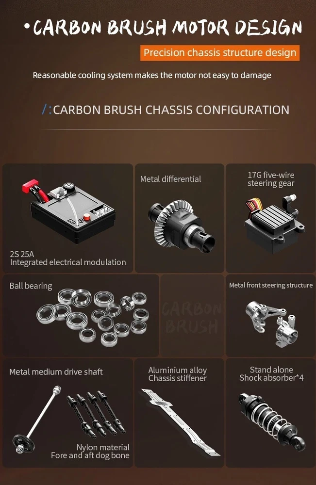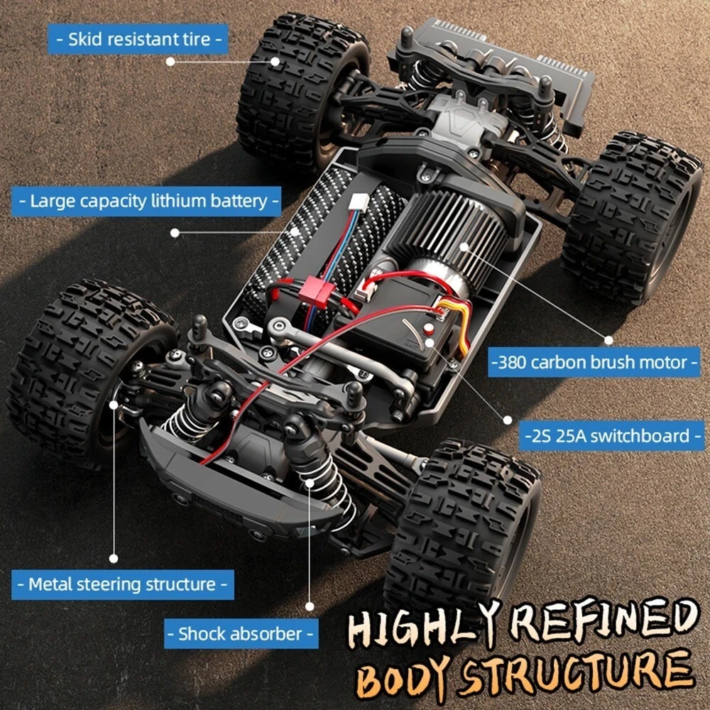 This 1:18 scale remote control vehicle is a high-speed monster truck that's ready to go right out of the box. With a brushed motor and electric fuel type, it can reach speeds up to 28km/h. It has a 4WD drivetrain and is designed for off-road use, making it perfect for hobby-grade enthusiasts. The truck features a multi-color design made of durable plastic, and is suitable for ages 8 and up. Whether you're a kid or an adult, this RC vehicle is sure to provide hours of entertainment. 1/18 2.4G Remote Control Vehicle 28km/h High Speed 4WD Off-road Electric Is Electric-lithium battery State of Assembly-Ready-to-Go Flight Time-about 35-40mins Tire Track-155mm Wheelbase-165mm Remote Distance-more than 80M Scale-1:18 Dimensions-25*19*11cm Model Number-18102 Package Includes Original Box,Batteries,Operating Instructions,Remote Controller,USB CABLE Material-Metal,Plastic Body Battery-7.4V 1500mAh lipo- Charging time-about 180-210 mins Remote Control Battery-3*AA (Not Included) Motor-RC380 high speed carbon brush strong magnet (magnetic protection ) 25A 2S integrated control (splash-proof)